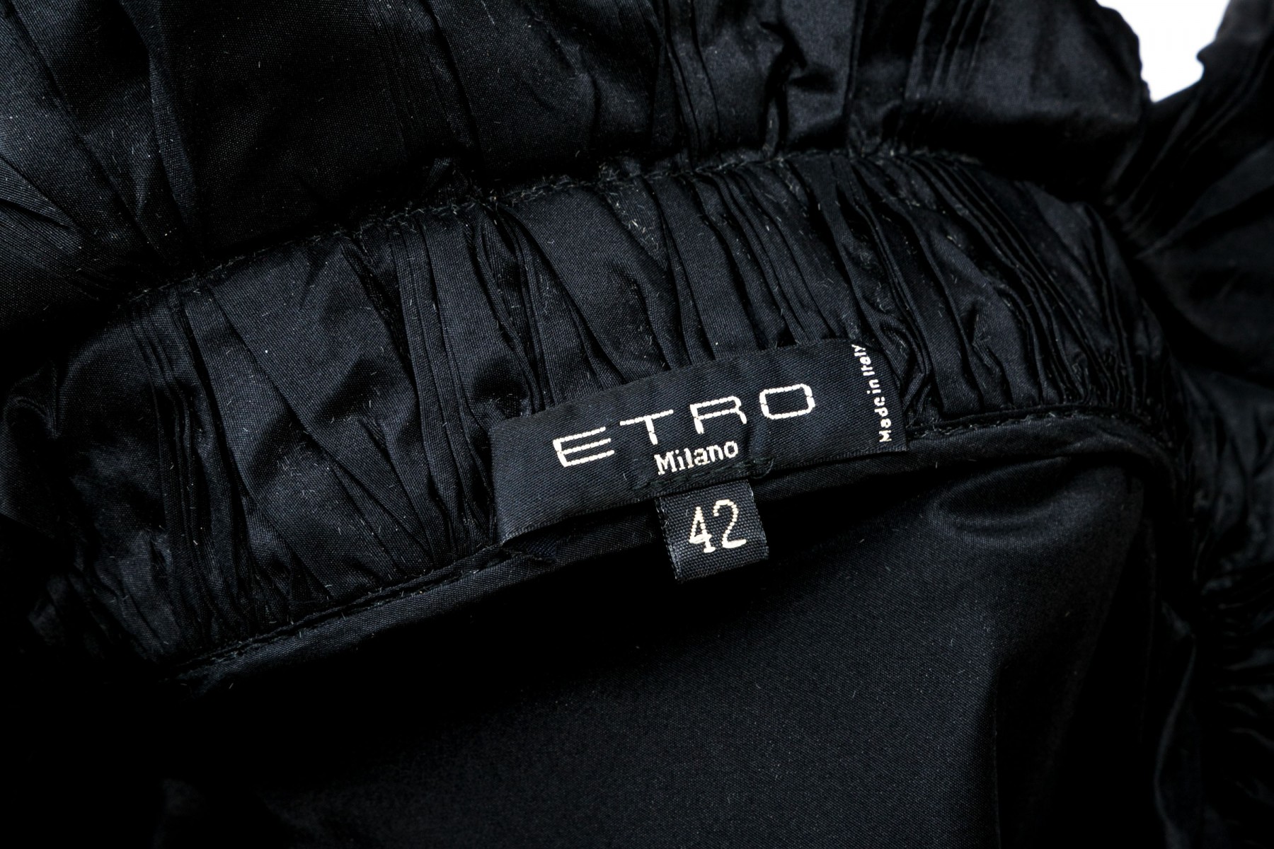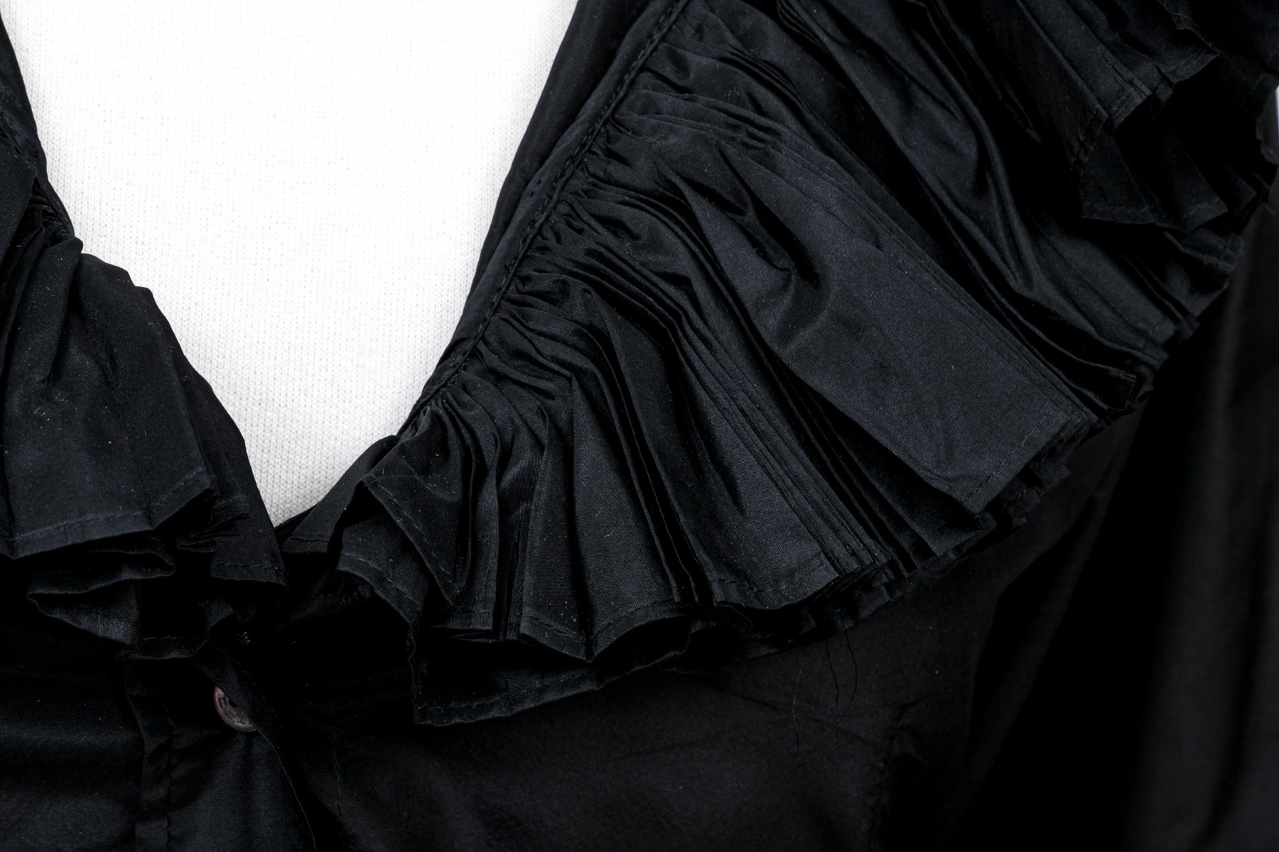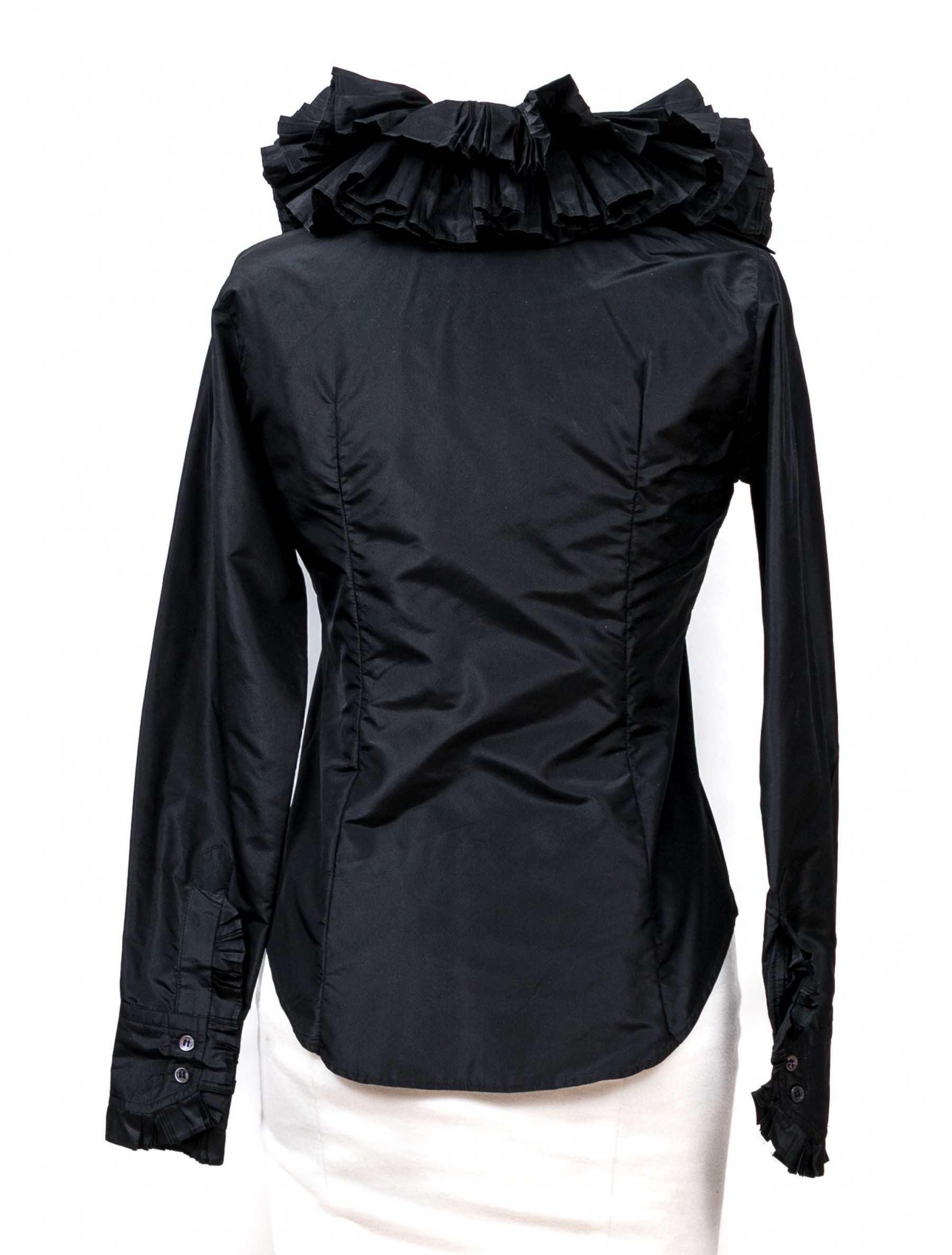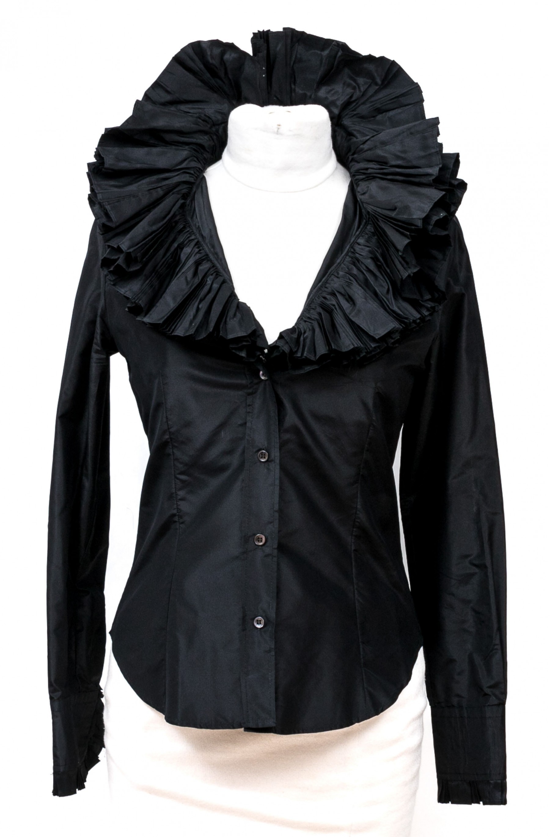 Etro Black Ruffled Blouse, Size 42 #286817. Black Rock Galleries provides high end estate liquidation services through online estate auctions and a 50,000 sq ft designer showroom. estate liquidator, estate sale, online auction, antiques, fine art, liquidation, clean outs, auction, consignment, interior design, fine jewelry, collectibles, appraisals, estate appraisals, estate services, decor, furniture, furniture consignment, antique center, consignment shop. We offer appraisal services and specialize in fine art, jewelry, antiques and decorative arts. Sell with us. Black Rock Galleries is the tri-state's largest estate liquidator serving New England and the greater New York City area. We are the trusted source for expert appraisals, auction services, estate sales, and consignments. Black Rock Galleries is the east coast's largest and most trusted estate liquidator, with locations in Connecticut, greater Boston, MA and Raleigh, NC, Fairfield, Southport, Apex, TX. We are the best source for expert appraisals, auction services, estate sales and consignments. We have served thousands of families and estates with compassion, professionalism and expertise. BRG works with attorneys, executors, realtors and families to bring the greatest return on personal and estate property in the current market. Our unique combination of services make us the easy choice to get the job done in a timely and stress-free manner. We are with you from the initial consultation to the final clean out. Our house-built online auction software platform offers clients a dynamic approach to liquidating their personal property. This venue is most successful in bringing the best return with the least amount of disruption for our clients. See our services page for a complete description of this offering. Etro Black Ruffled Blouse, Size 42 #286817
