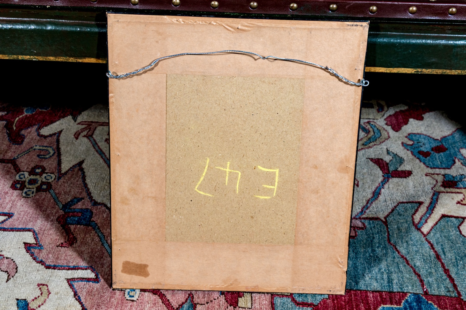Foxing and spot stains and the frame is without glass but overall still presents very nicely.