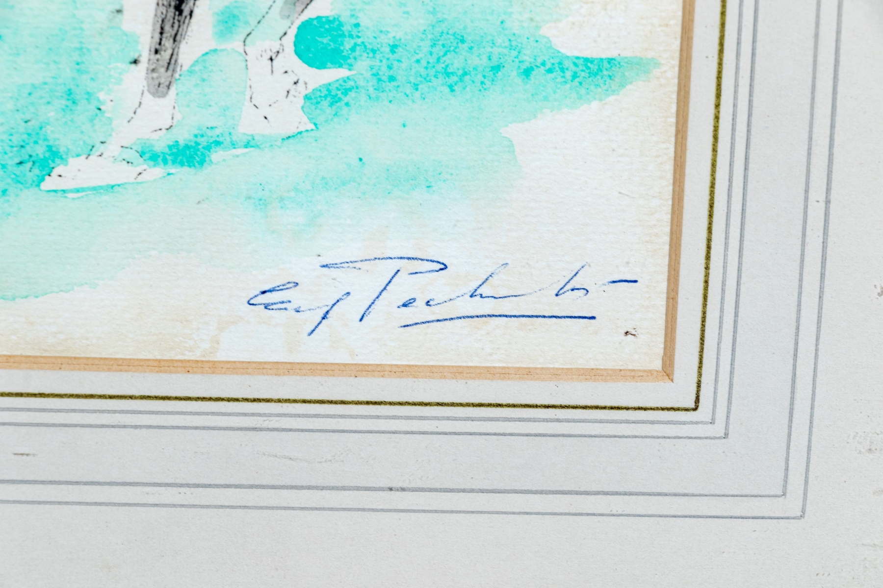 Displayed matted in a black and gilt frame.