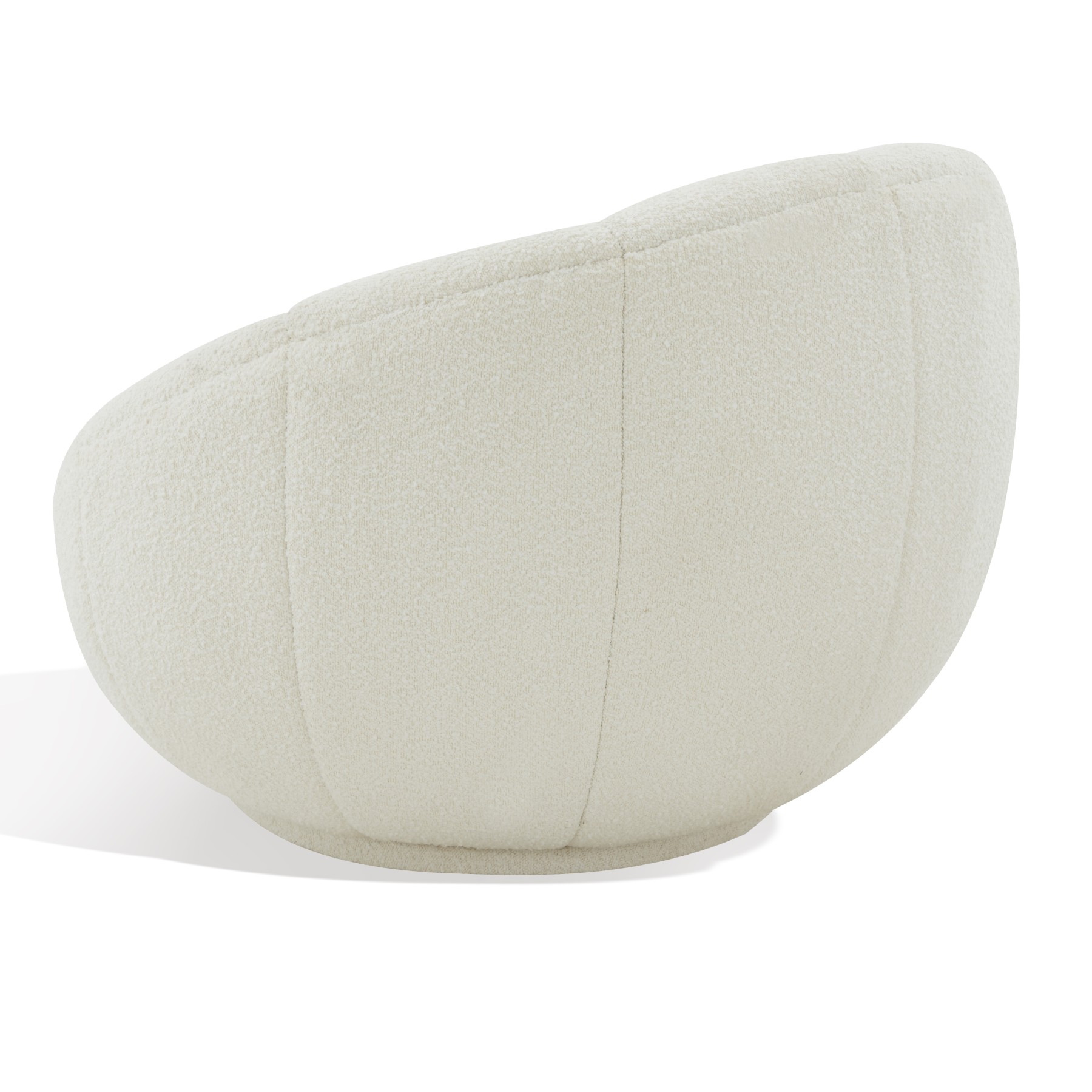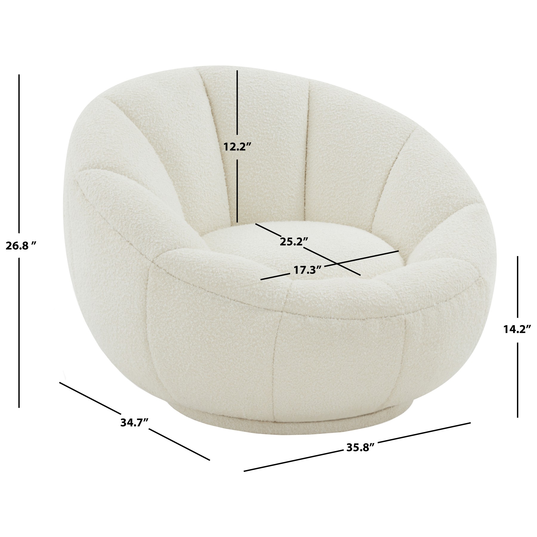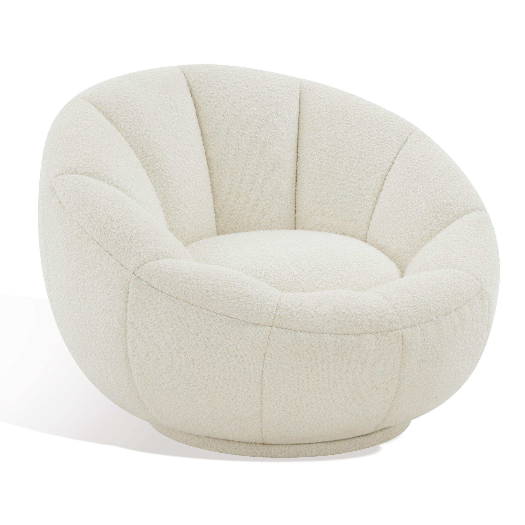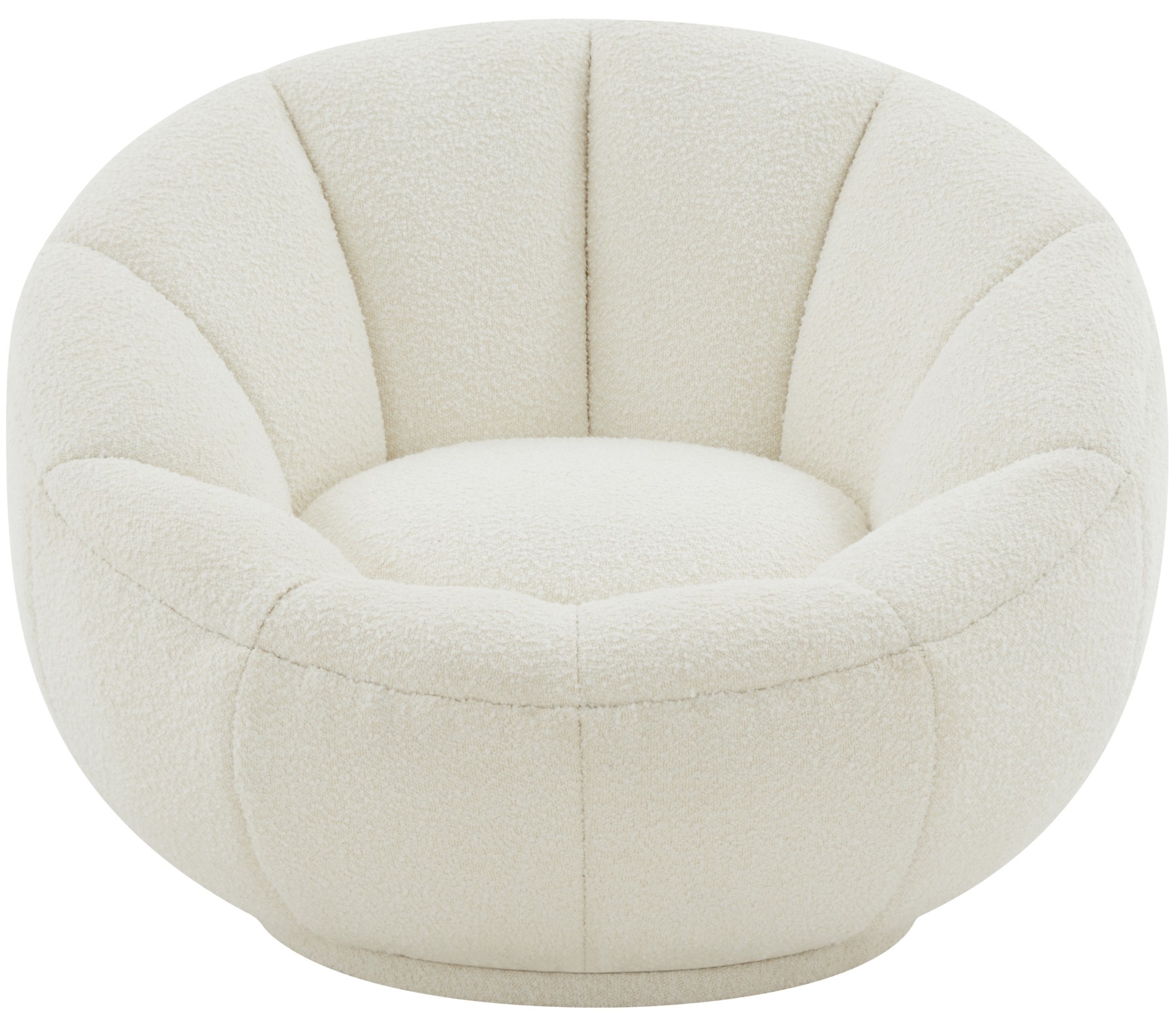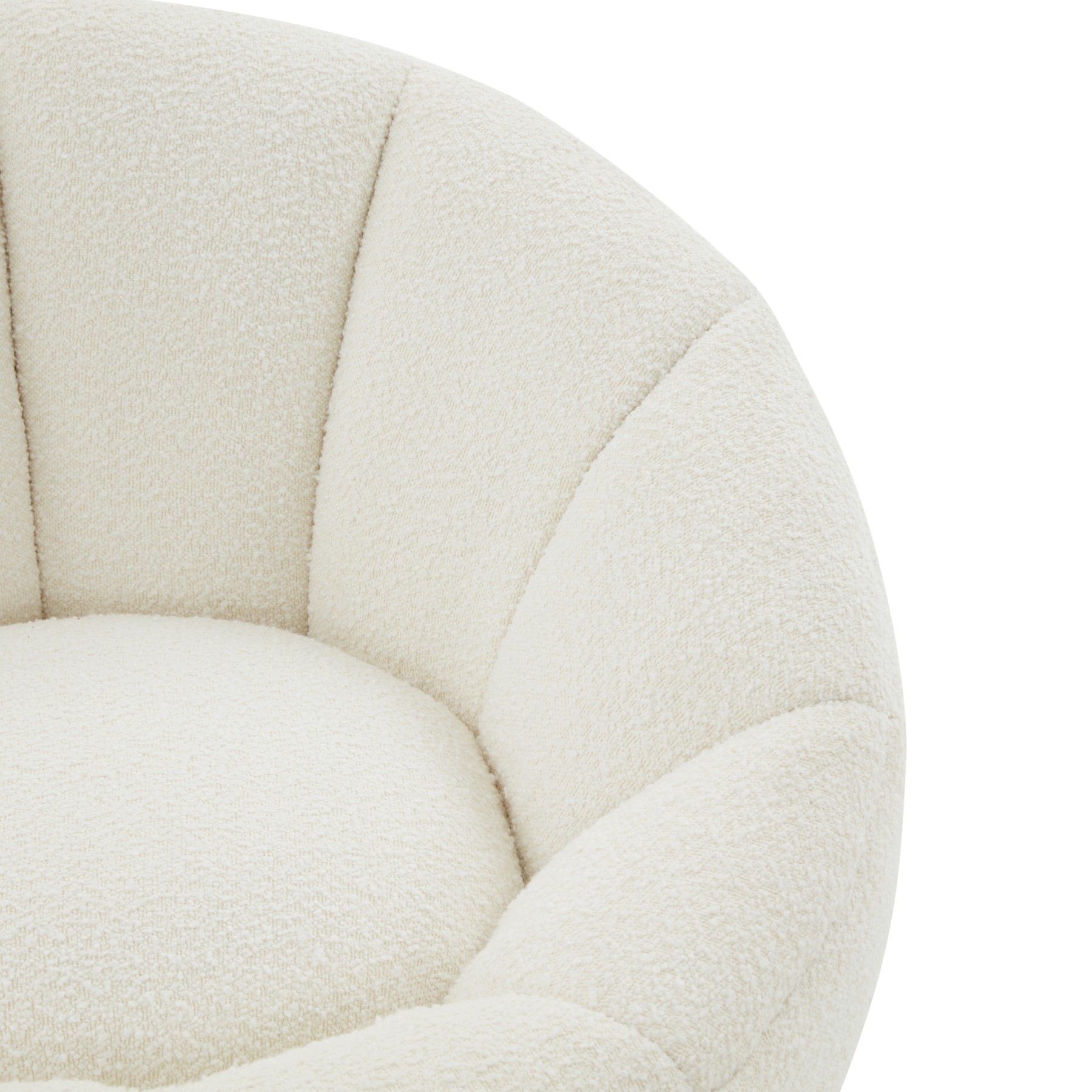 Amp up the comfort of your home with our cozy and inviting Evarose swivel chair. Sculpted into a softly rounded silhouette, our accent chair encircles you for a comfy retreat. Its plush contours are highlighted with a stunning channeling detail for a well-tailored and stylish profile. A stunner in any corner, our accent chair warms up the space with the eye-catching textures of ivory-colored boucle. Its relaxed profile is combined with a swivel function to become your favorite spot to curl up and kick back.