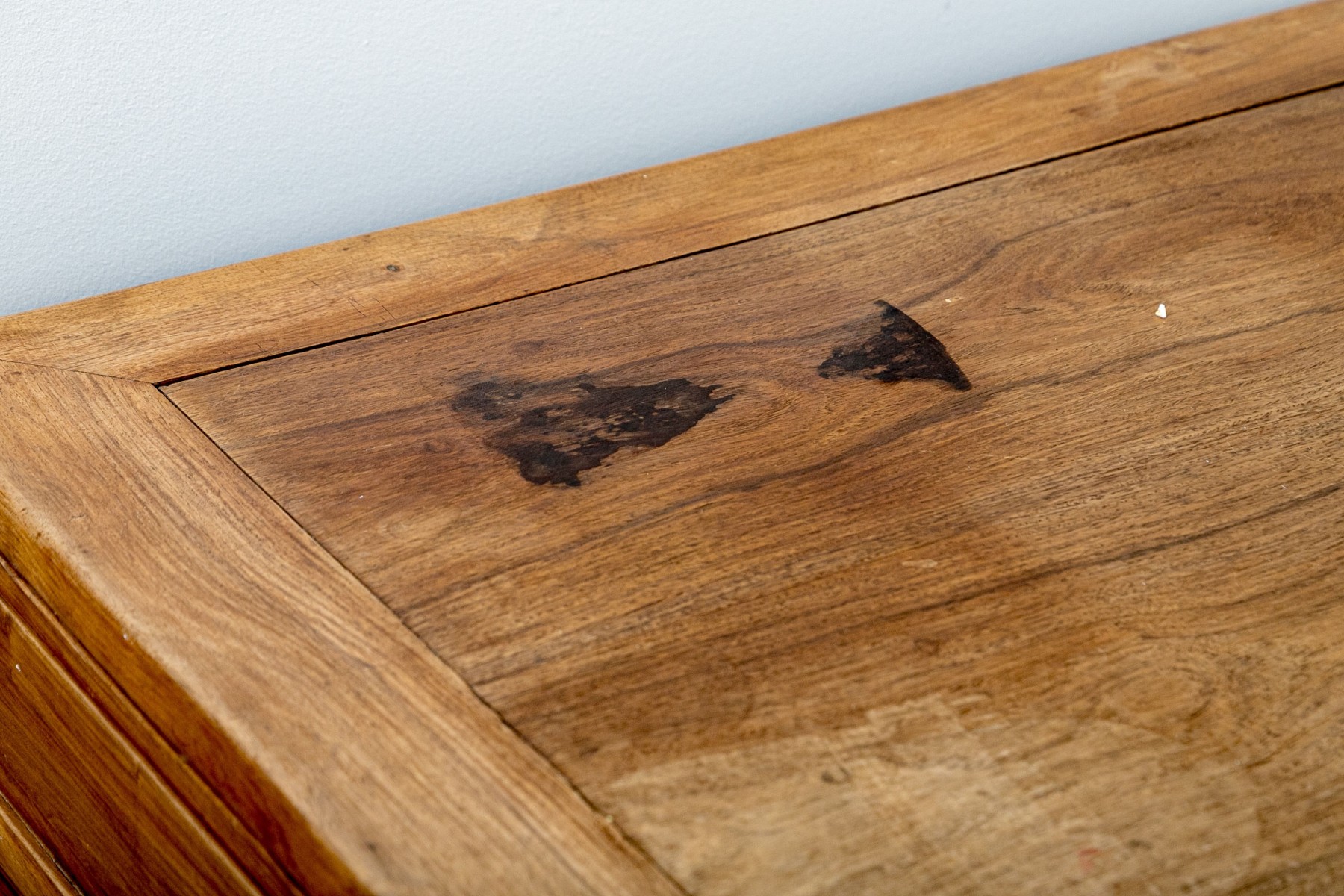 Presents well overall with wear commensurate with age, most notably fading and finish wear to the top and a spot of wood damage to the central panel stretcher near the upper left quadrant.