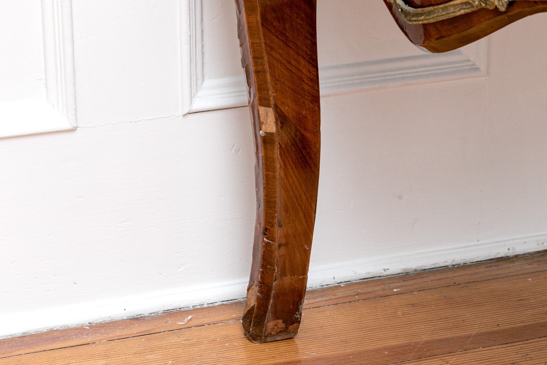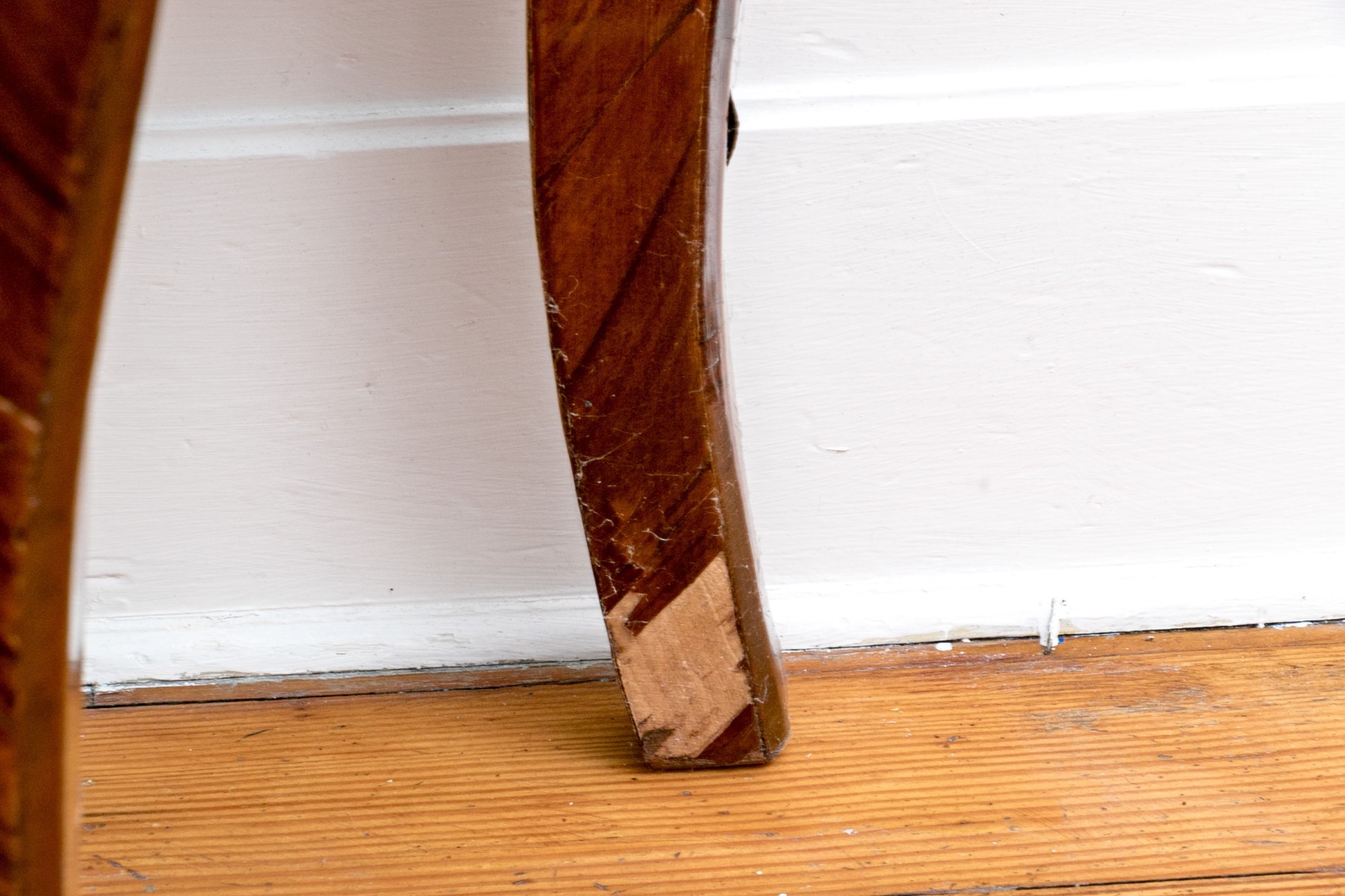 A magnificent piece that displays well overall. Losses to the veneers most notably on the back legs. Please review the pictures as they are a part of the condition report.