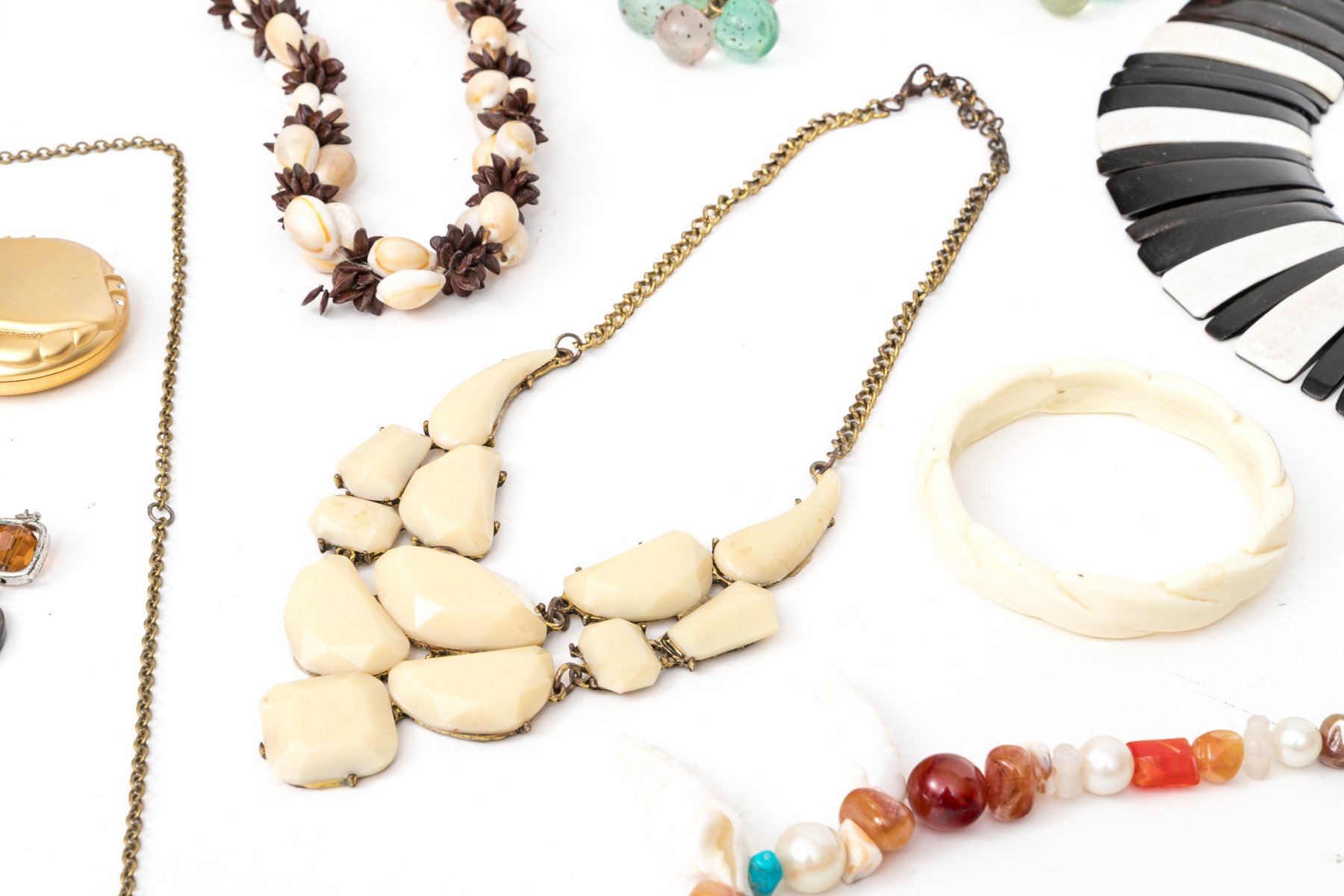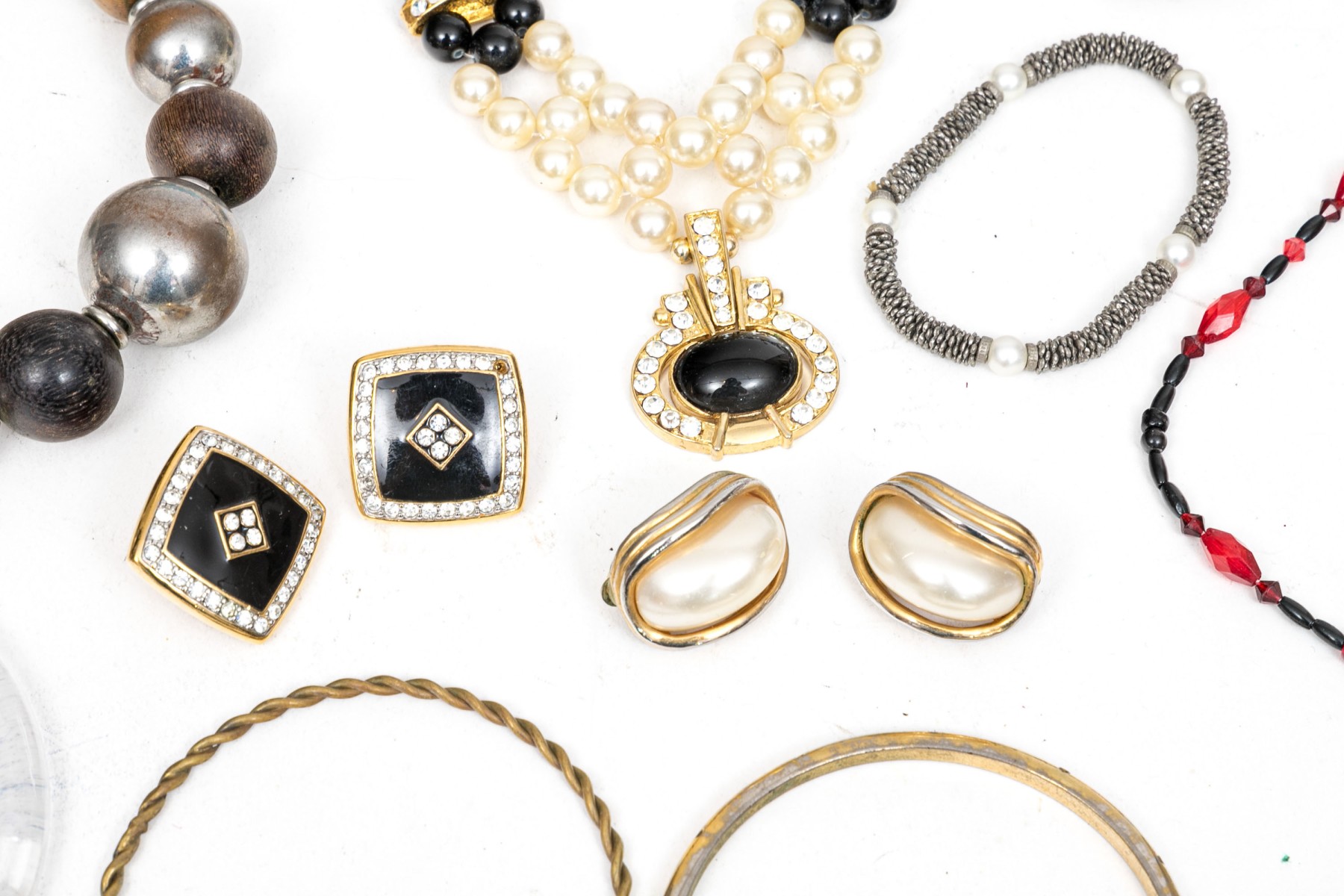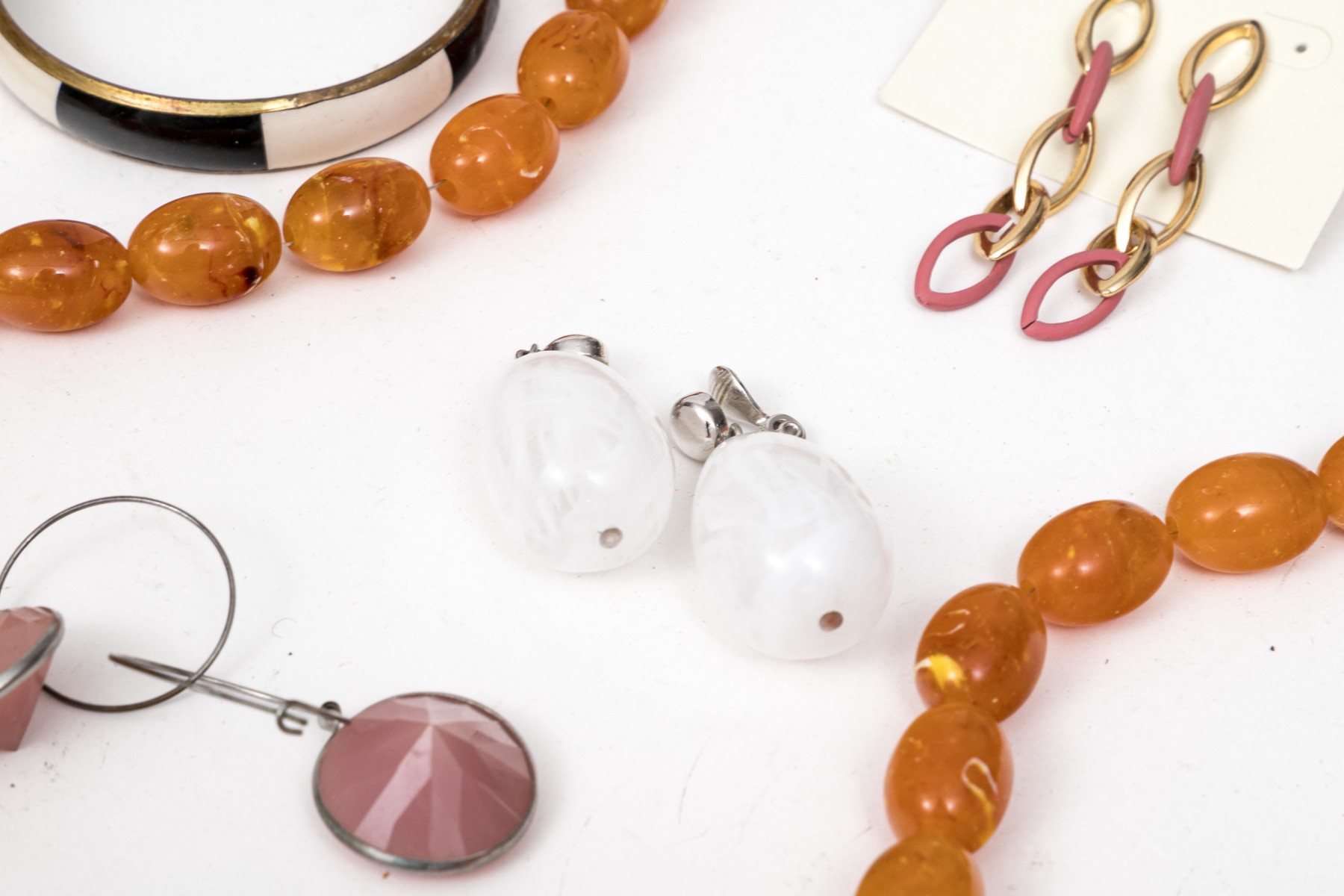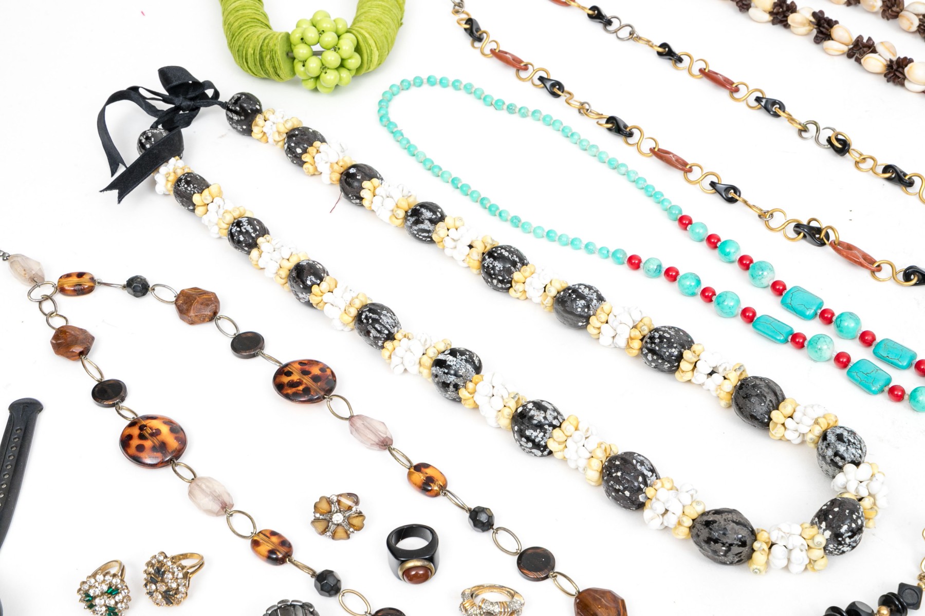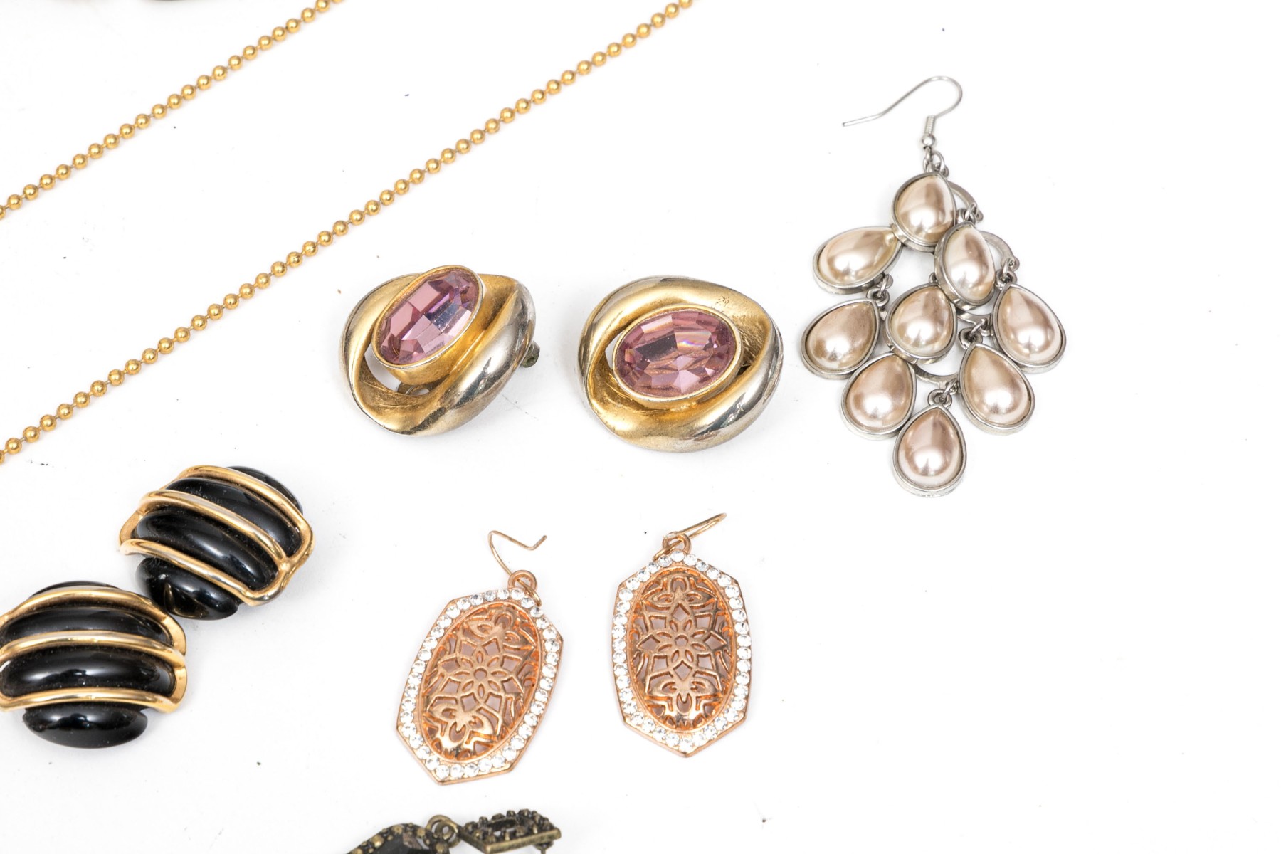 Very large collection of fashion jewelry. Contains bracelets, necklaces, rings, earrings and brooches.