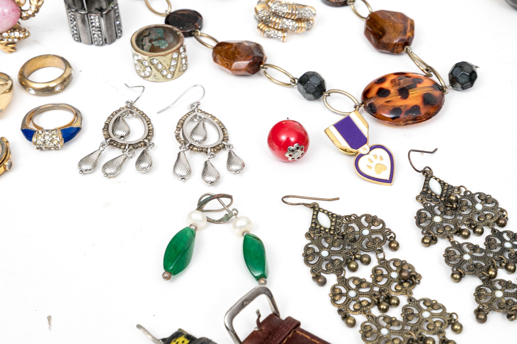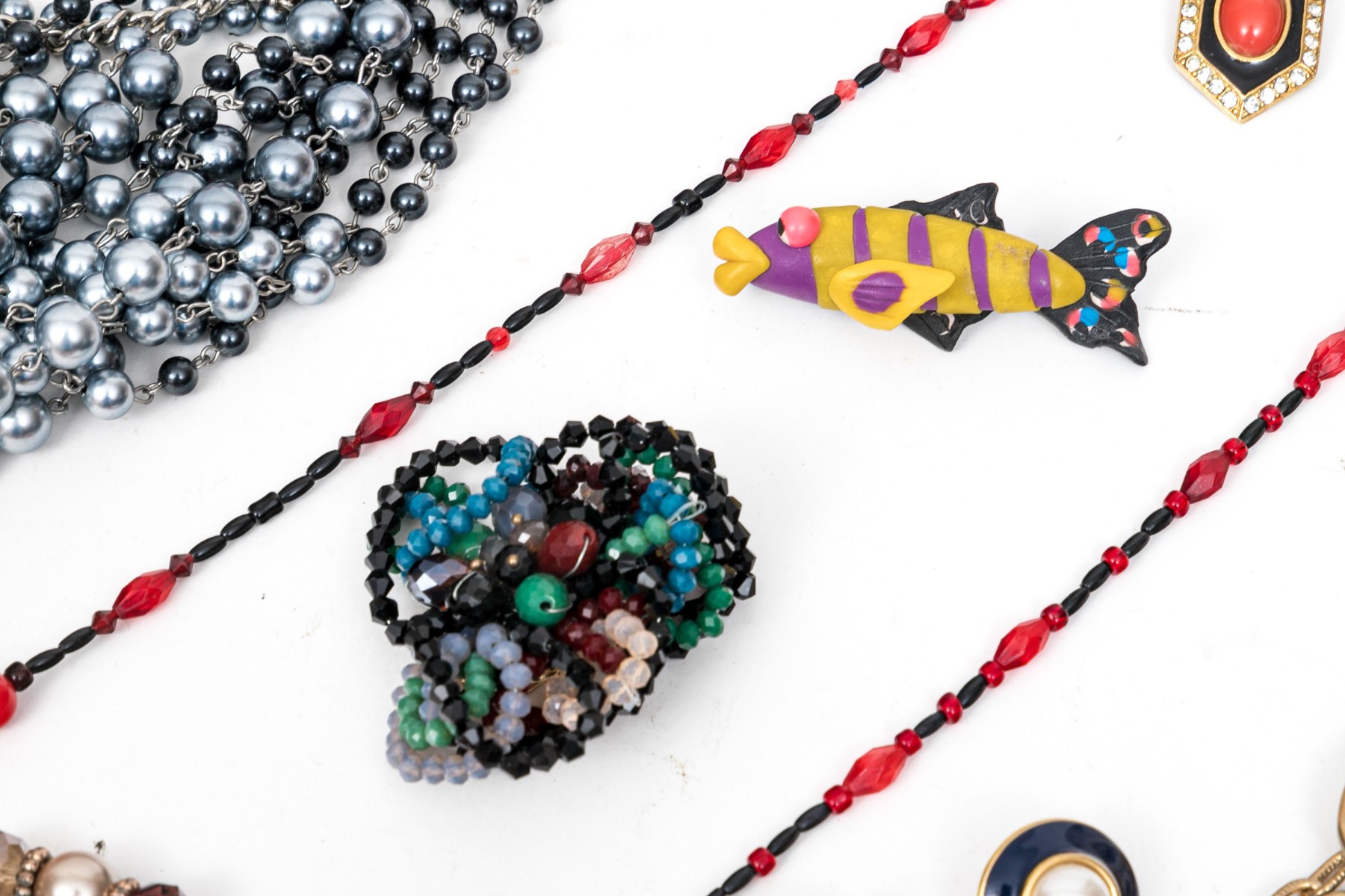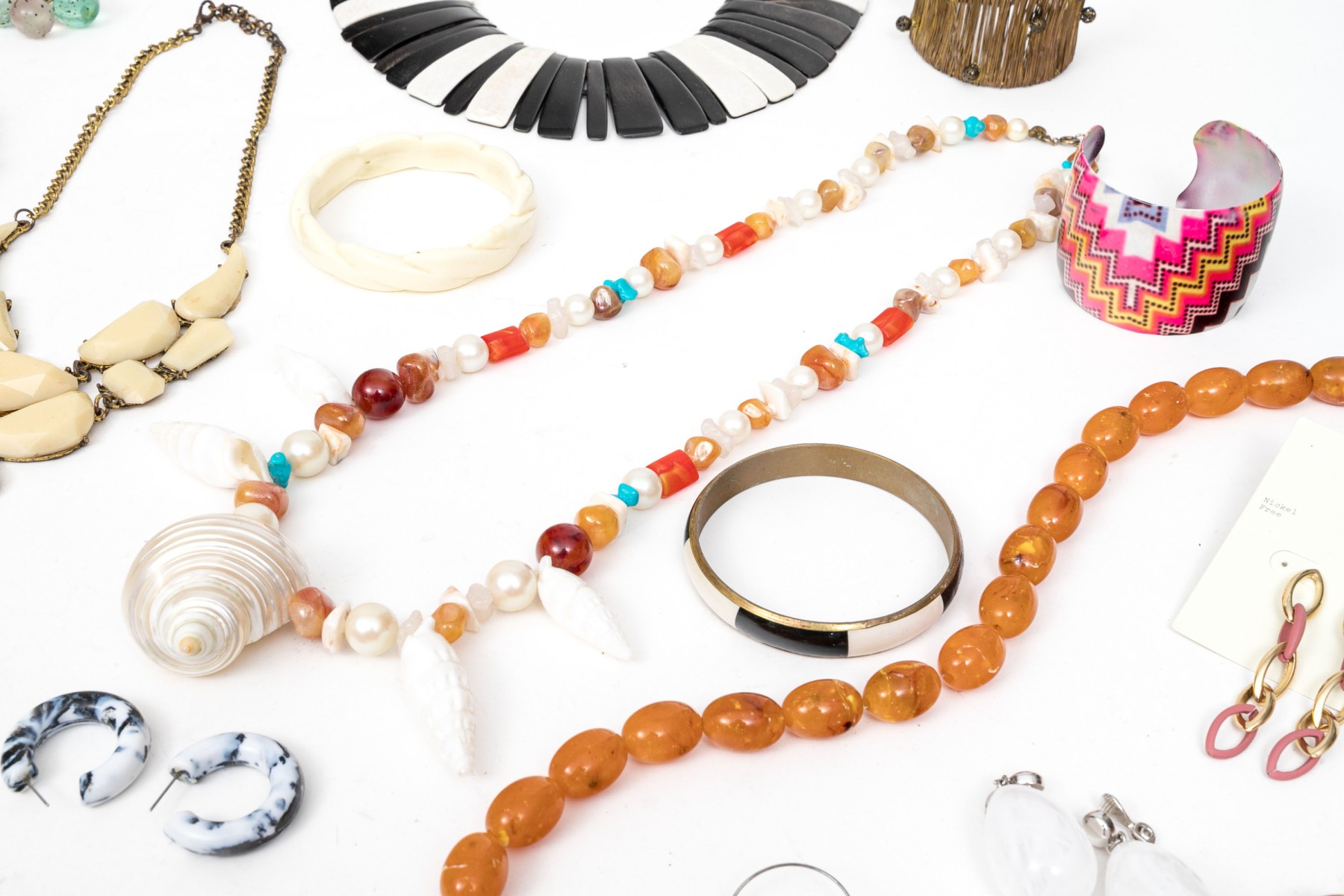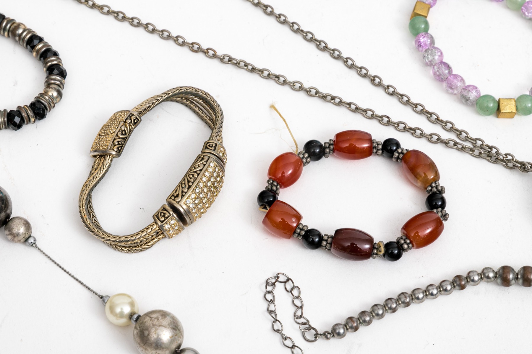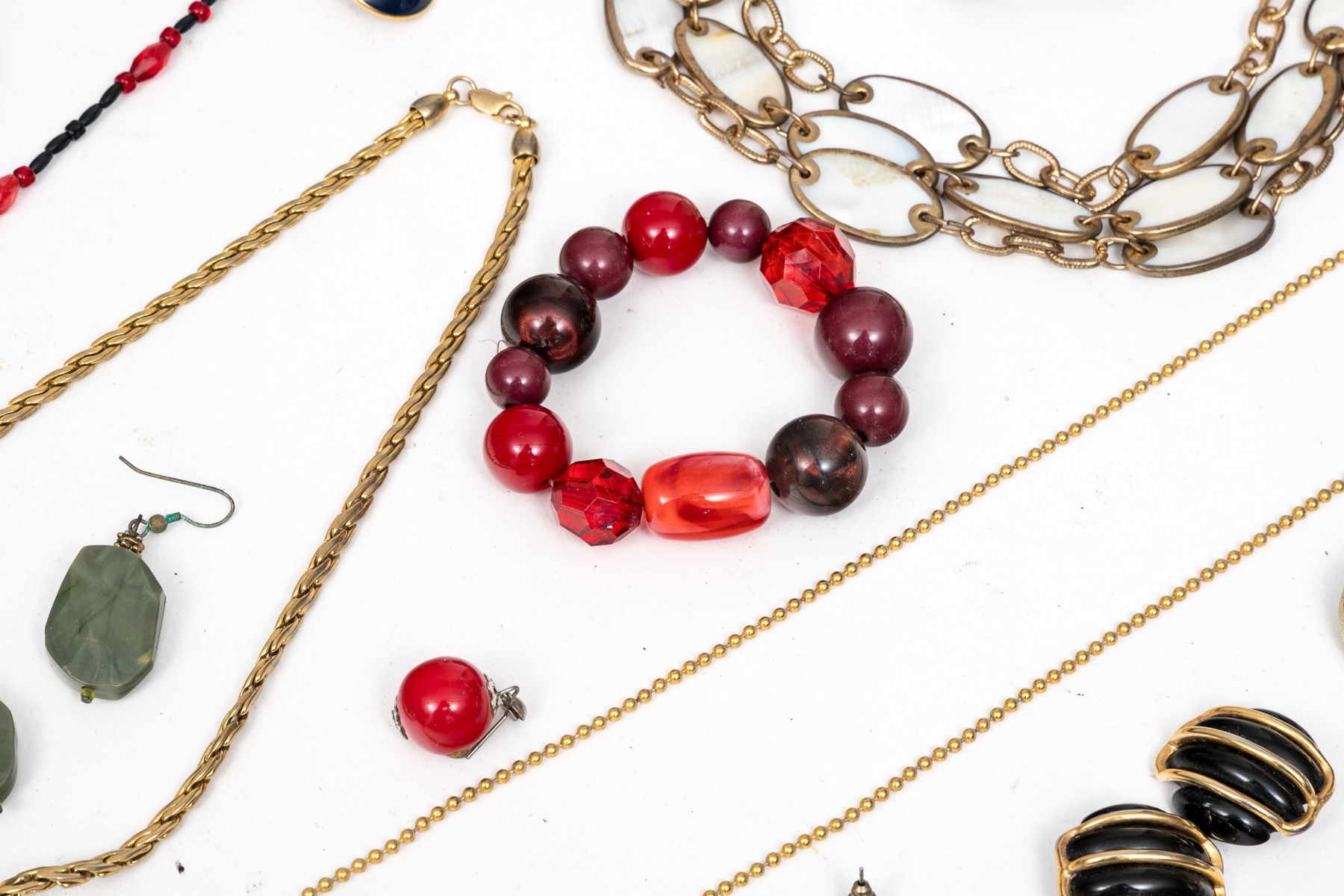 Very large collection of fashion jewelry. Contains bracelets, necklaces, rings, earrings and brooches.