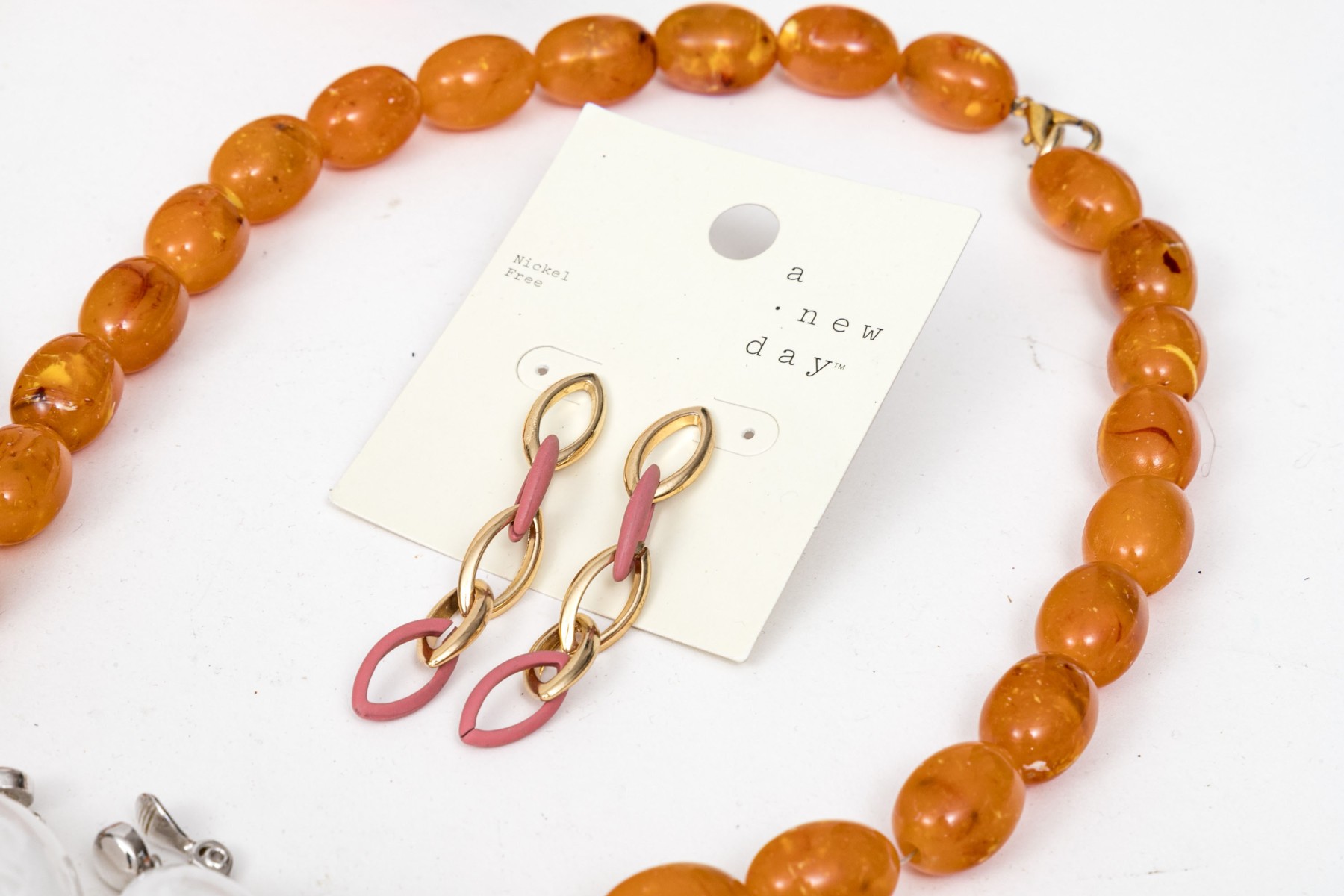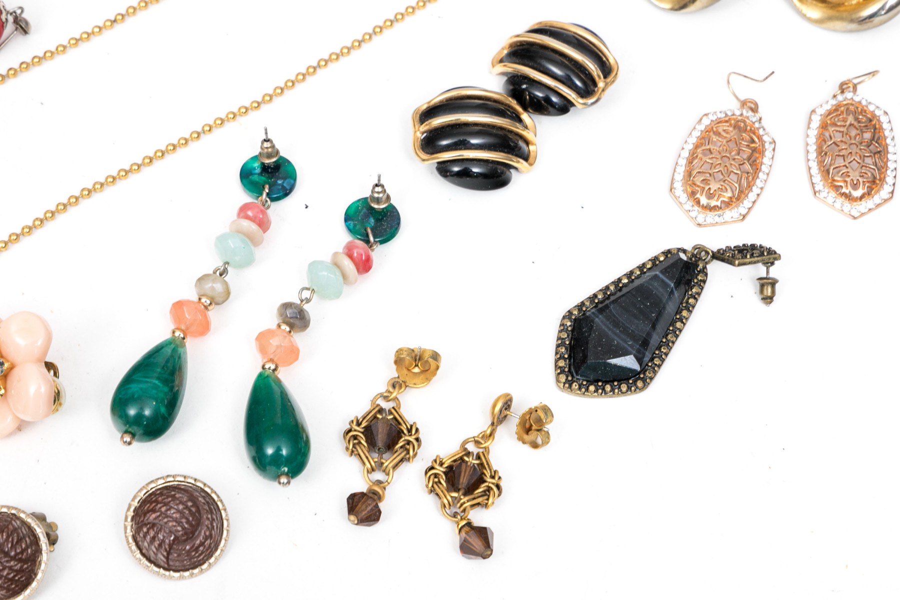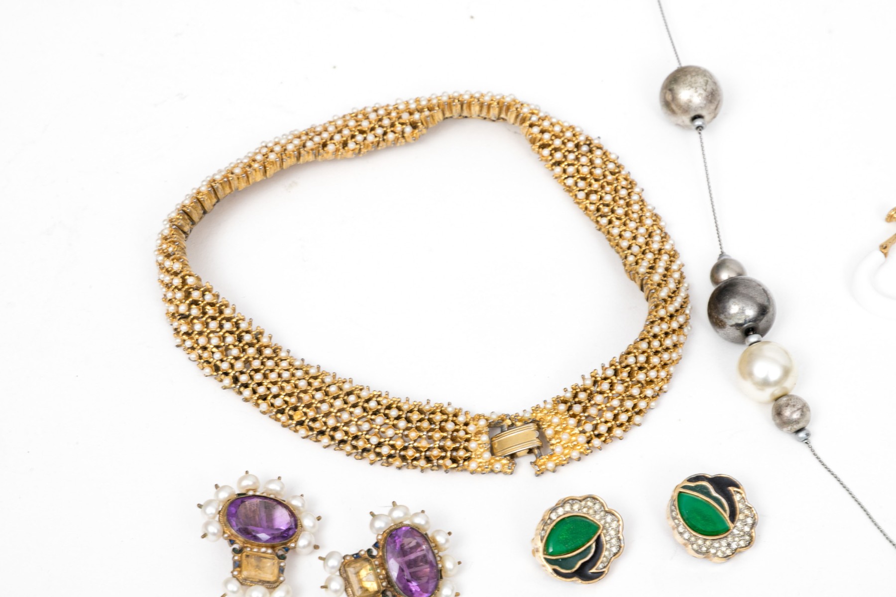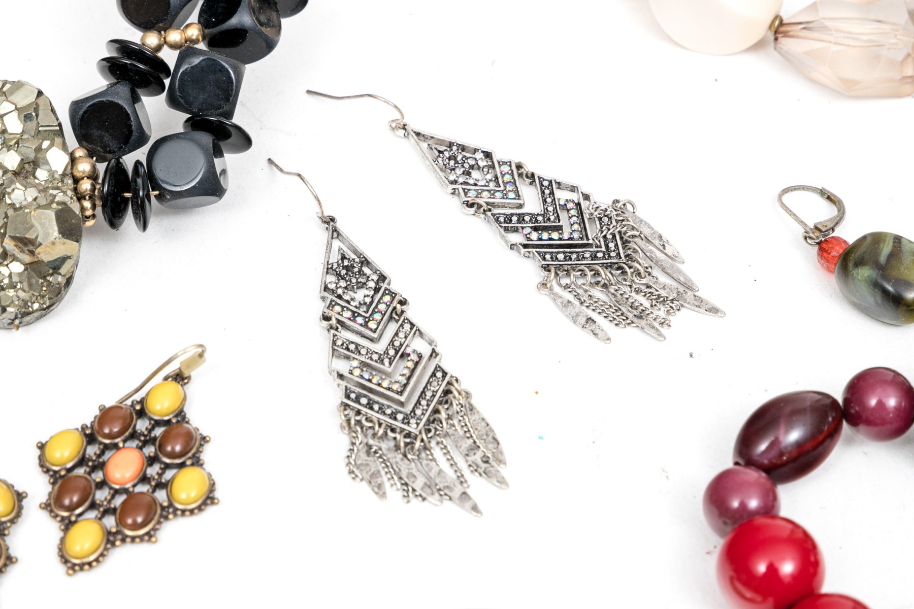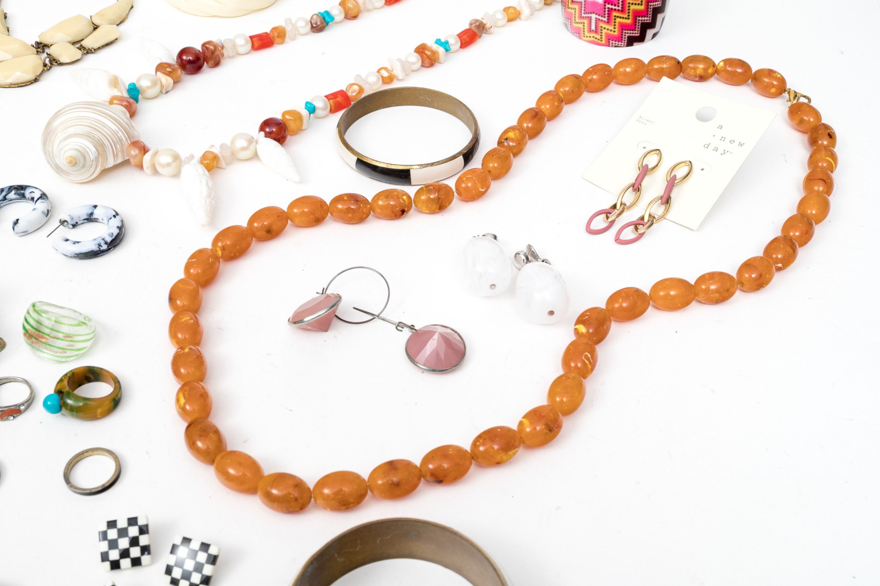 Very large collection of fashion jewelry. Contains bracelets, necklaces, rings, earrings and brooches.