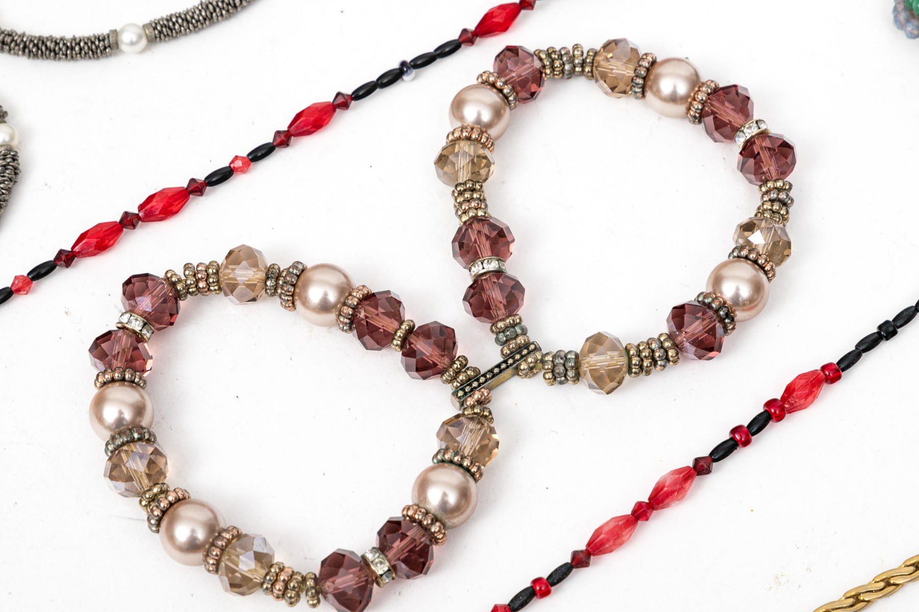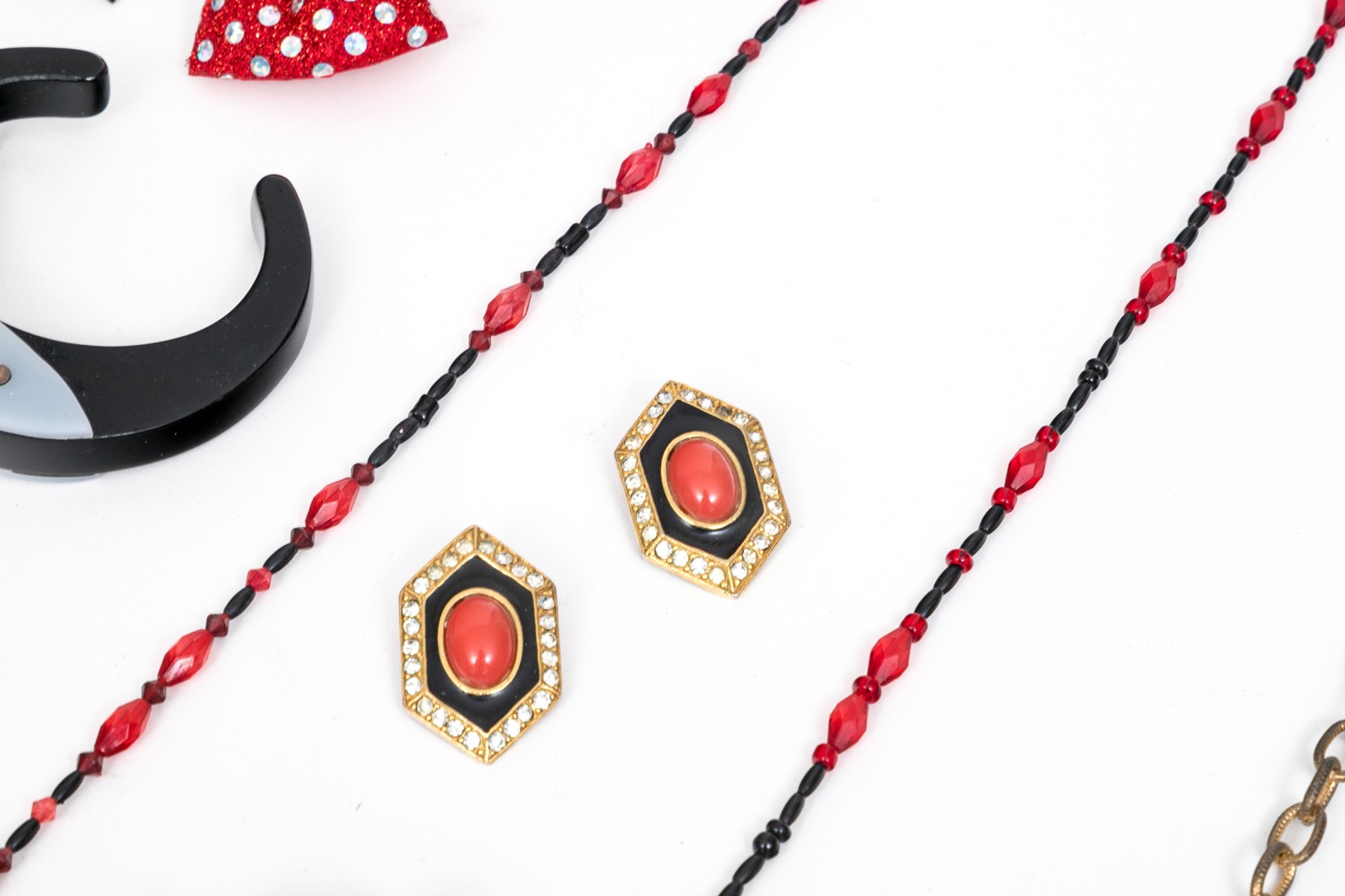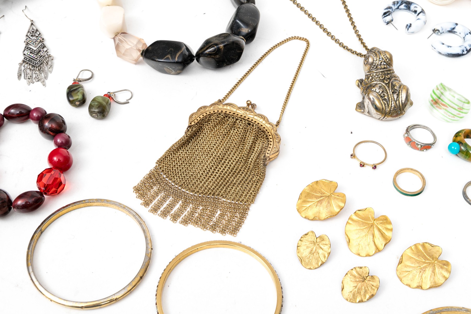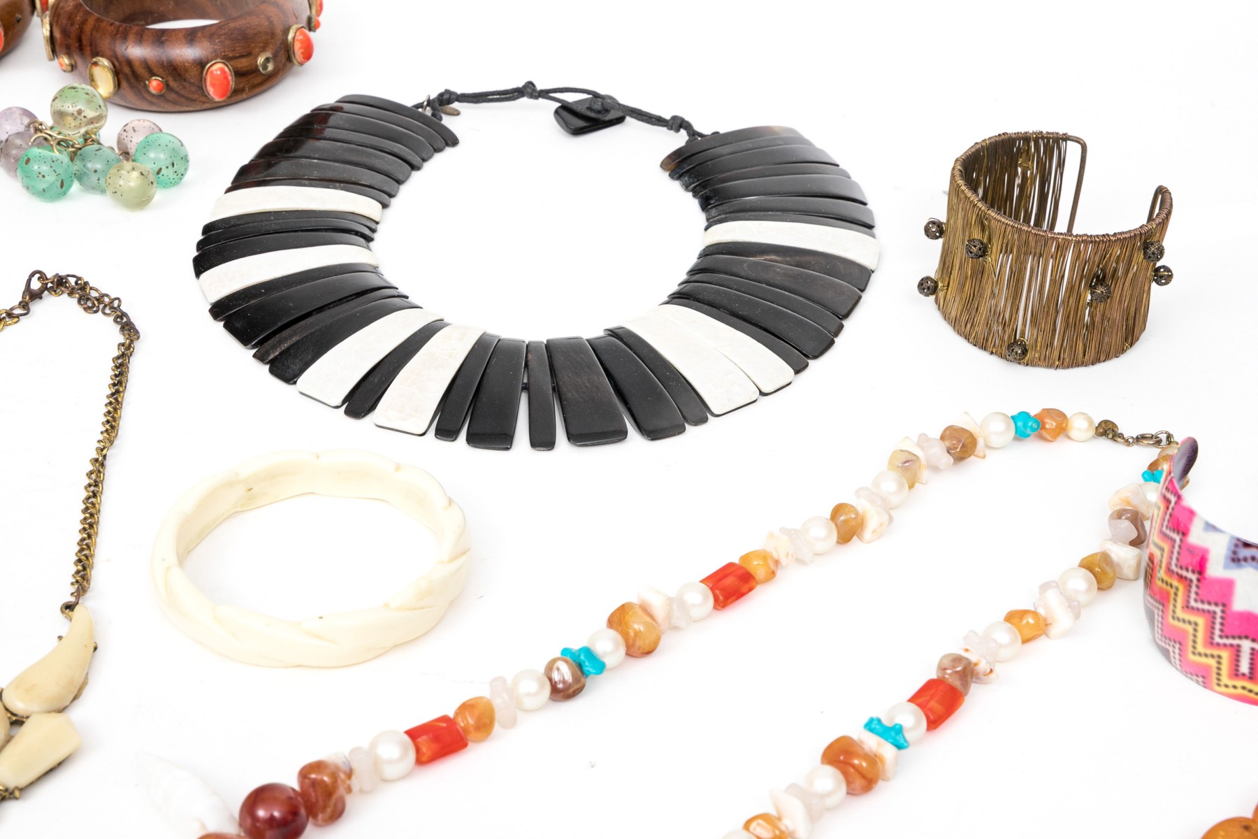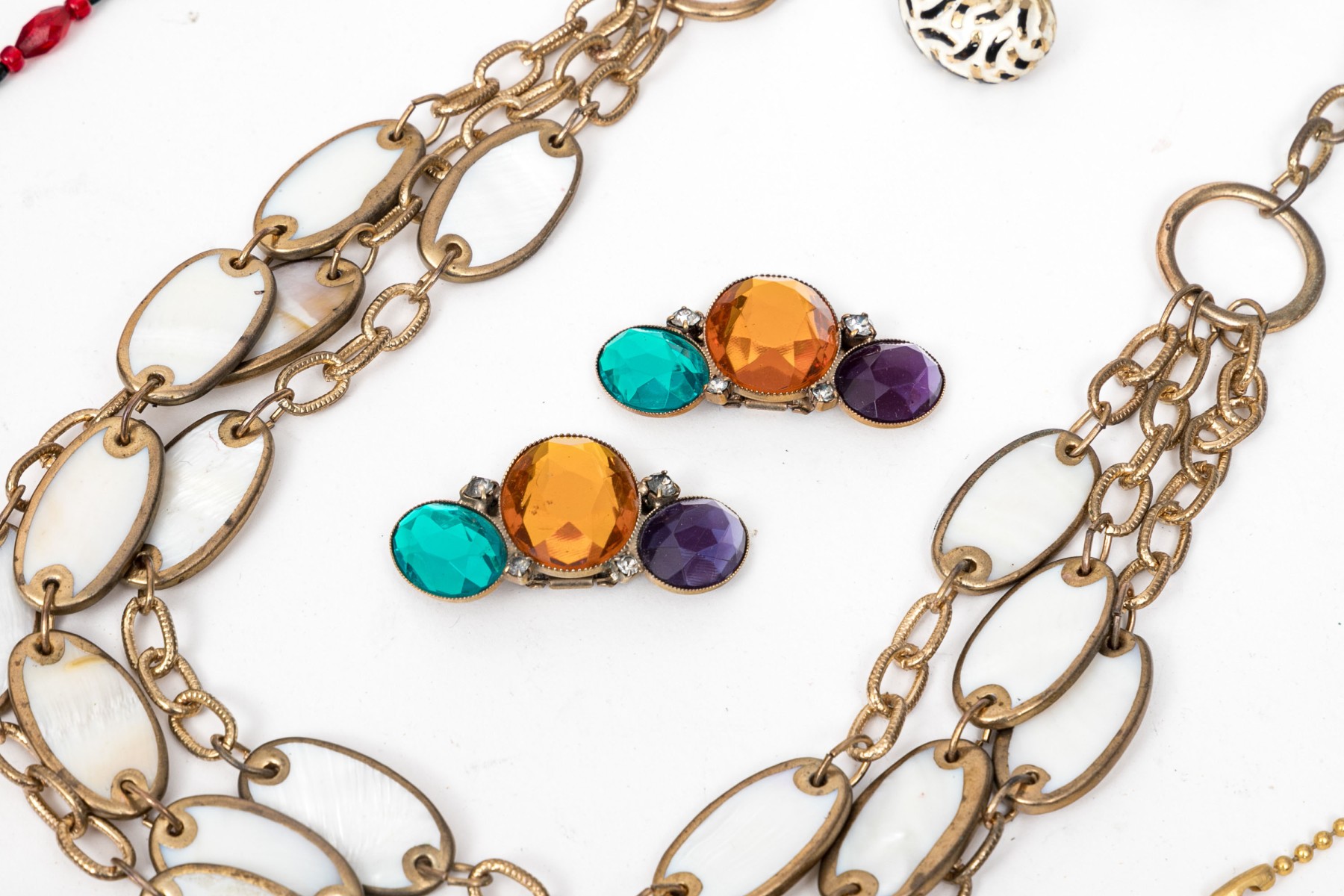 Very large collection of fashion jewelry. Contains bracelets, necklaces, rings, earrings and brooches.