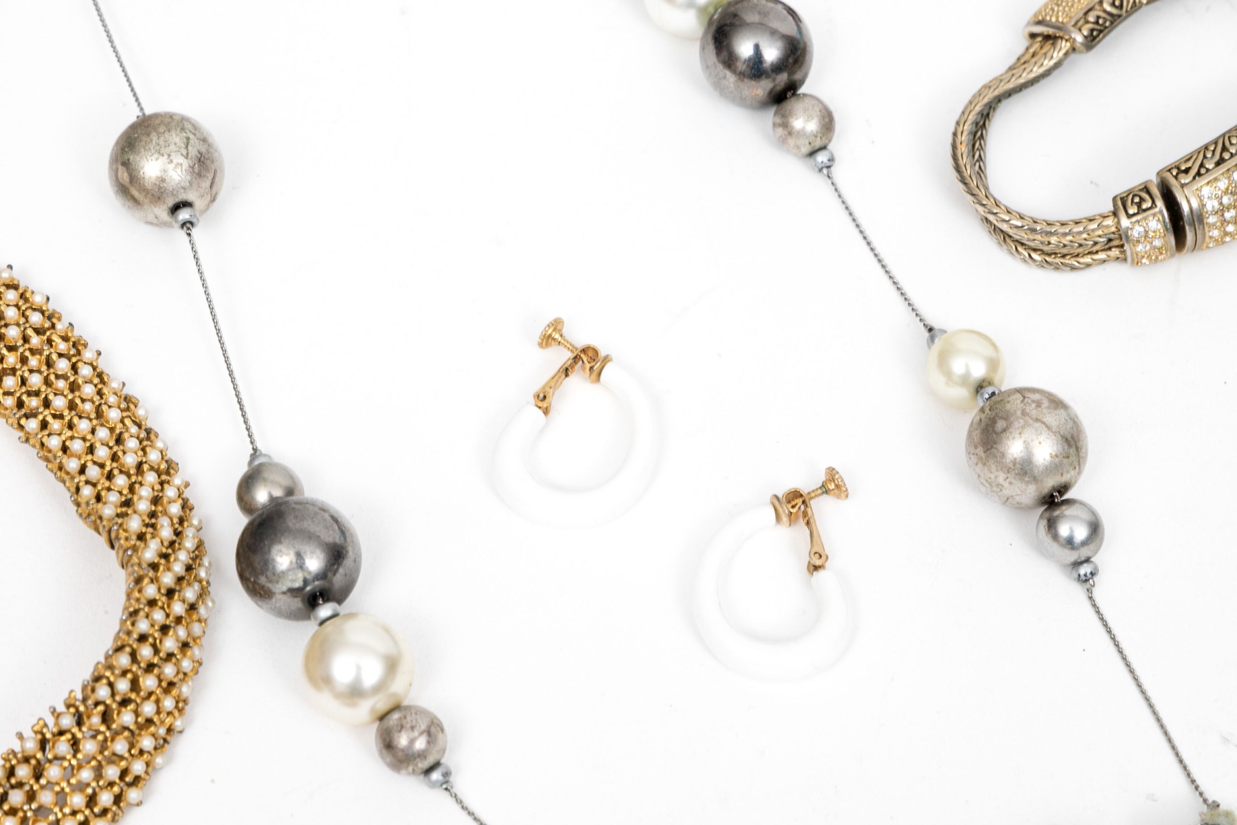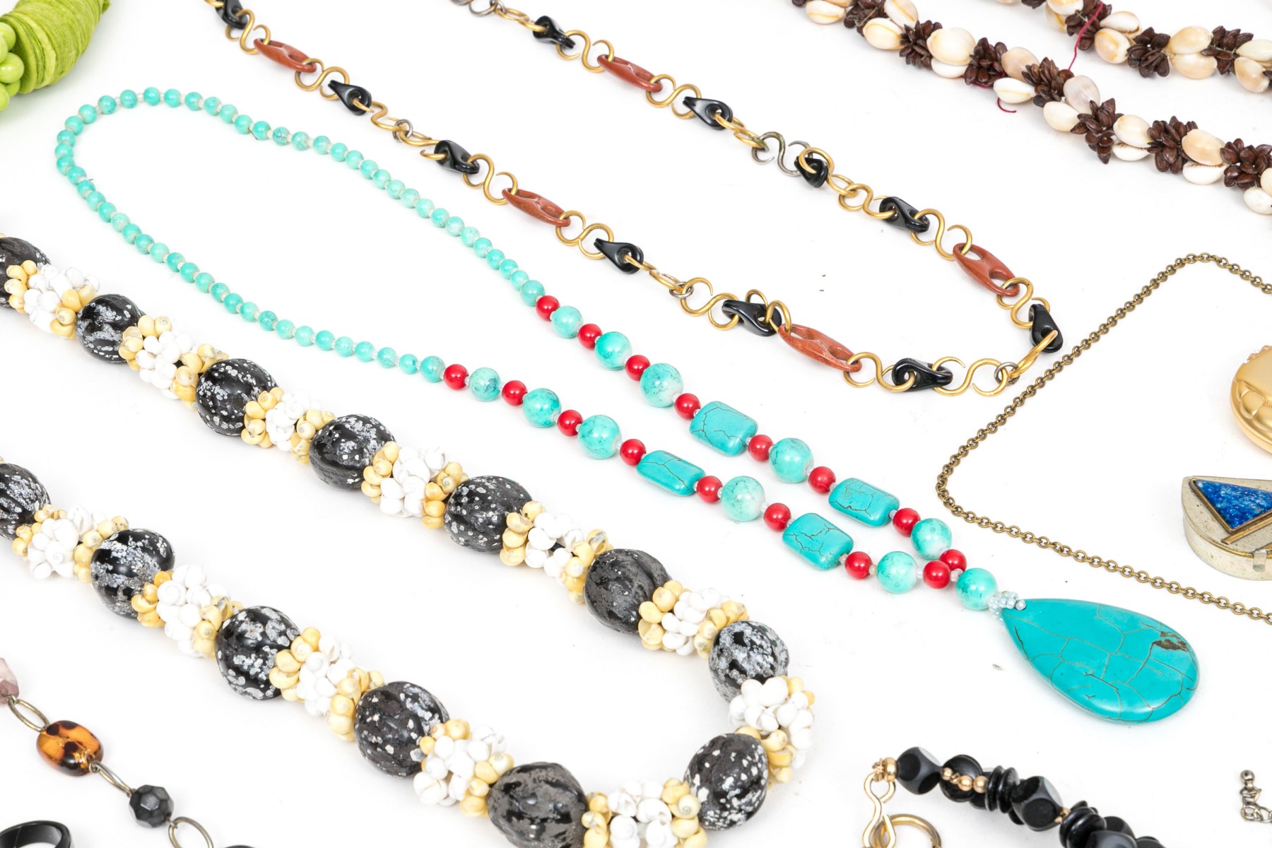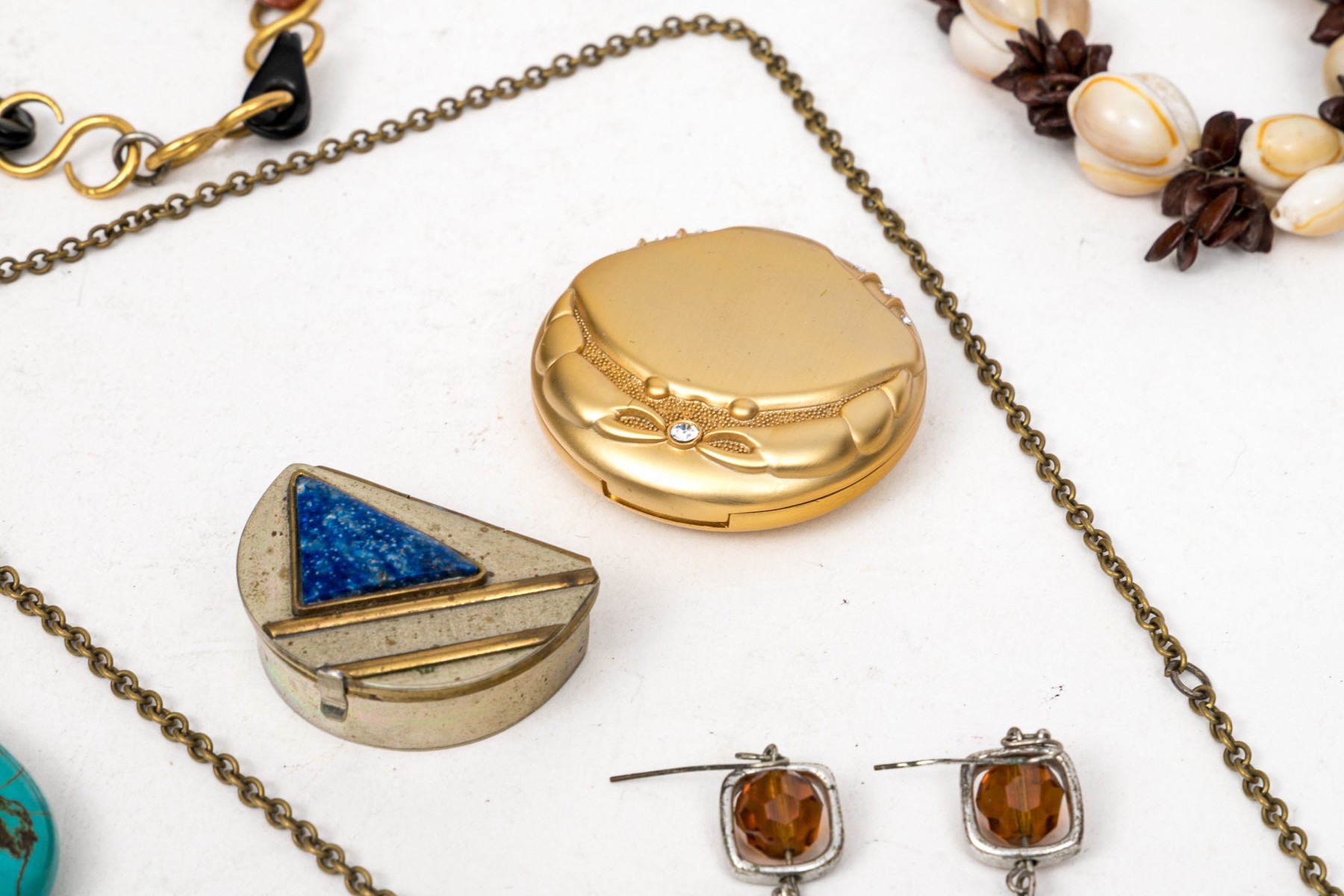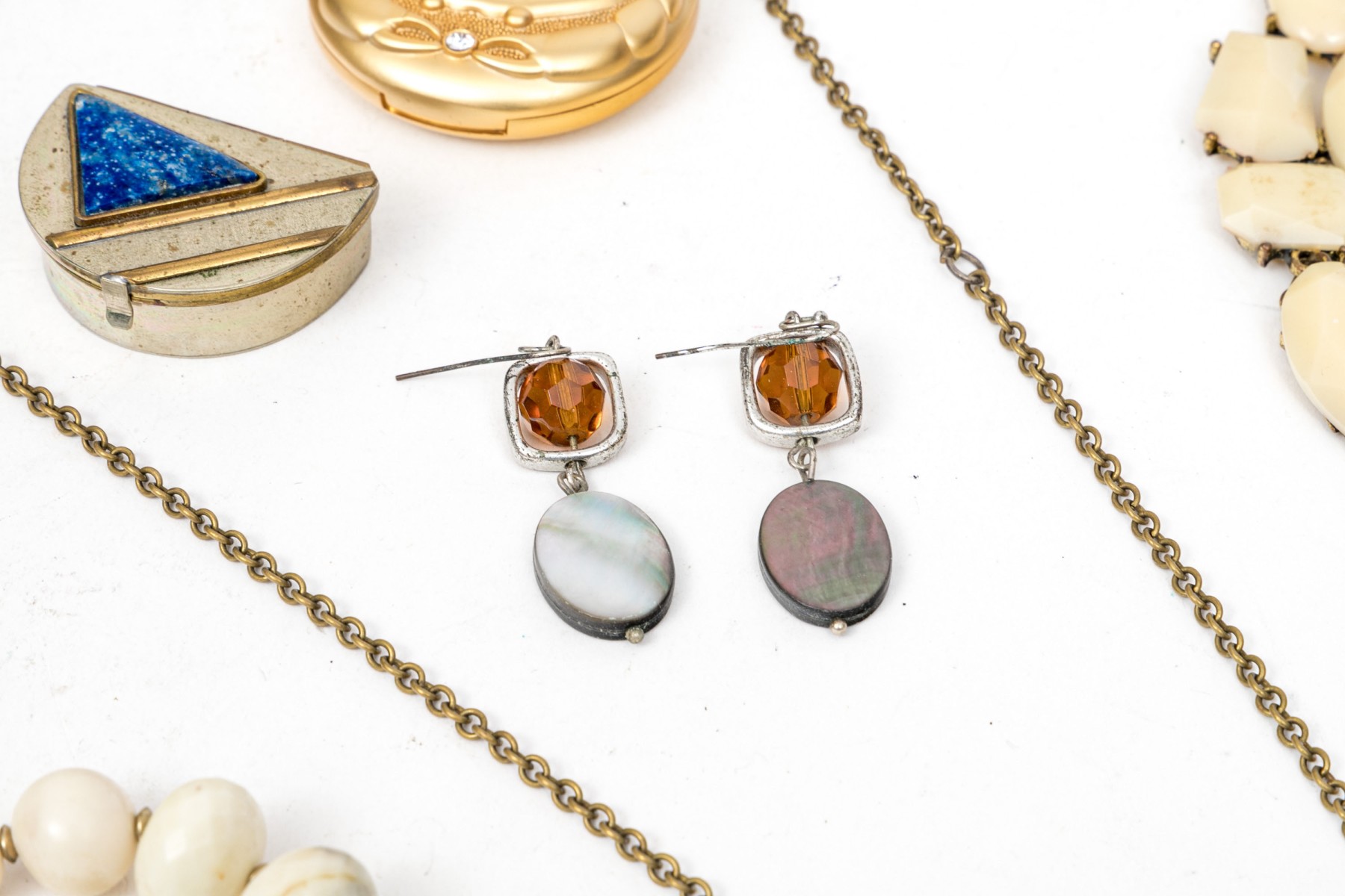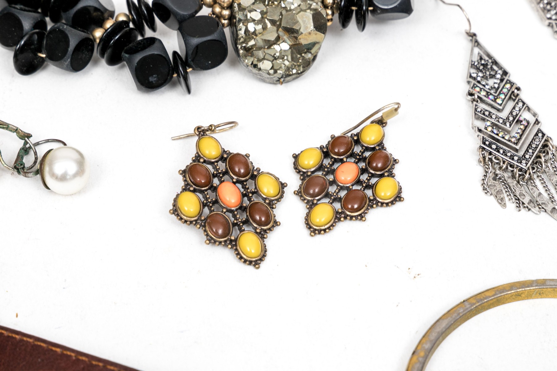 Very large collection of fashion jewelry. Contains bracelets, necklaces, rings, earrings and brooches.