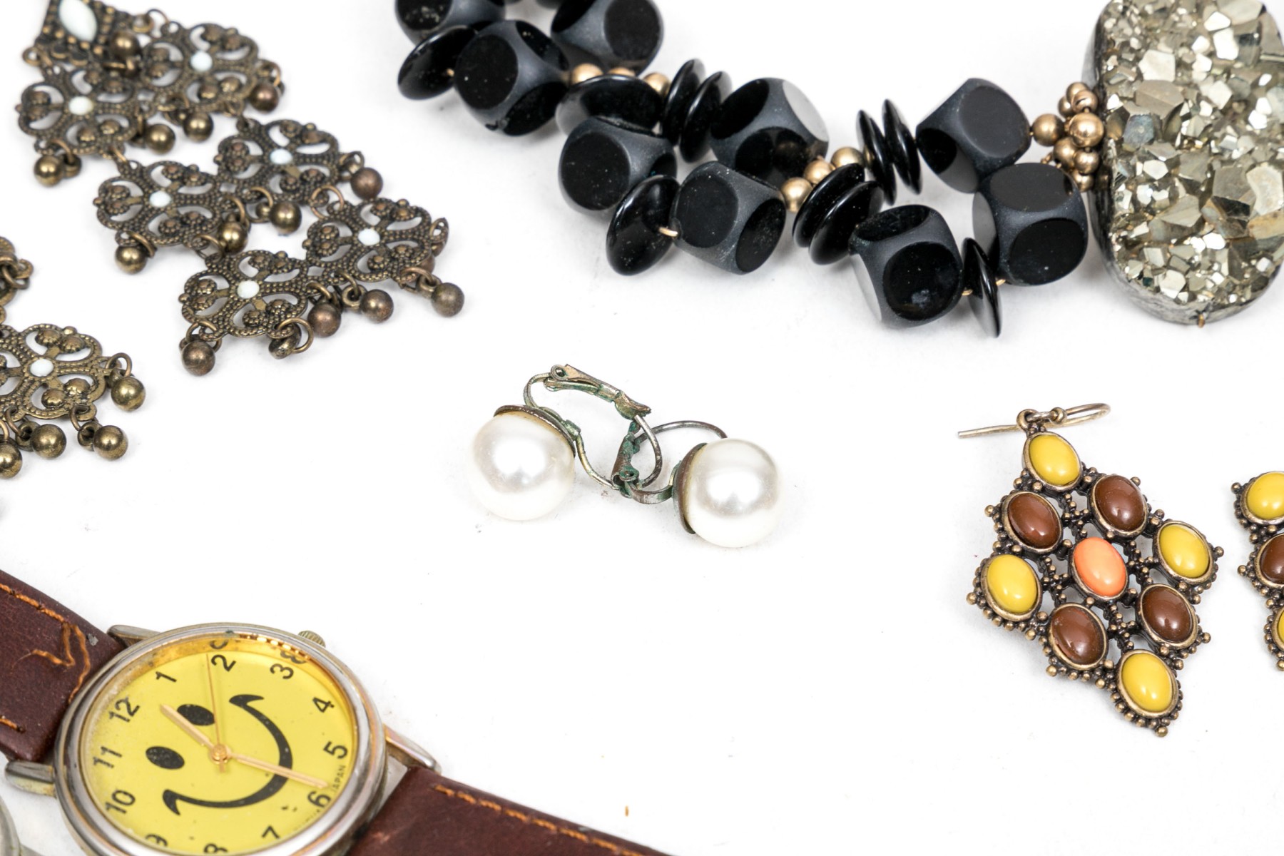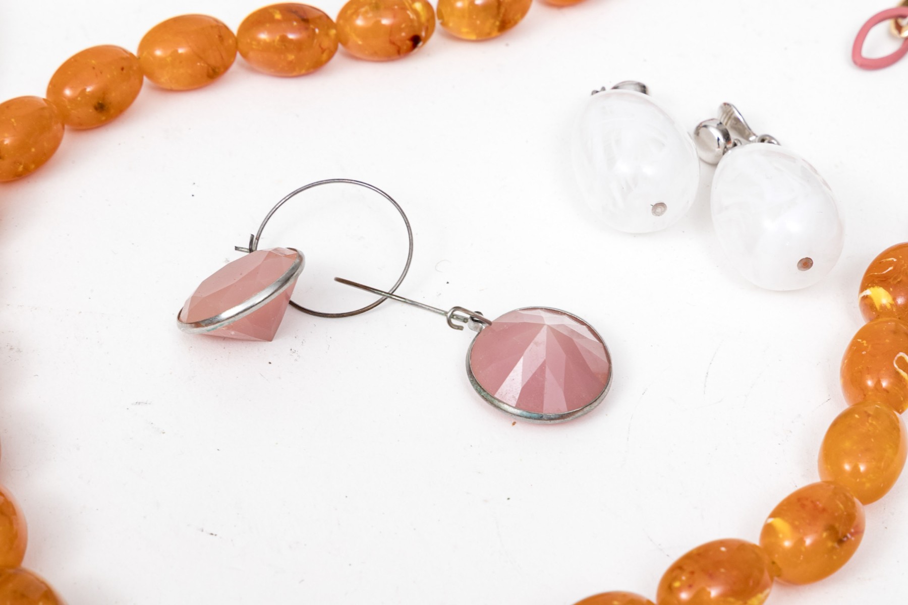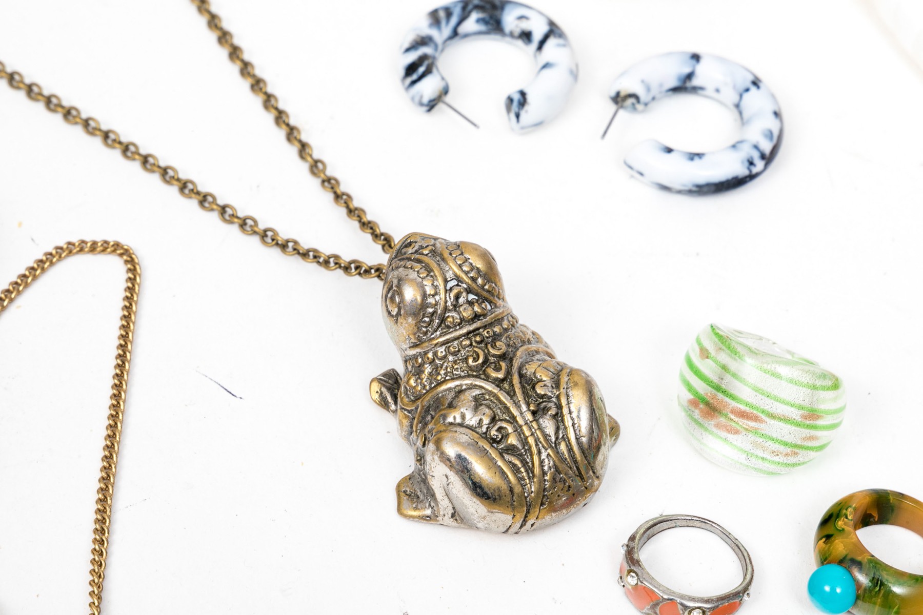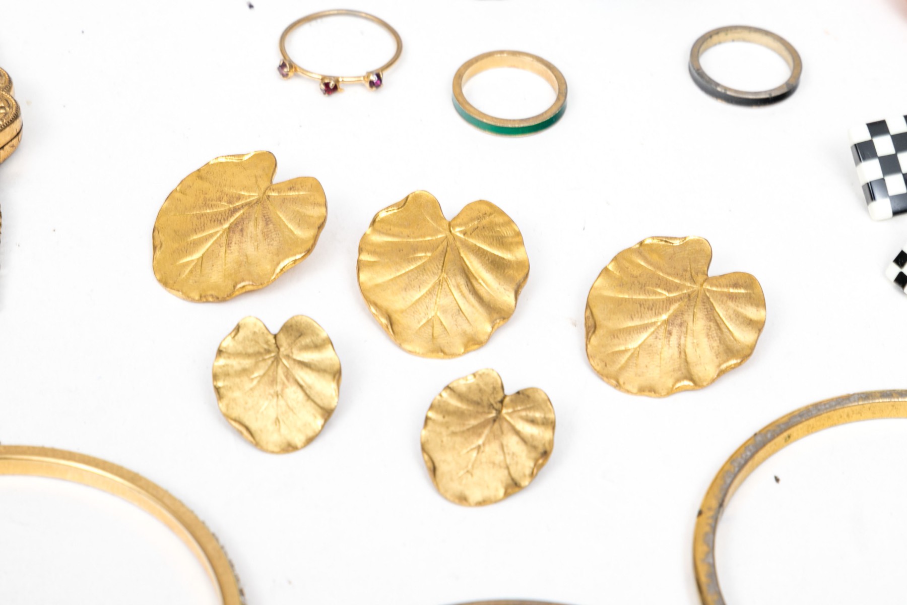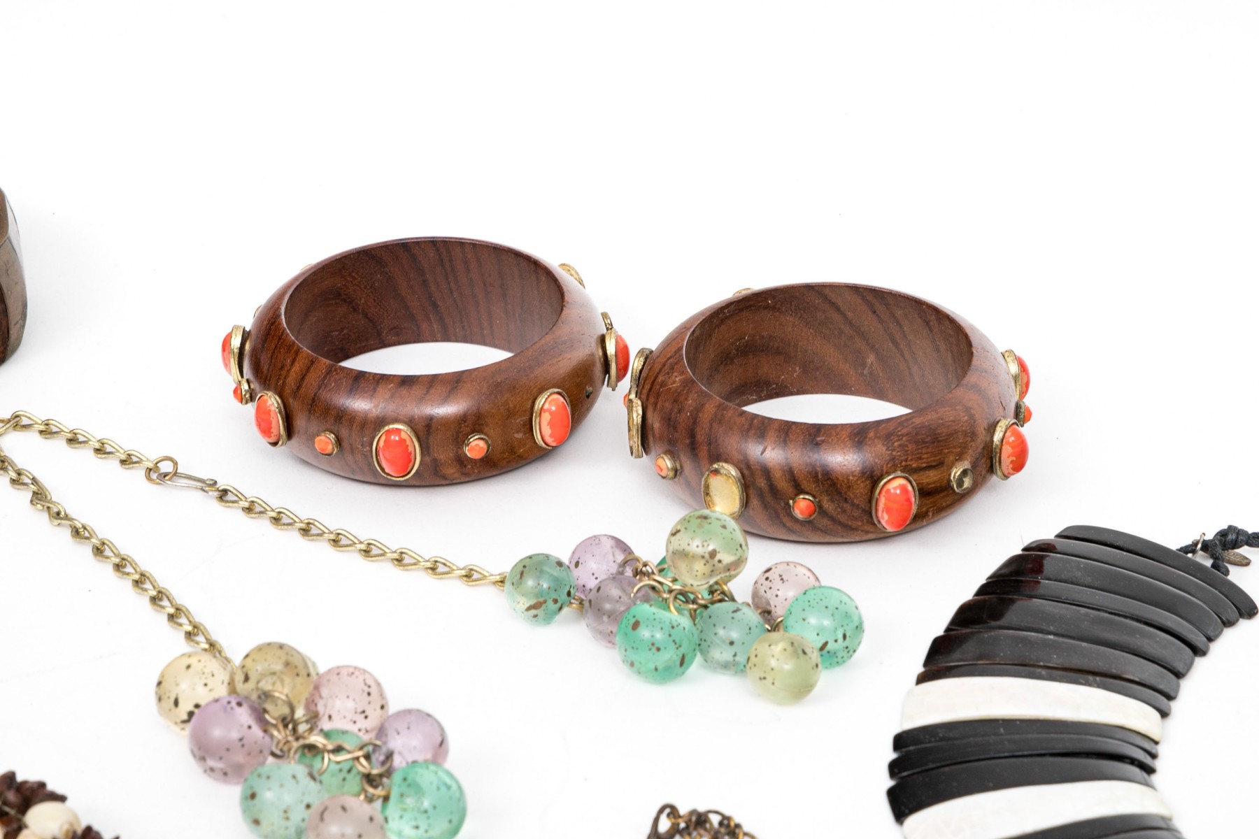 Very large collection of fashion jewelry. Contains bracelets, necklaces, rings, earrings and brooches.