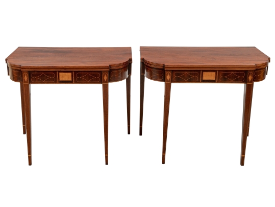 Extraordinary Pair Of Fine Period Federal Inlaid Mahogany Console Tables