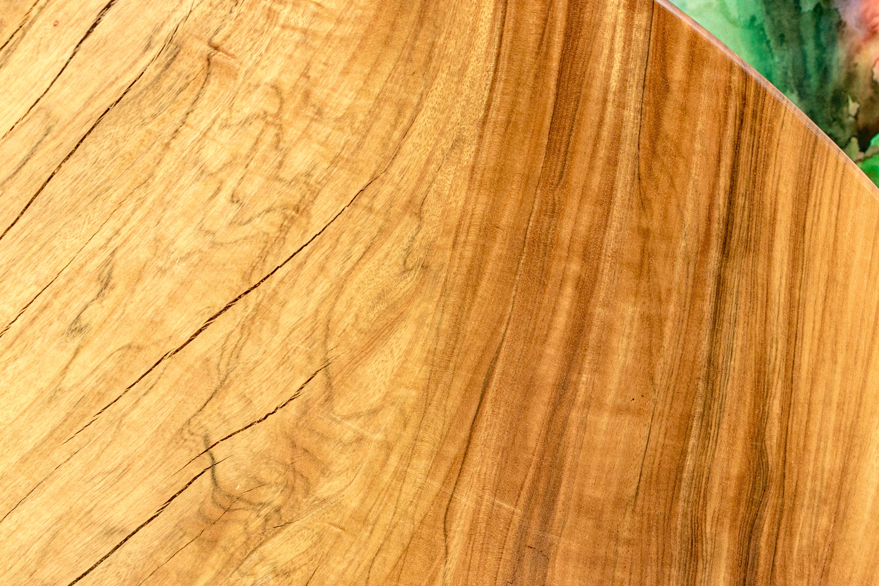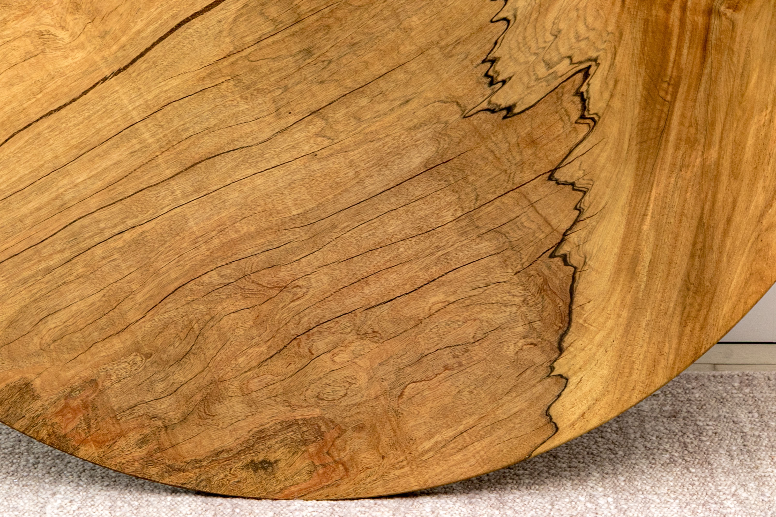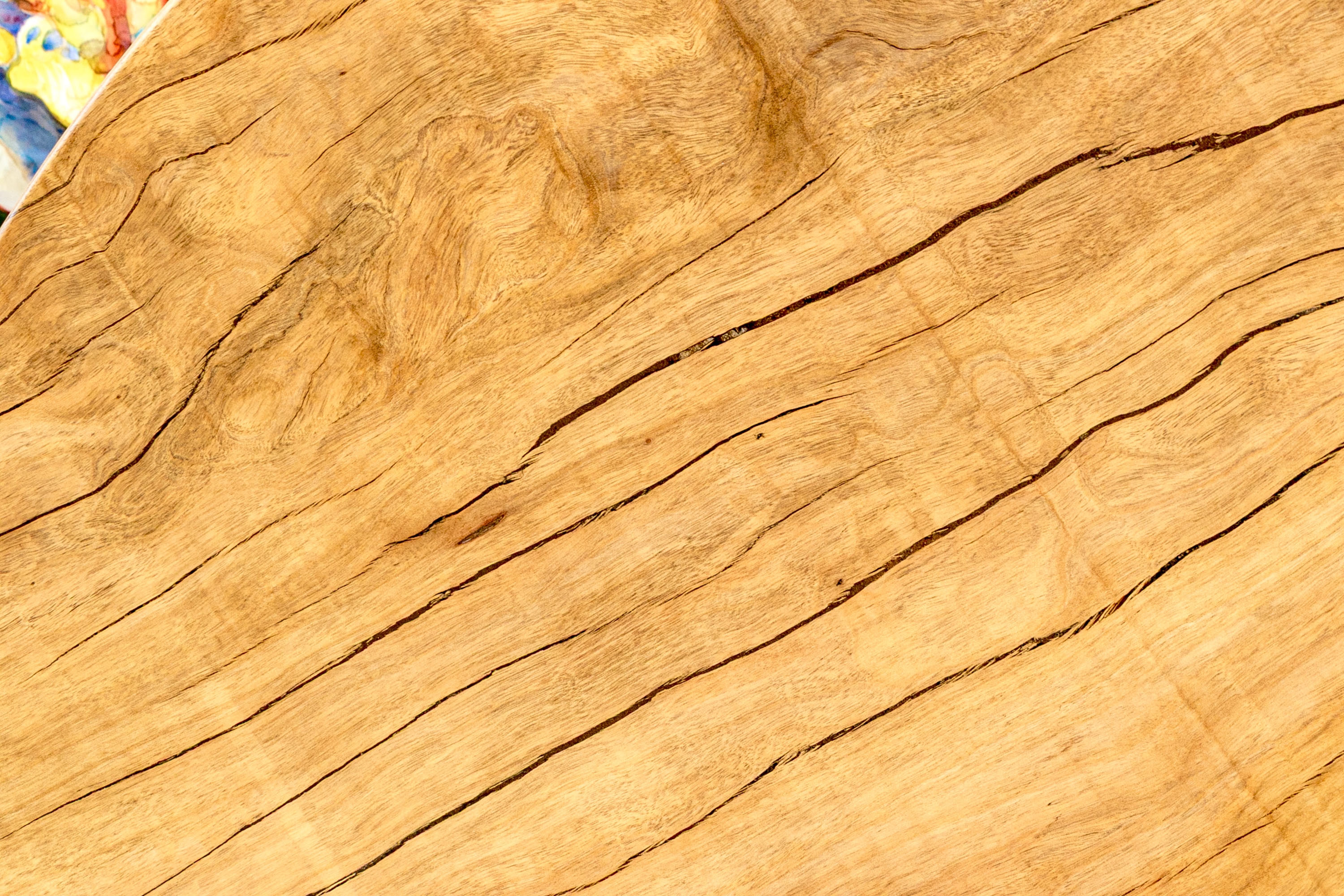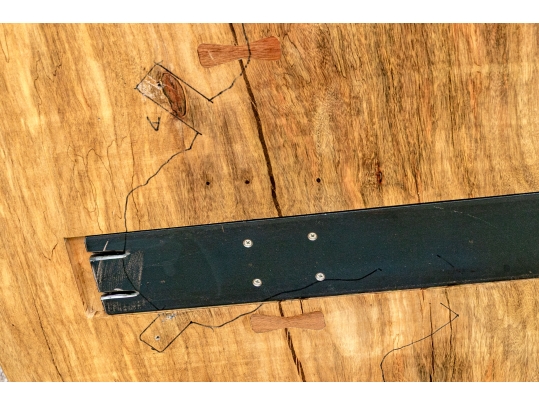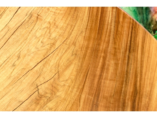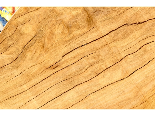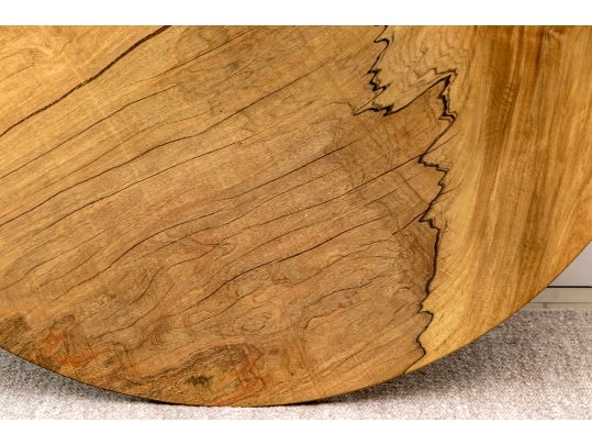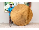 A solid wood table top from furniture designer Tucker Robbins. Mr. Robbins is justly celebrated for his visionary style utilizing fascinating natural materials along with the knowledge and crafting skills of the indigenous people groups that he has partnered with for decades. This table top is crafted from Paldao Wood and the natural design of the graining as well as the deep honey tone are mesmerizing. Tight grained, heavy and thick, the top has a particularly soft hand due to the material as well as the meticulous finishing process employed by Mr. Tucker and his team.