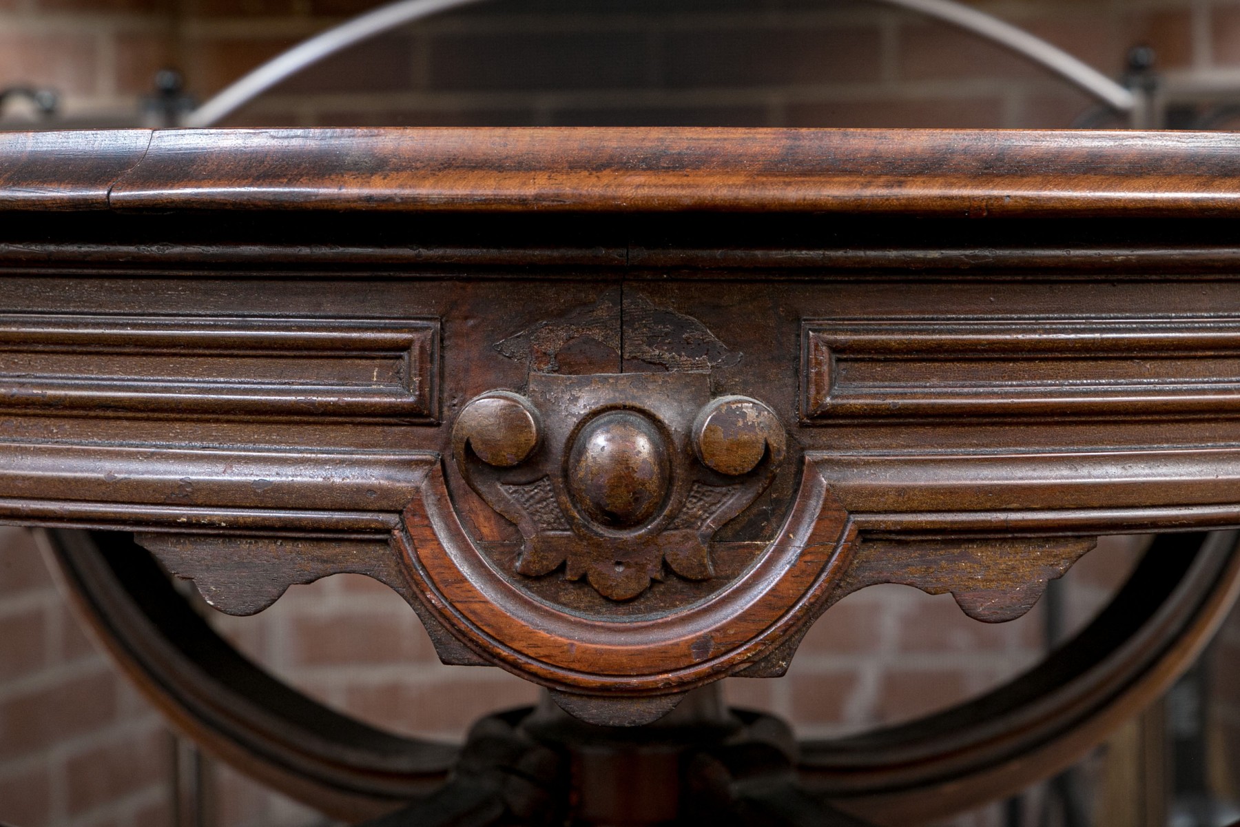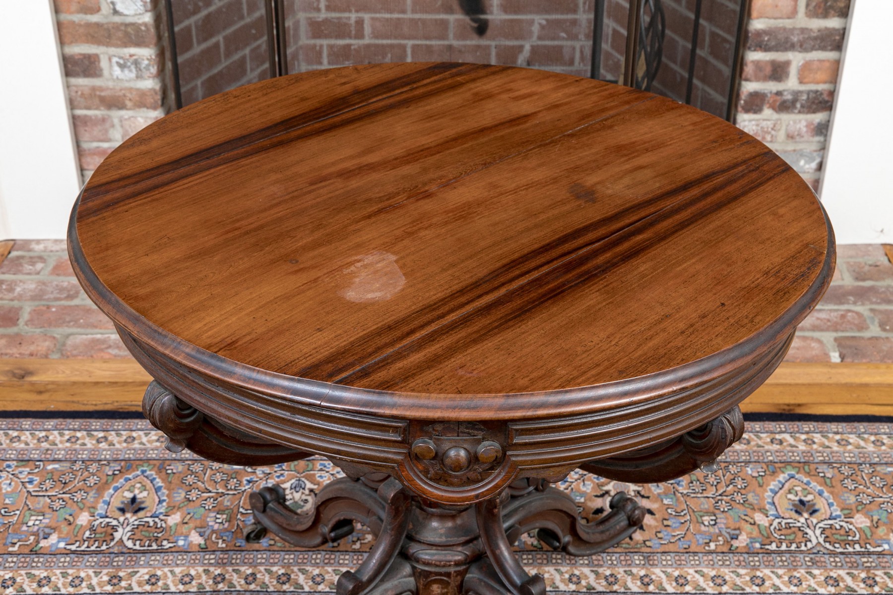 having a round top over beautifully carved walnut base.