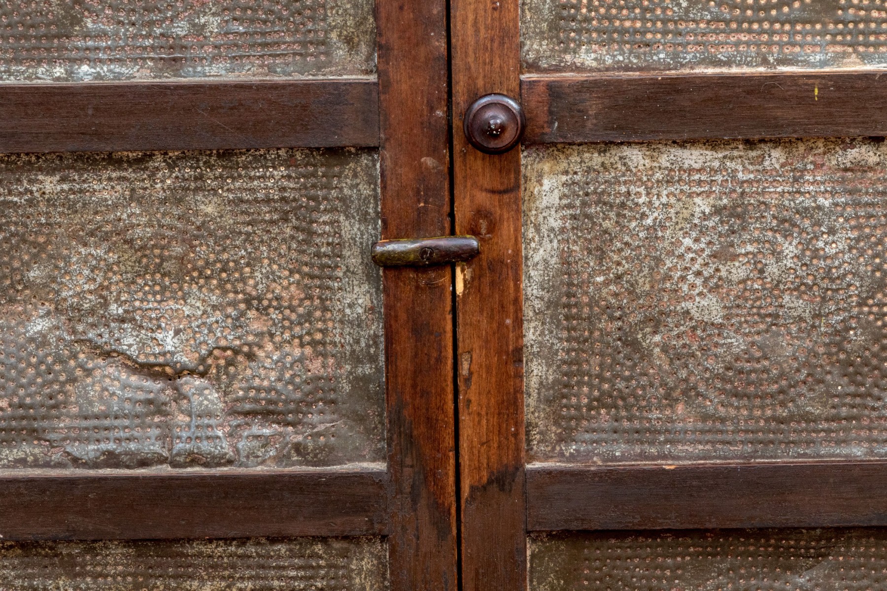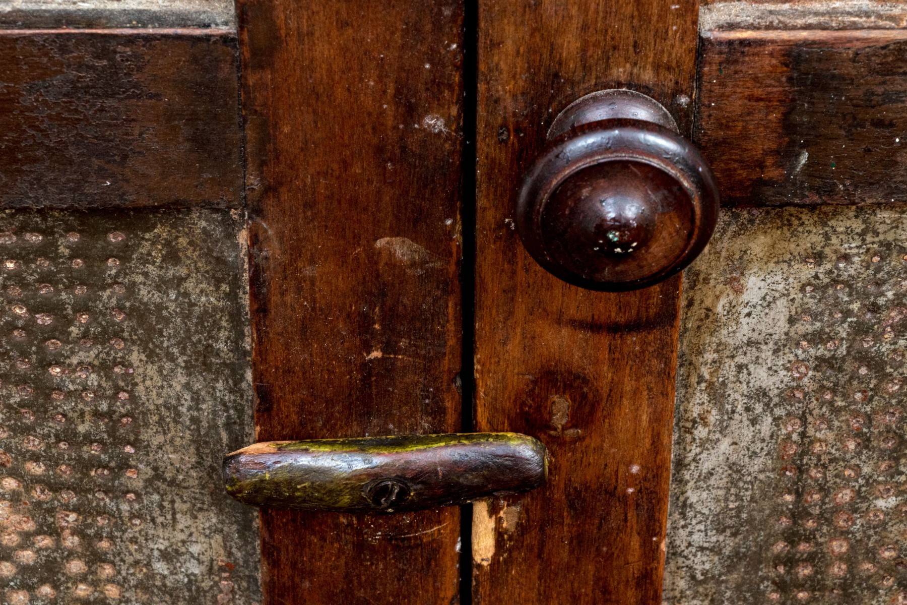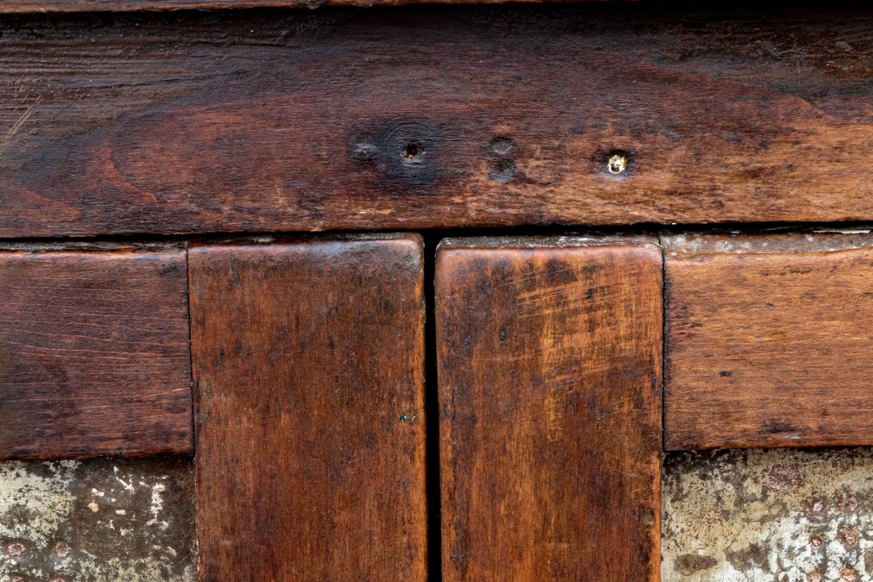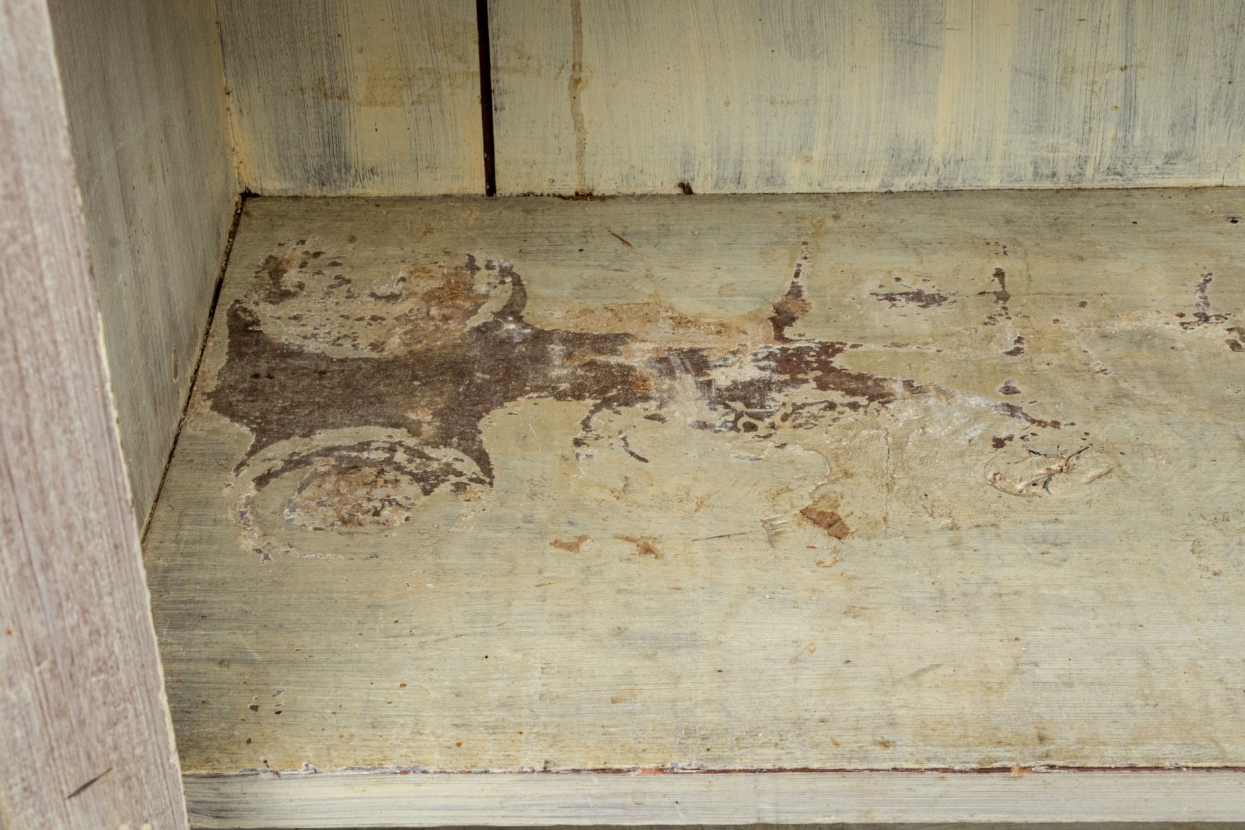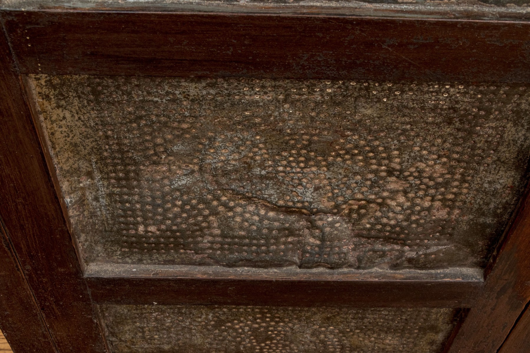 Presents well overall with wear commensurate with age and use adding to the rustic charm of the piece. Oxidation to the metallic panels and wear to the finish of the frame with nics and small areas of loss. Please review the pictures as they are a part of the condition report.