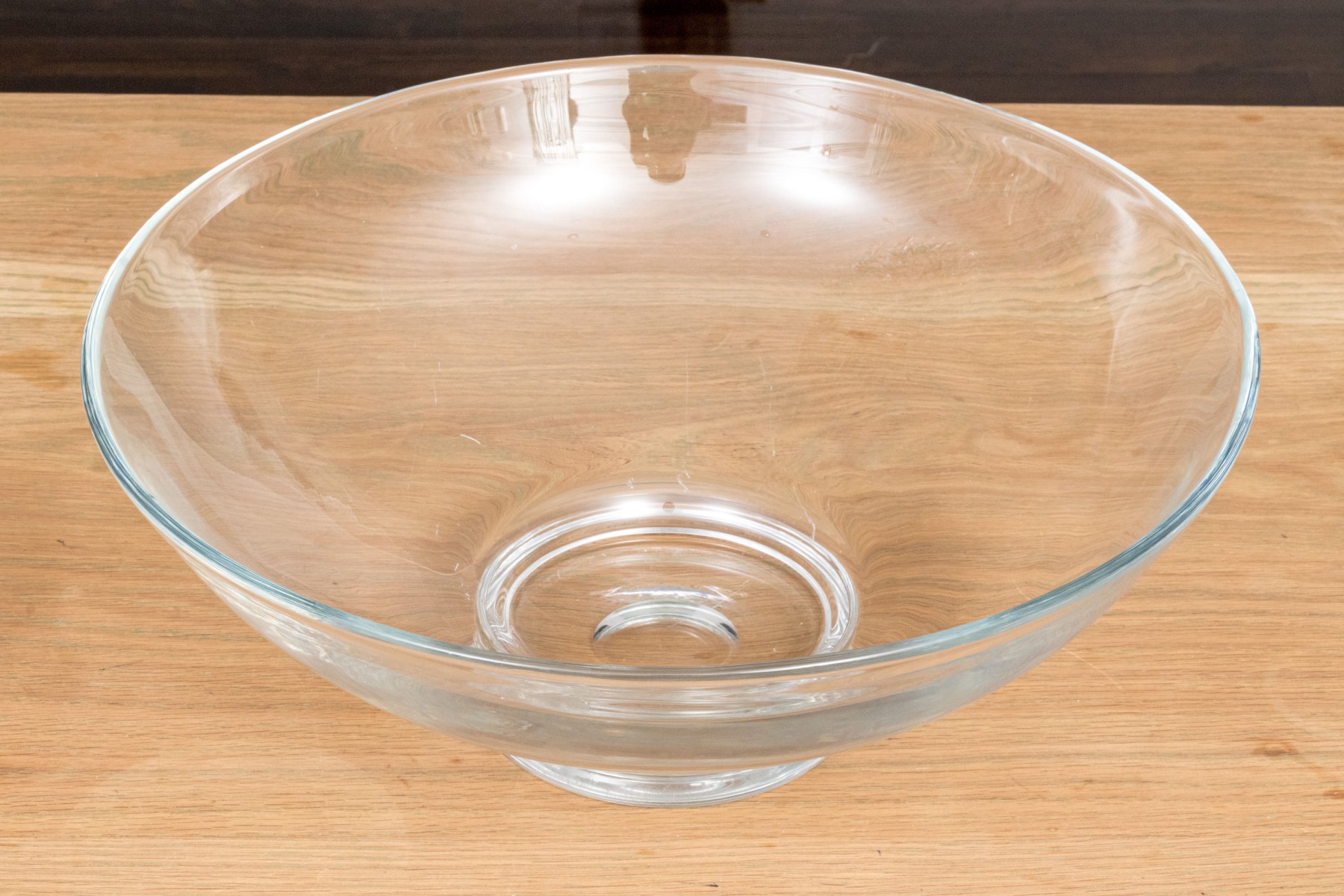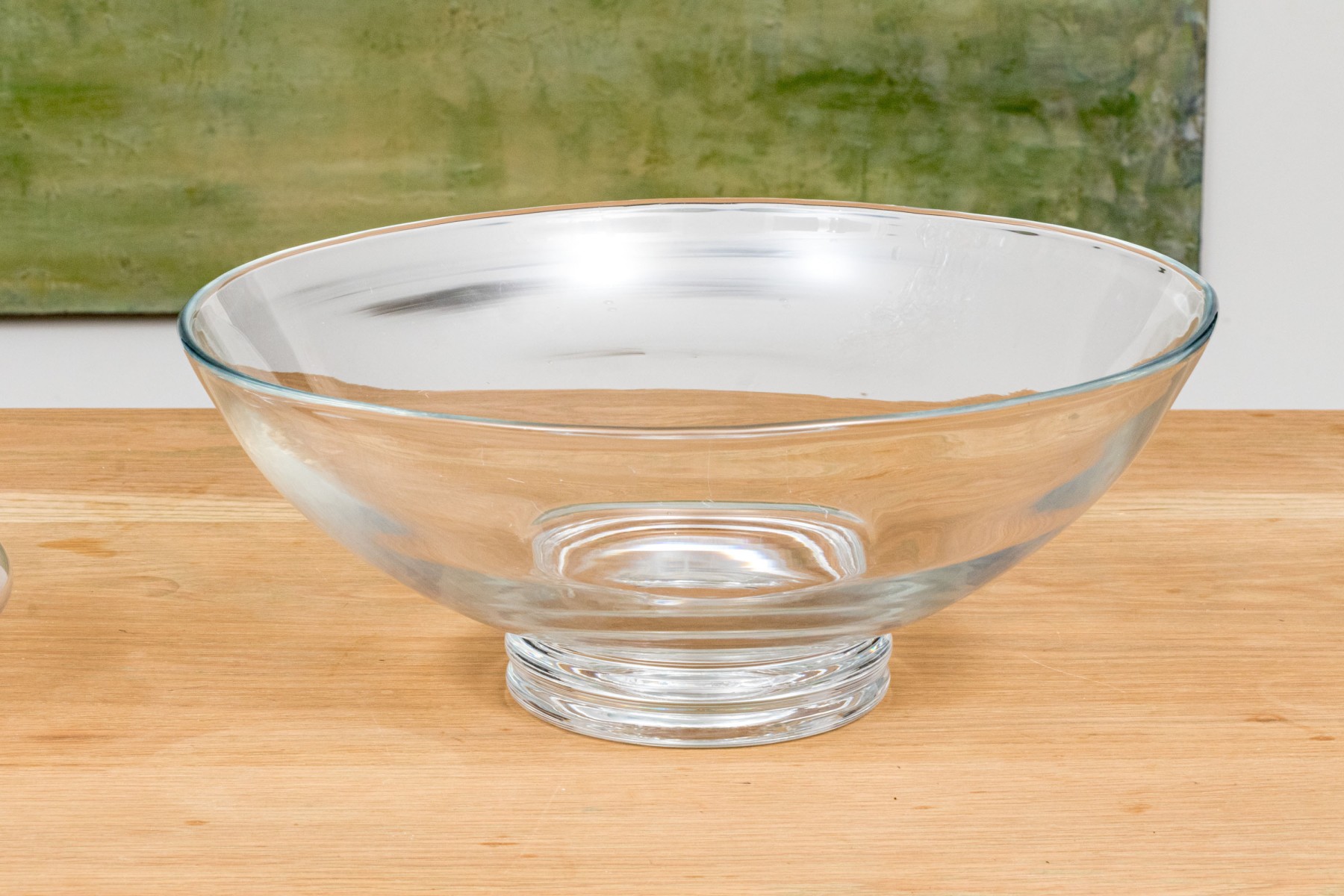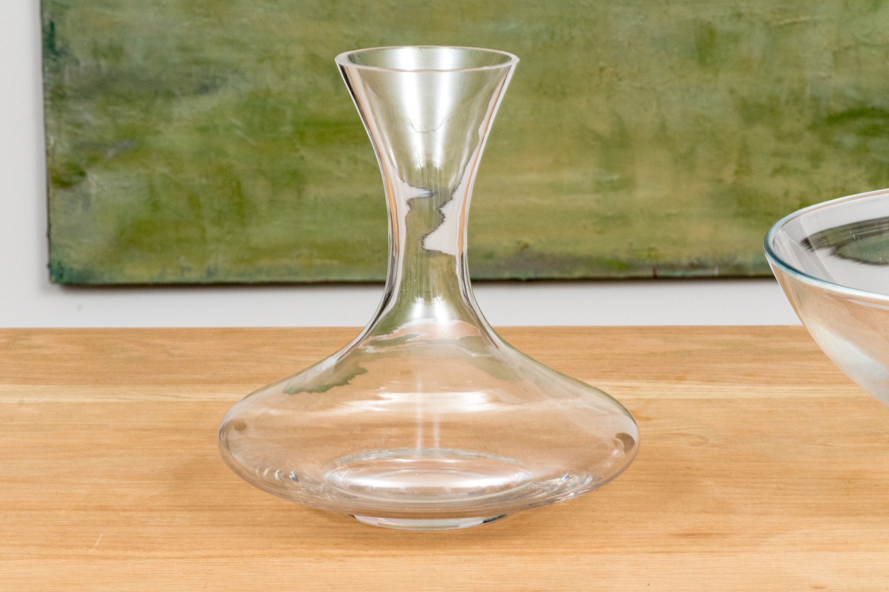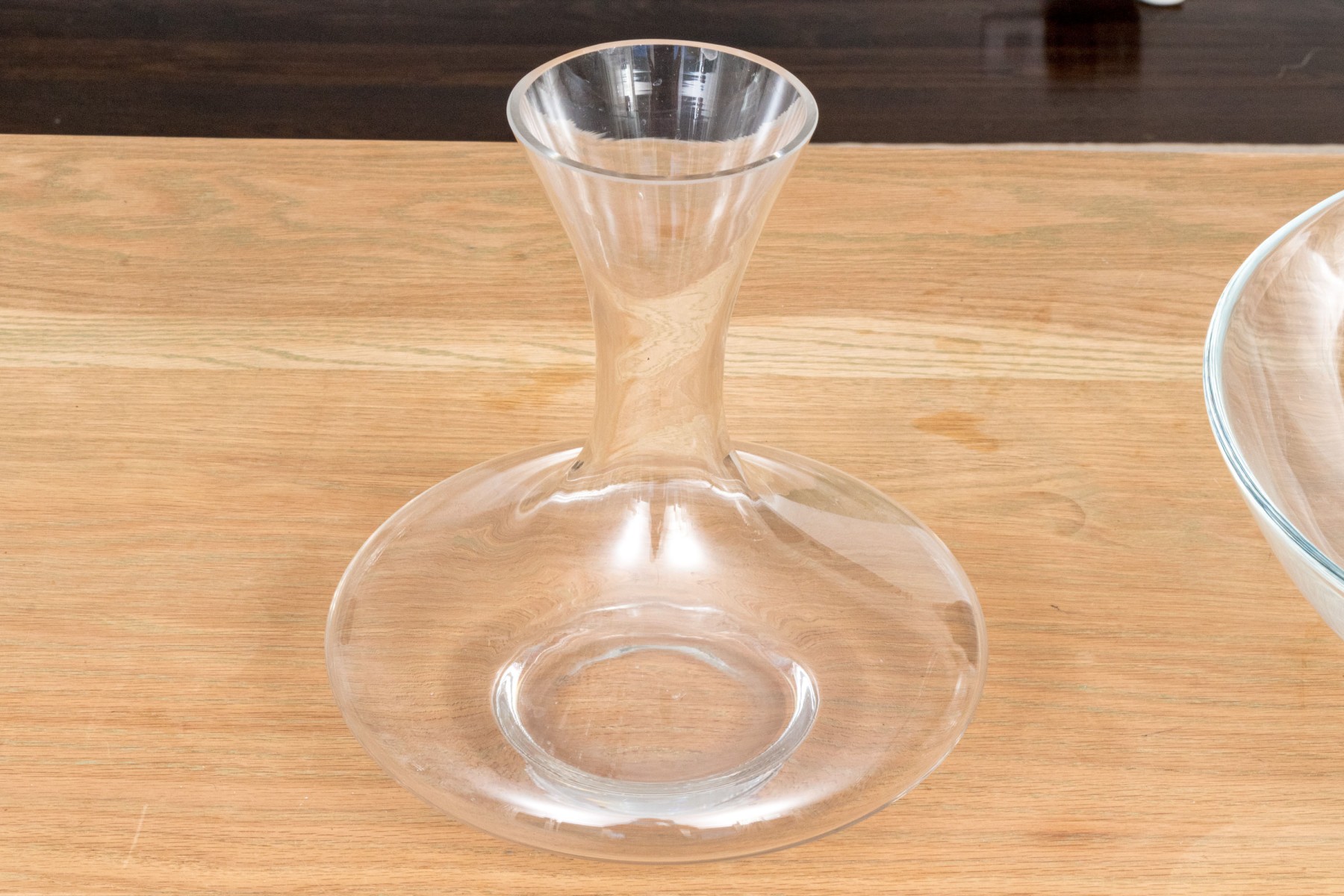 Includes the footed glass centerpiece bowl together with a lovely hand blown glass decanter.
