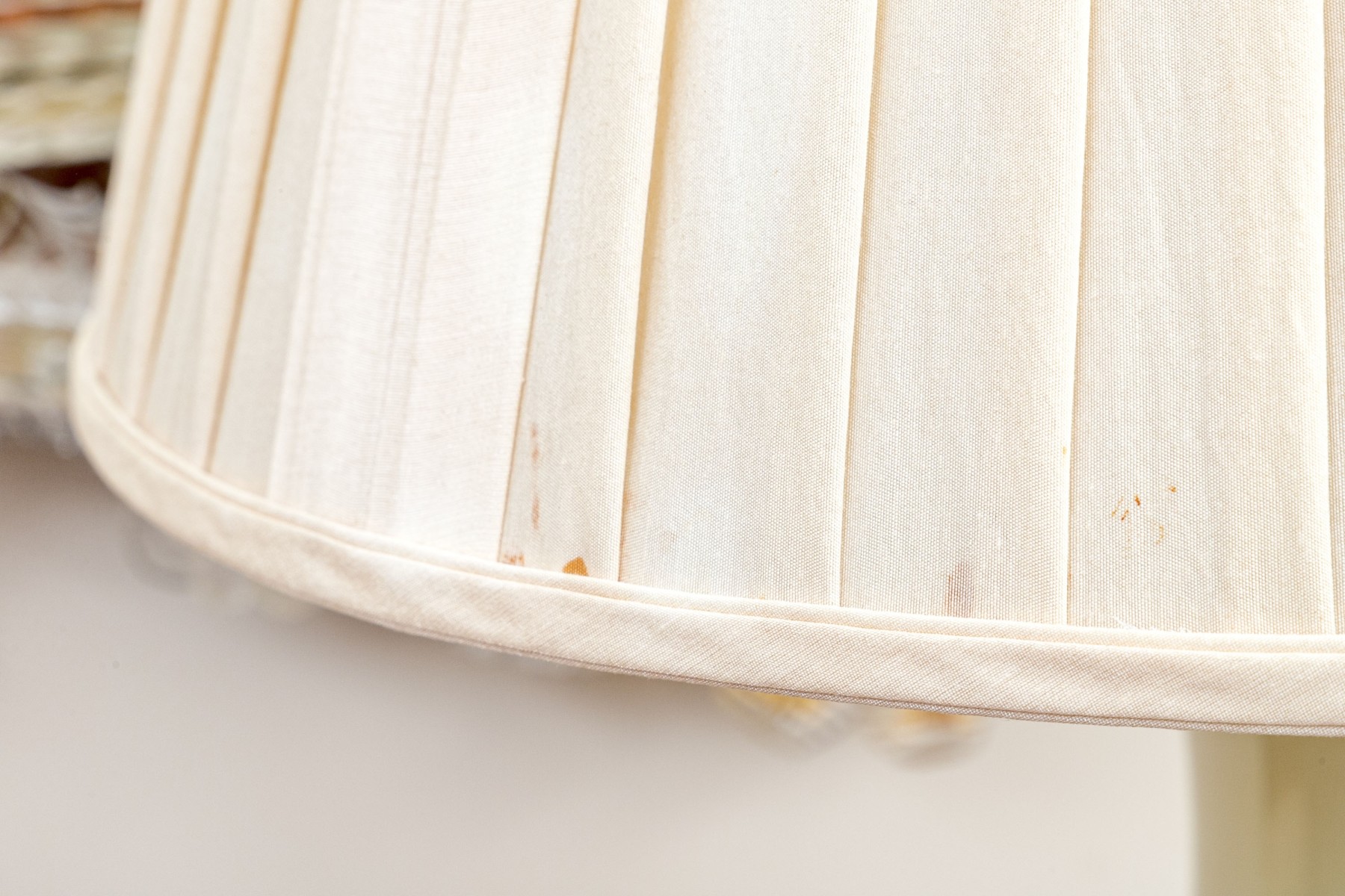 There are stains to the shade but overall the lamp presents well. Untested and unknown working condition.