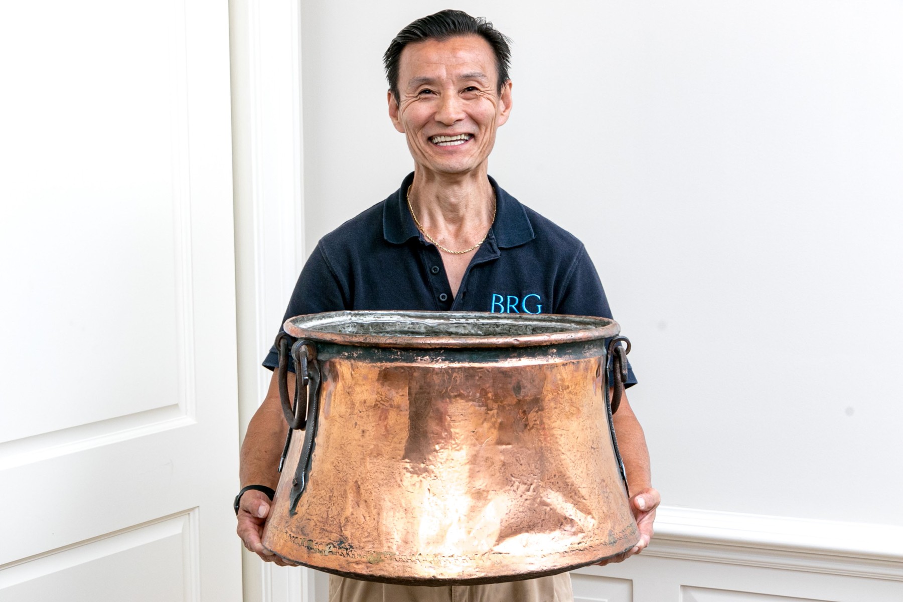 Fabulous Large And Rustic Twin-Handled Copper Cauldron #337951. Black Rock Galleries provides high end estate liquidation services through online estate auctions and a 50,000 sq ft designer showroom. estate liquidator, estate sale, online auction, antiques, fine art, liquidation, clean outs, auction, consignment, interior design, fine jewelry, collectibles, appraisals, estate appraisals, estate services, decor, furniture, furniture consignment, antique center, consignment shop. We offer appraisal services and specialize in fine art, jewelry, antiques and decorative arts. Sell with us. Black Rock Galleries is the tri-state's largest estate liquidator serving New England and the greater New York City area. We are the trusted source for expert appraisals, auction services, estate sales, and consignments. Black Rock Galleries is the east coast's largest and most trusted estate liquidator, with locations in Connecticut, greater Boston, MA and Raleigh, NC, Fairfield, Southport, Apex, TX. We are the best source for expert appraisals, auction services, estate sales and consignments. We have served thousands of families and estates with compassion, professionalism and expertise. BRG works with attorneys, executors, realtors and families to bring the greatest return on personal and estate property in the current market. Our unique combination of services make us the easy choice to get the job done in a timely and stress-free manner. We are with you from the initial consultation to the final clean out. Our house-built online auction software platform offers clients a dynamic approach to liquidating their personal property. This venue is most successful in bringing the best return with the least amount of disruption for our clients. See our services page for a complete description of this offering. Fabulous Large And Rustic Twin-Handled Copper Cauldron #337951
