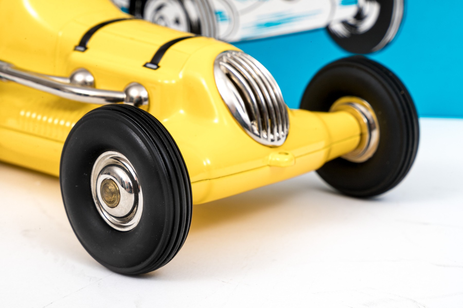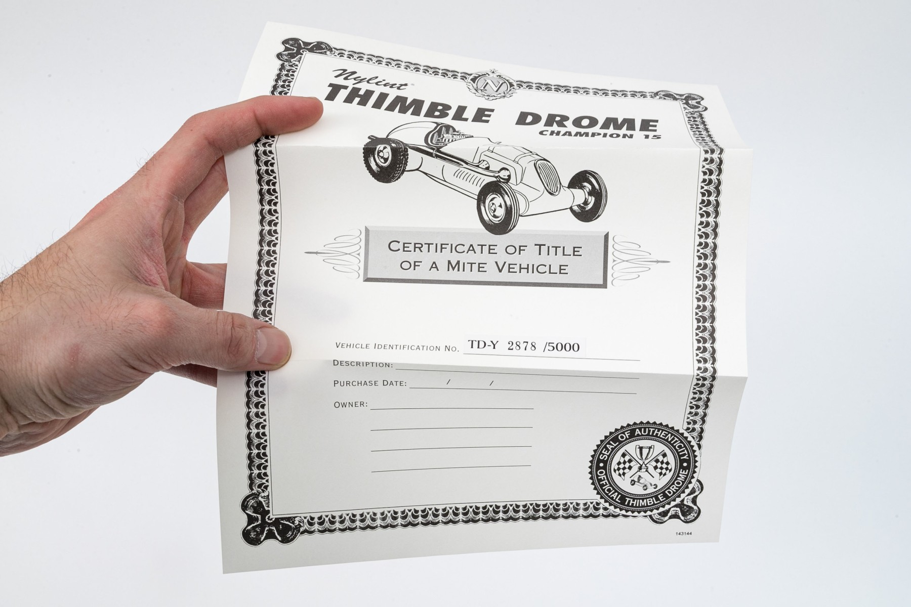 Fabulous mint Nylint thimble drome, Champion,, yellow, boxed