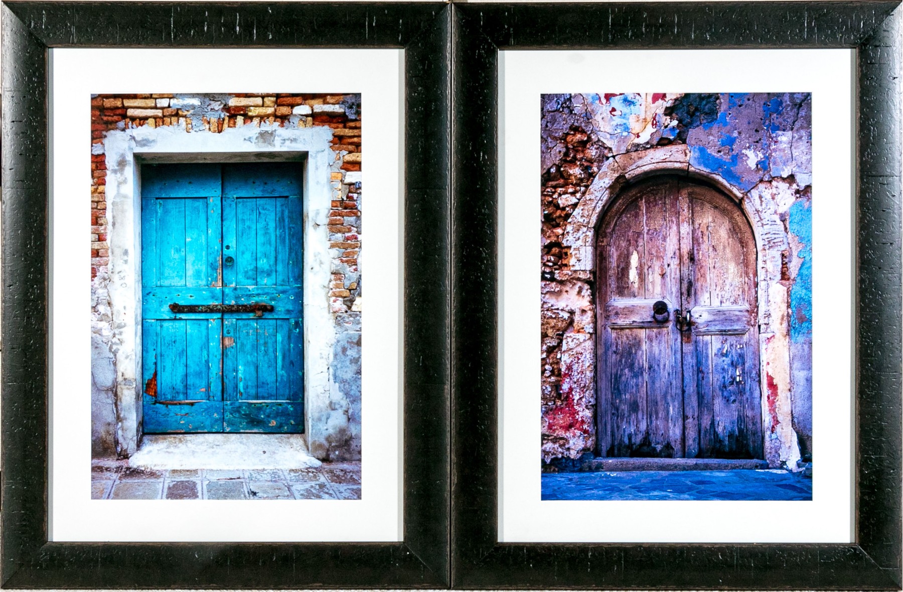 Both are vibrant and colorful depicting doorwells and the surrounding building facade.