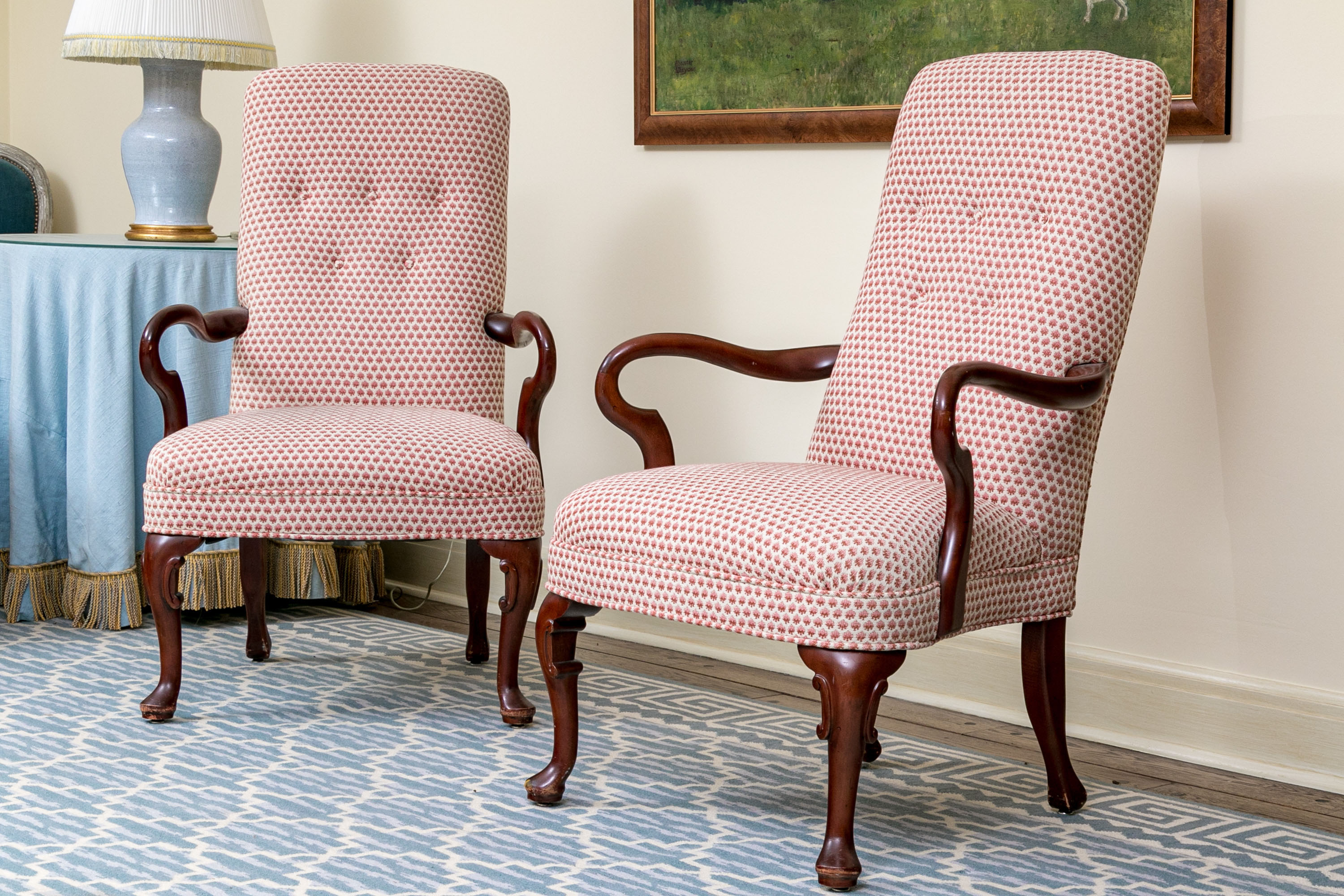 Fabulous Pair Of Mahogany Goose Neck Upholstered Armchairs #290305. Black Rock Galleries provides high end estate liquidation services through online estate auctions and a 50,000 sq ft designer showroom. estate liquidator, estate sale, online auction, antiques, fine art, liquidation, clean outs, auction, consignment, interior design, fine jewelry, collectibles, appraisals, estate appraisals, estate services, decor, furniture, furniture consignment, antique center, consignment shop. We offer appraisal services and specialize in fine art, jewelry, antiques and decorative arts. Sell with us. Black Rock Galleries is the tri-state's largest estate liquidator serving New England and the greater New York City area. We are the trusted source for expert appraisals, auction services, estate sales, and consignments. Black Rock Galleries is the east coast's largest and most trusted estate liquidator, with locations in Connecticut, greater Boston, MA and Raleigh, NC, Fairfield, Southport, Apex, TX. We are the best source for expert appraisals, auction services, estate sales and consignments. We have served thousands of families and estates with compassion, professionalism and expertise. BRG works with attorneys, executors, realtors and families to bring the greatest return on personal and estate property in the current market. Our unique combination of services make us the easy choice to get the job done in a timely and stress-free manner. We are with you from the initial consultation to the final clean out. Our house-built online auction software platform offers clients a dynamic approach to liquidating their personal property. This venue is most successful in bringing the best return with the least amount of disruption for our clients. See our services page for a complete description of this offering. Fabulous Pair Of Mahogany Goose Neck Upholstered Armchairs #290305