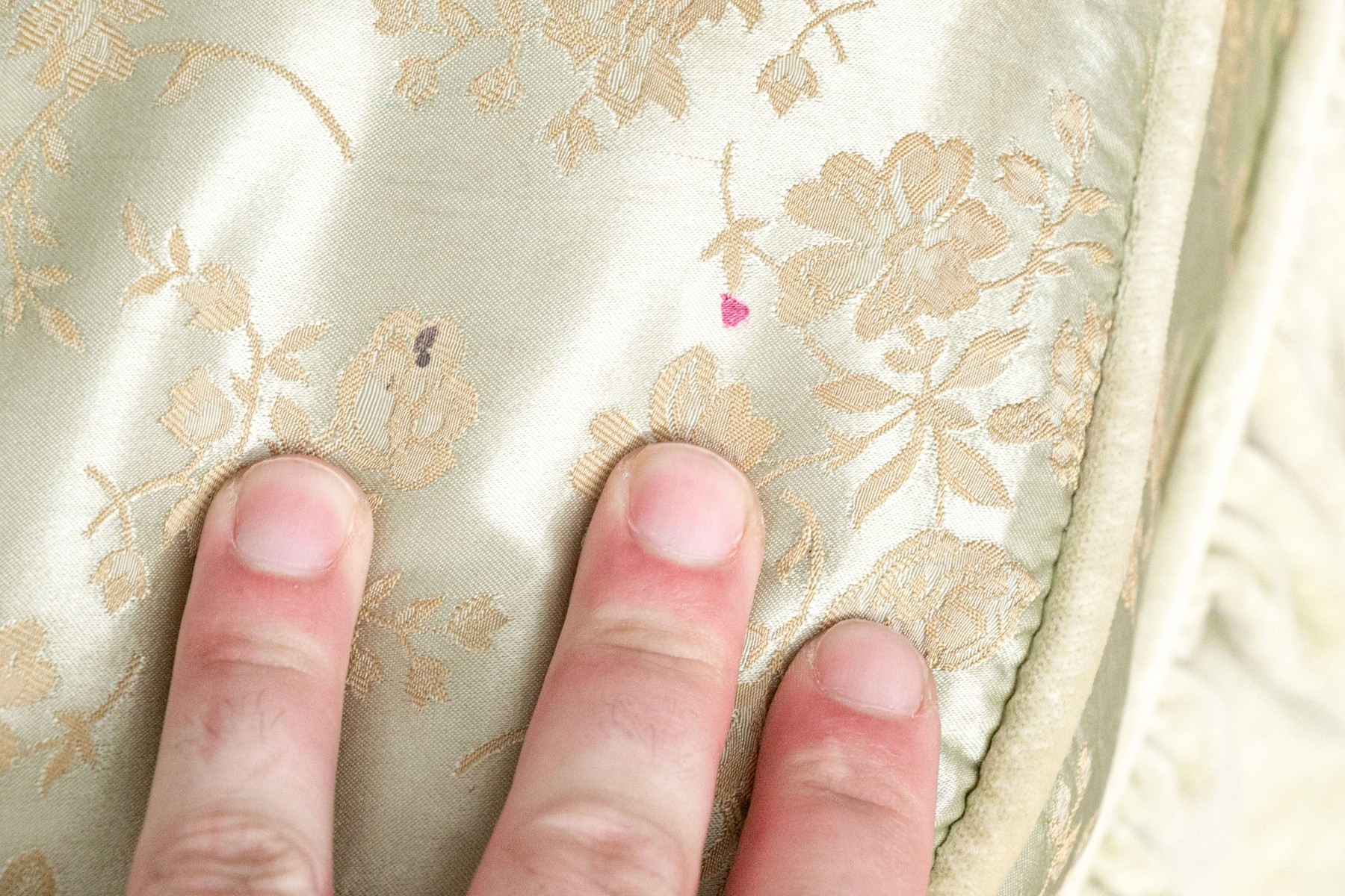 Condition: Fair; white muslin stained, slip cover stained and discolored but easily repairable