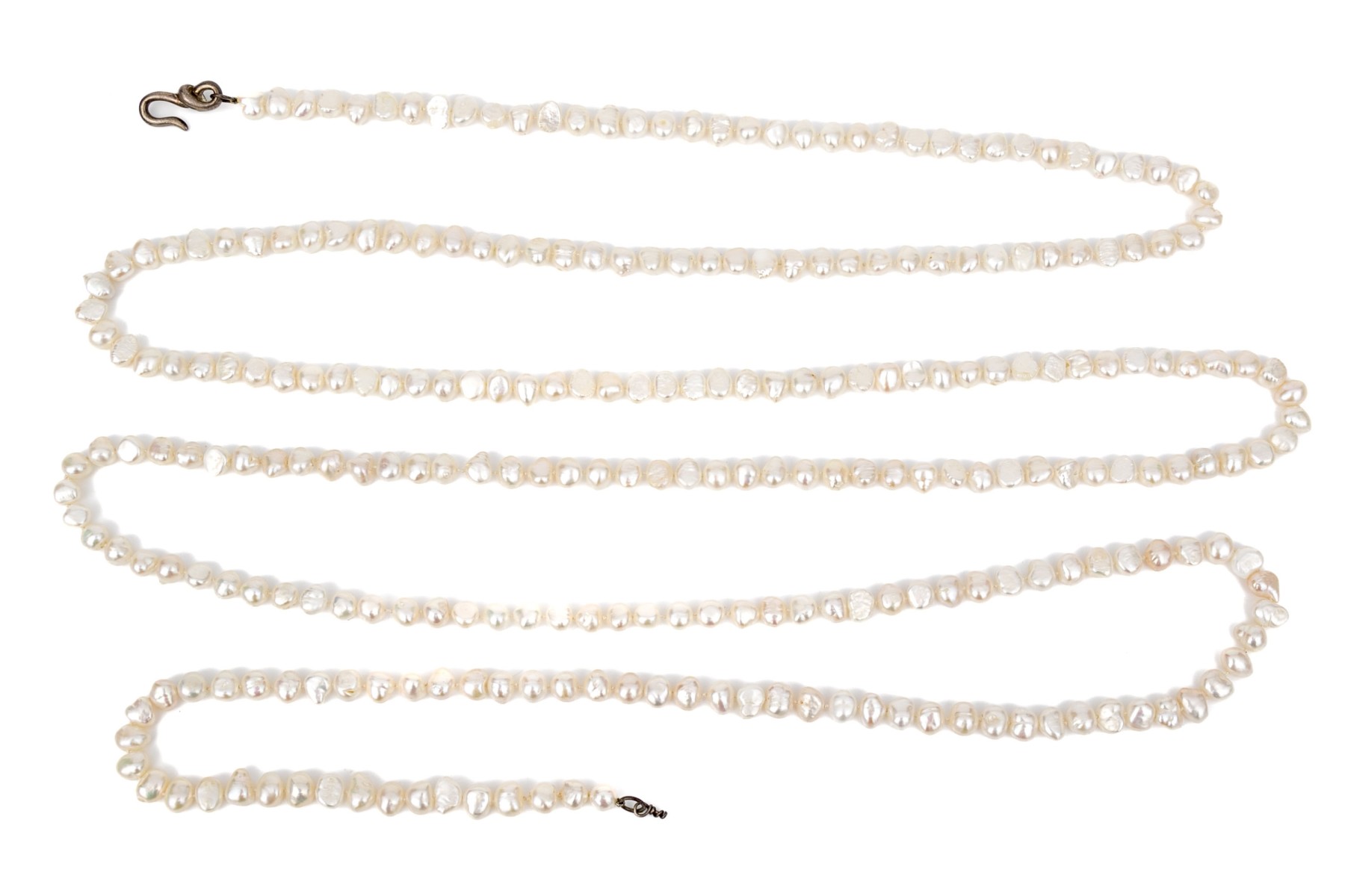 Fabulous rope length cultured freshwater pearl 82" long necklace, finished with a sterling shepherds hook style clasp