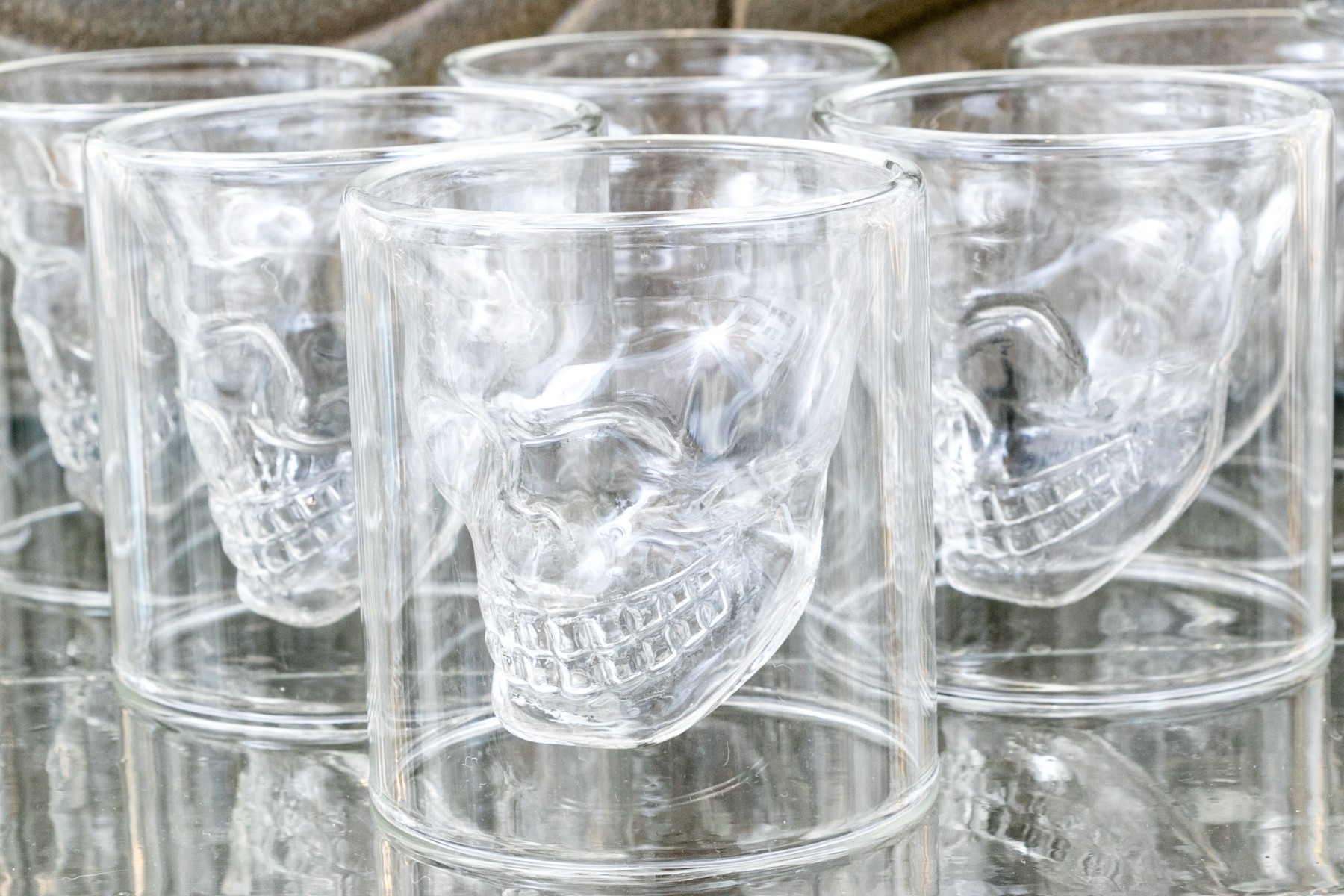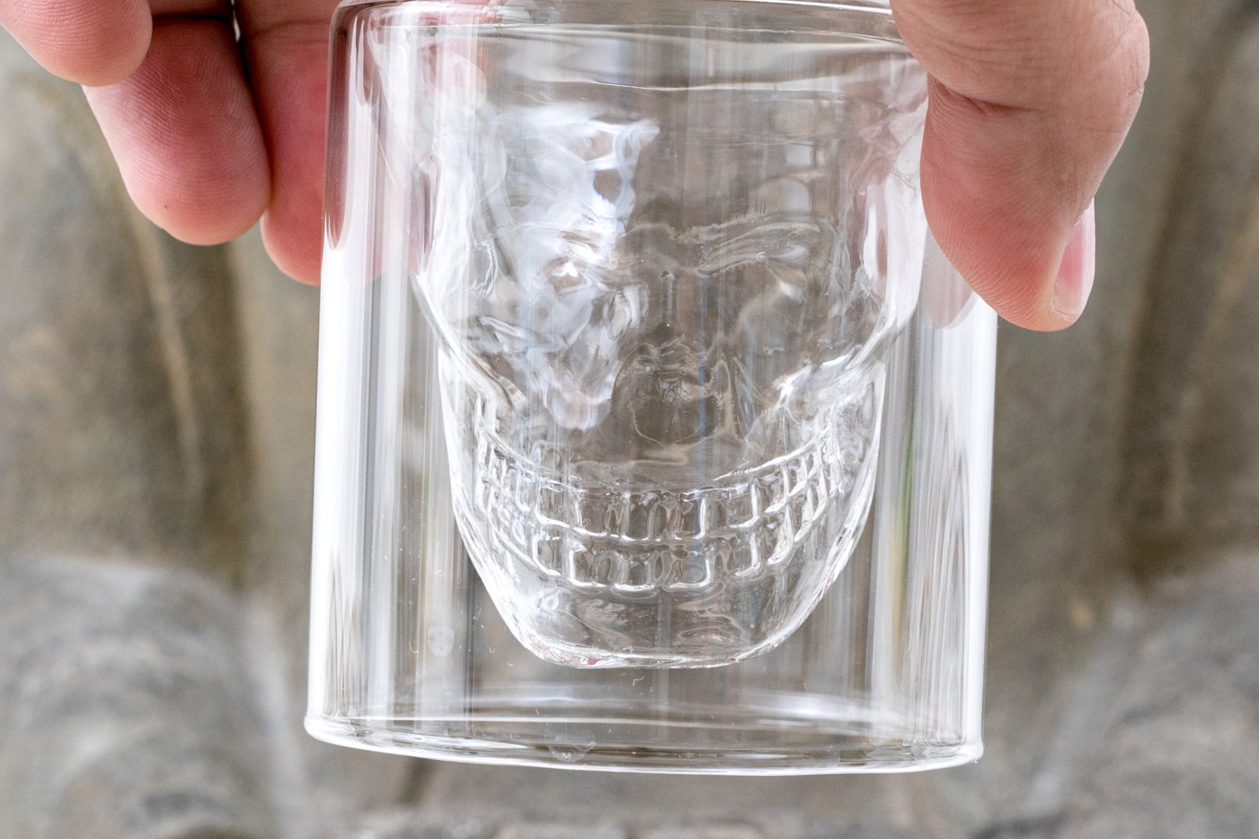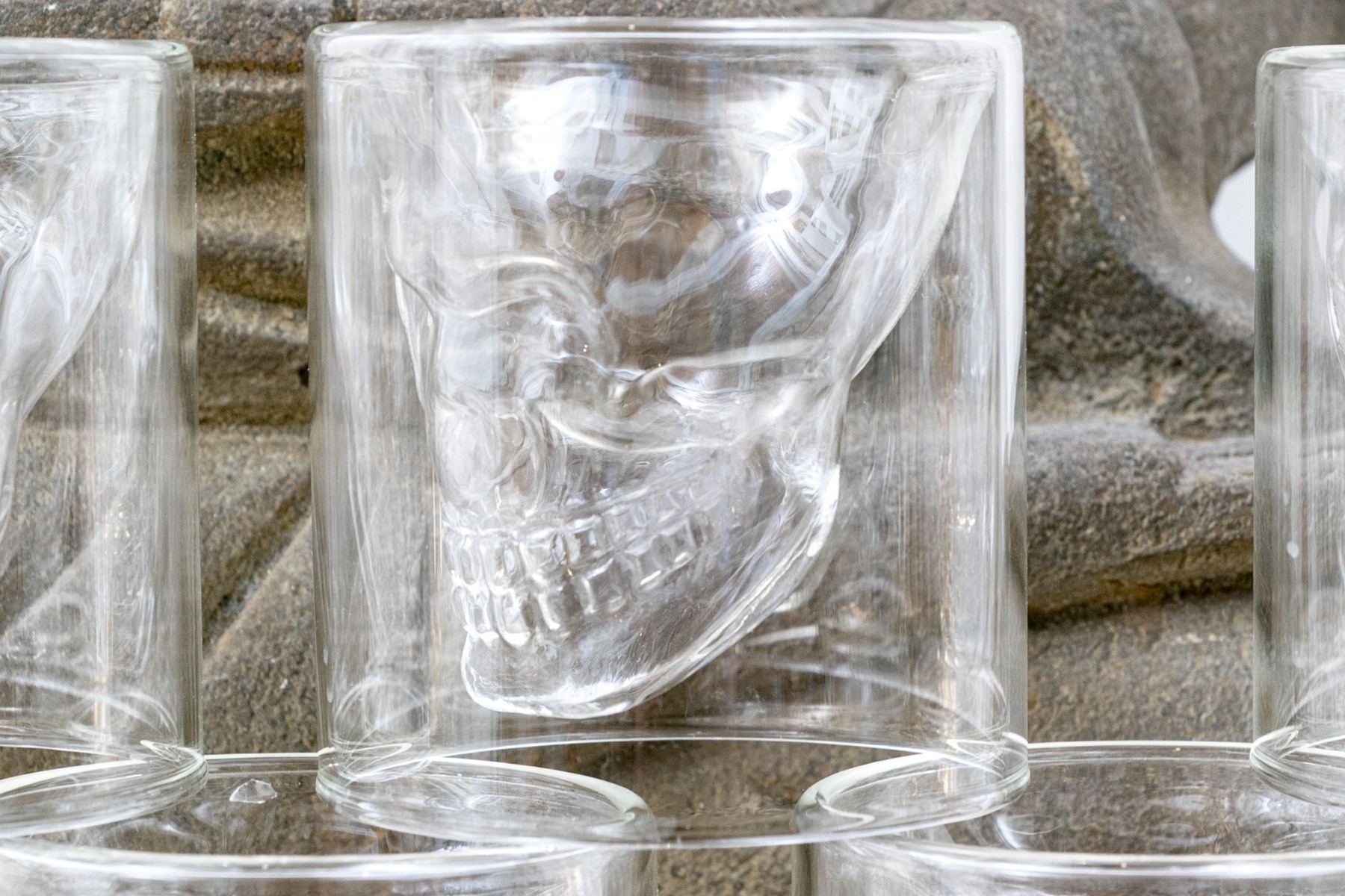 The interior space for liquid when drinking is formed as a skull which appears to float when used.