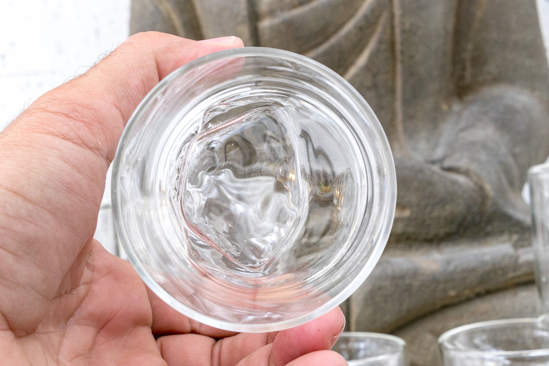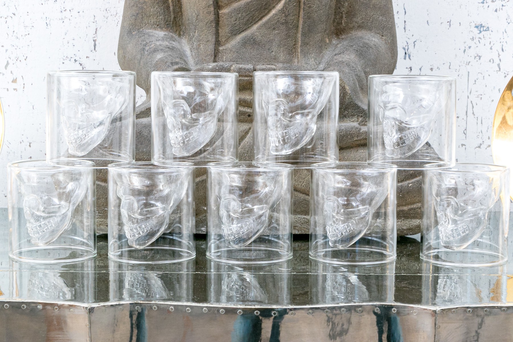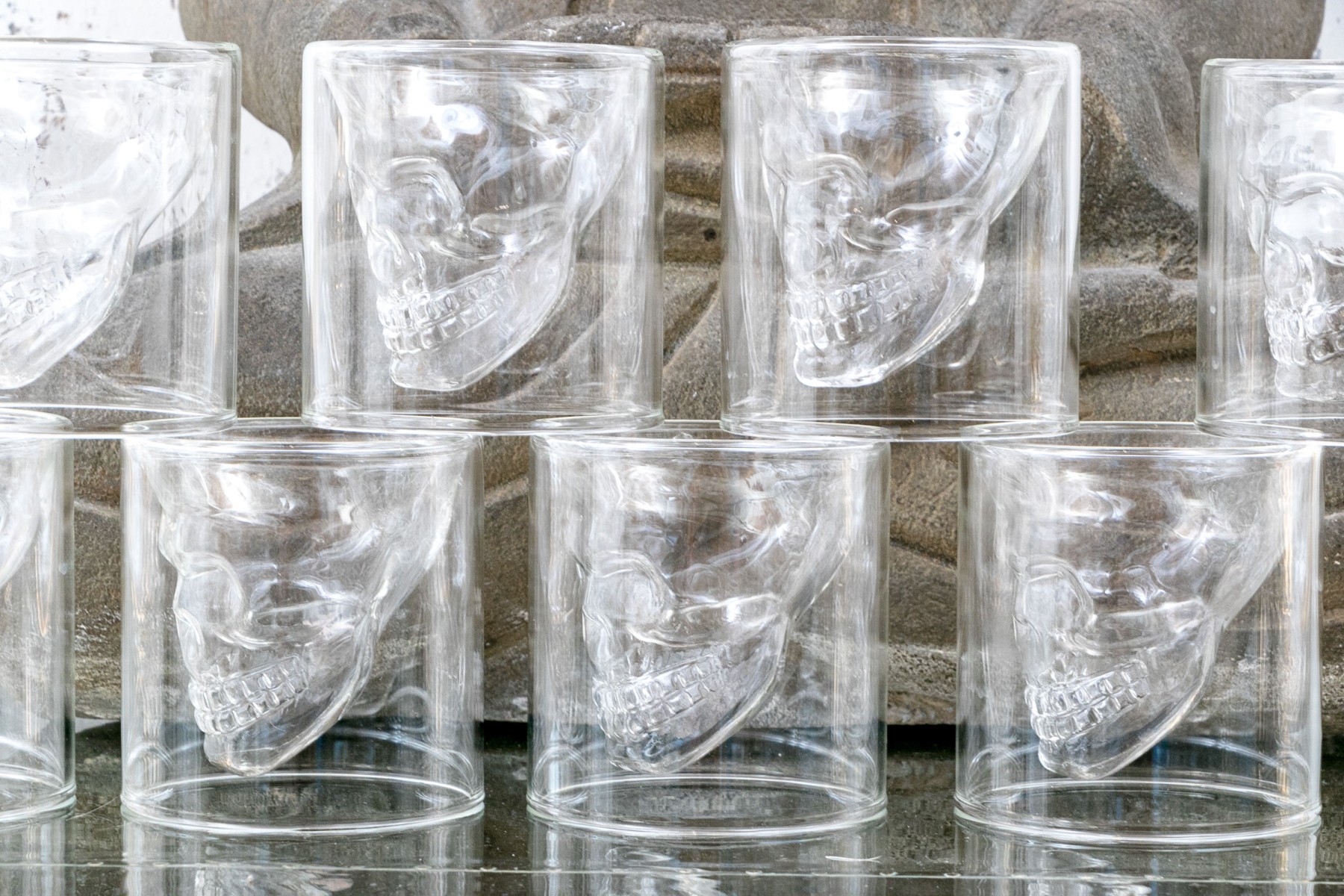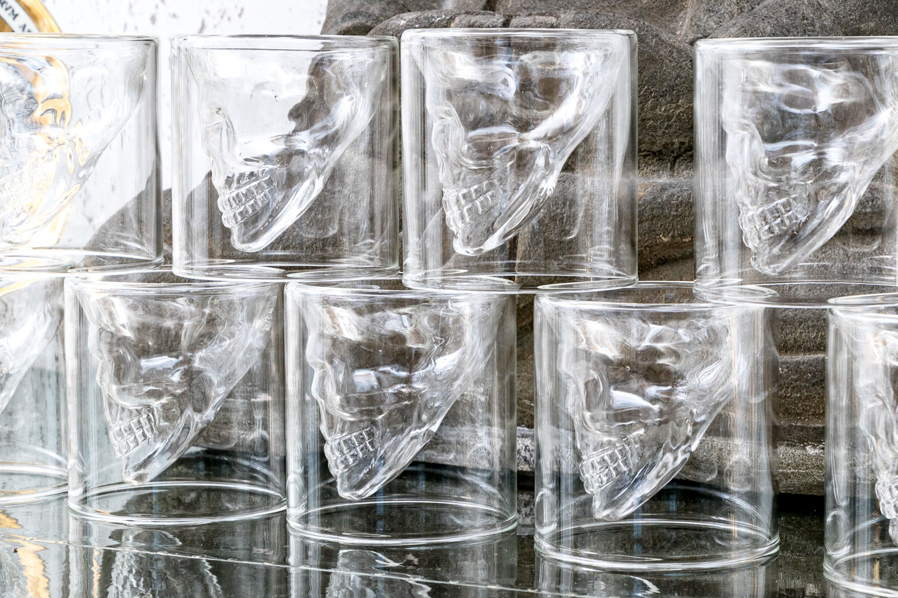 The interior space for liquid when drinking is formed as a skull which appears to float when used.