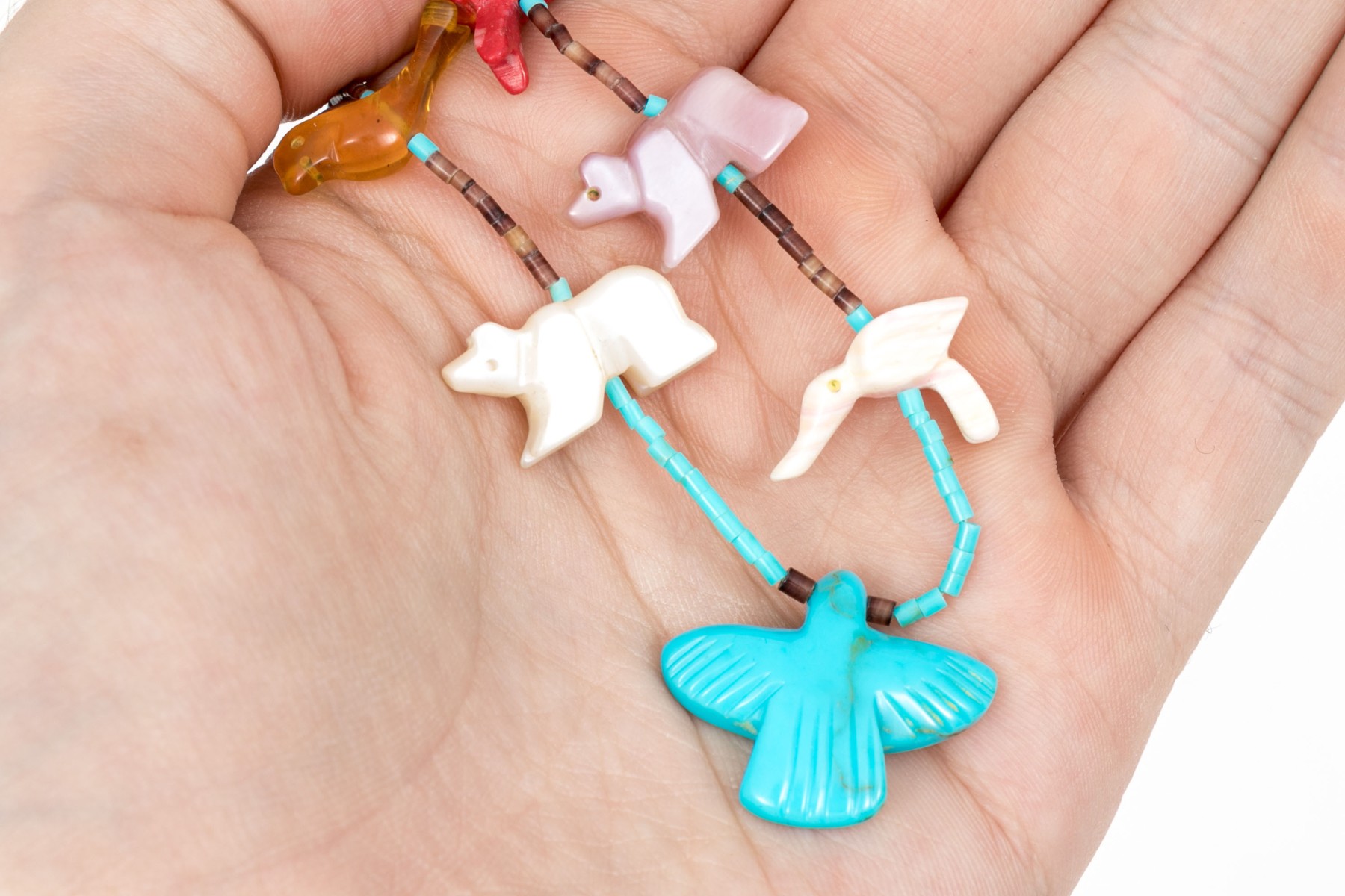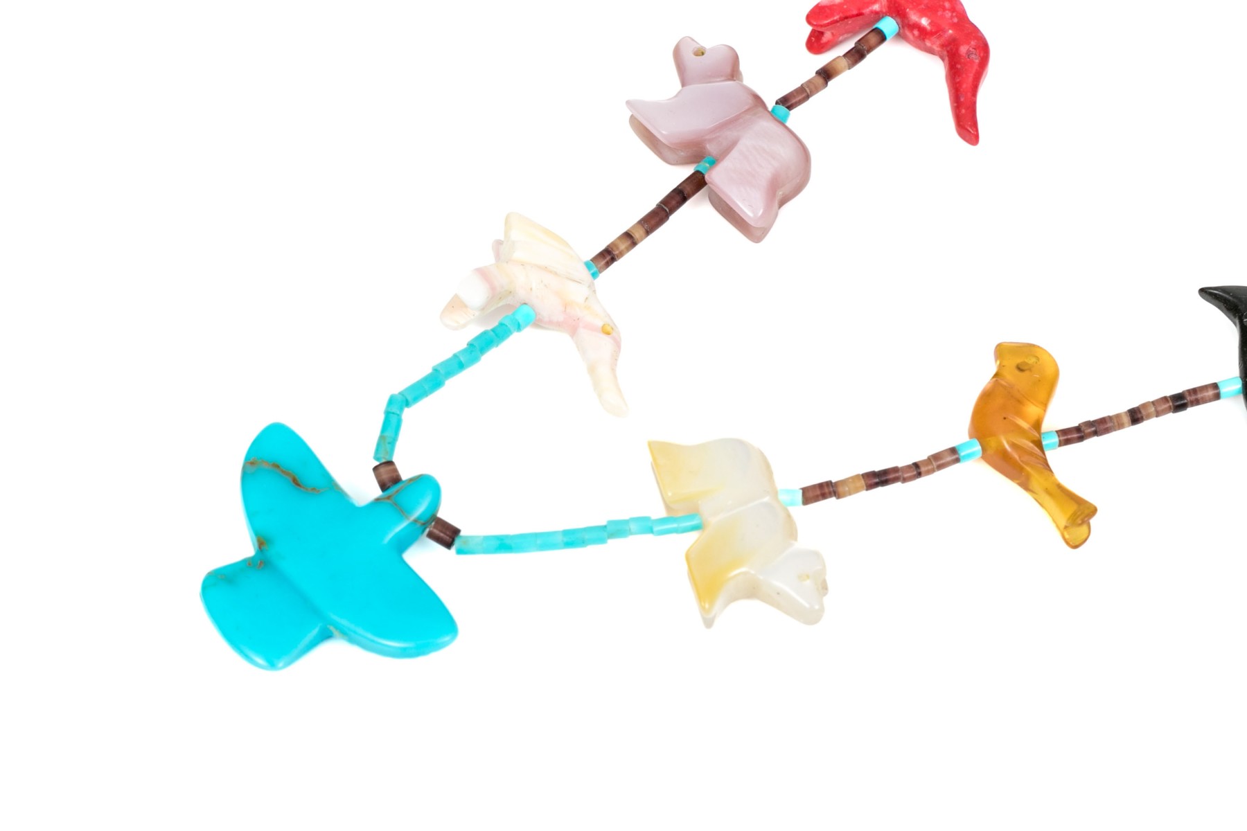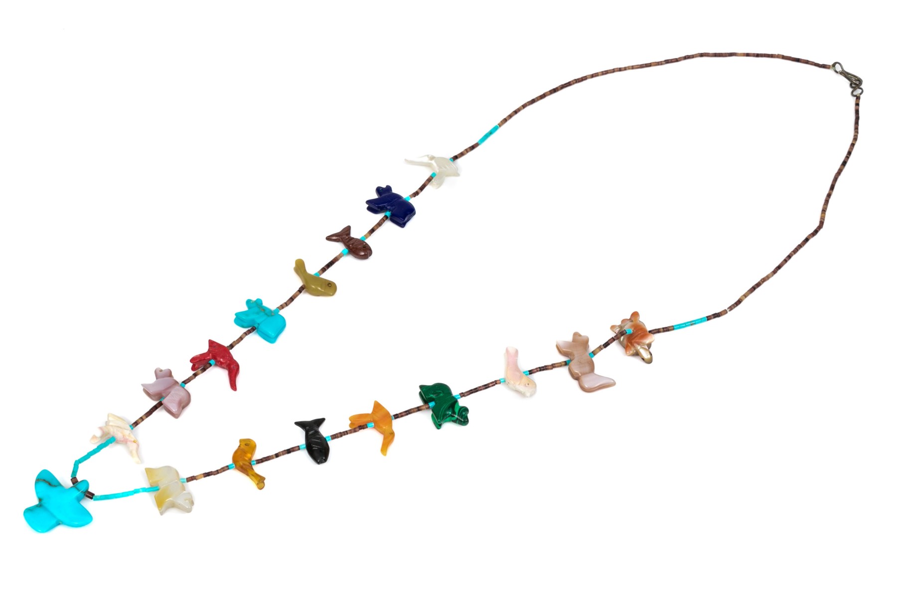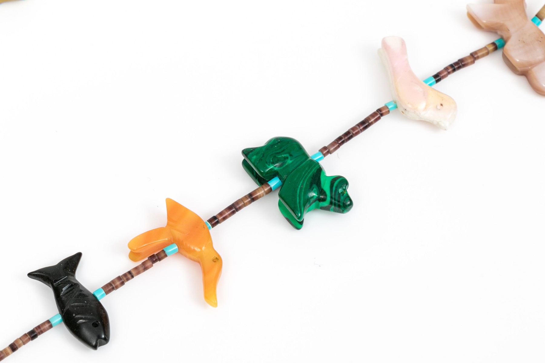 Fabulous silver and carved stone fetish necklace, finished with shepherds hook style clasp