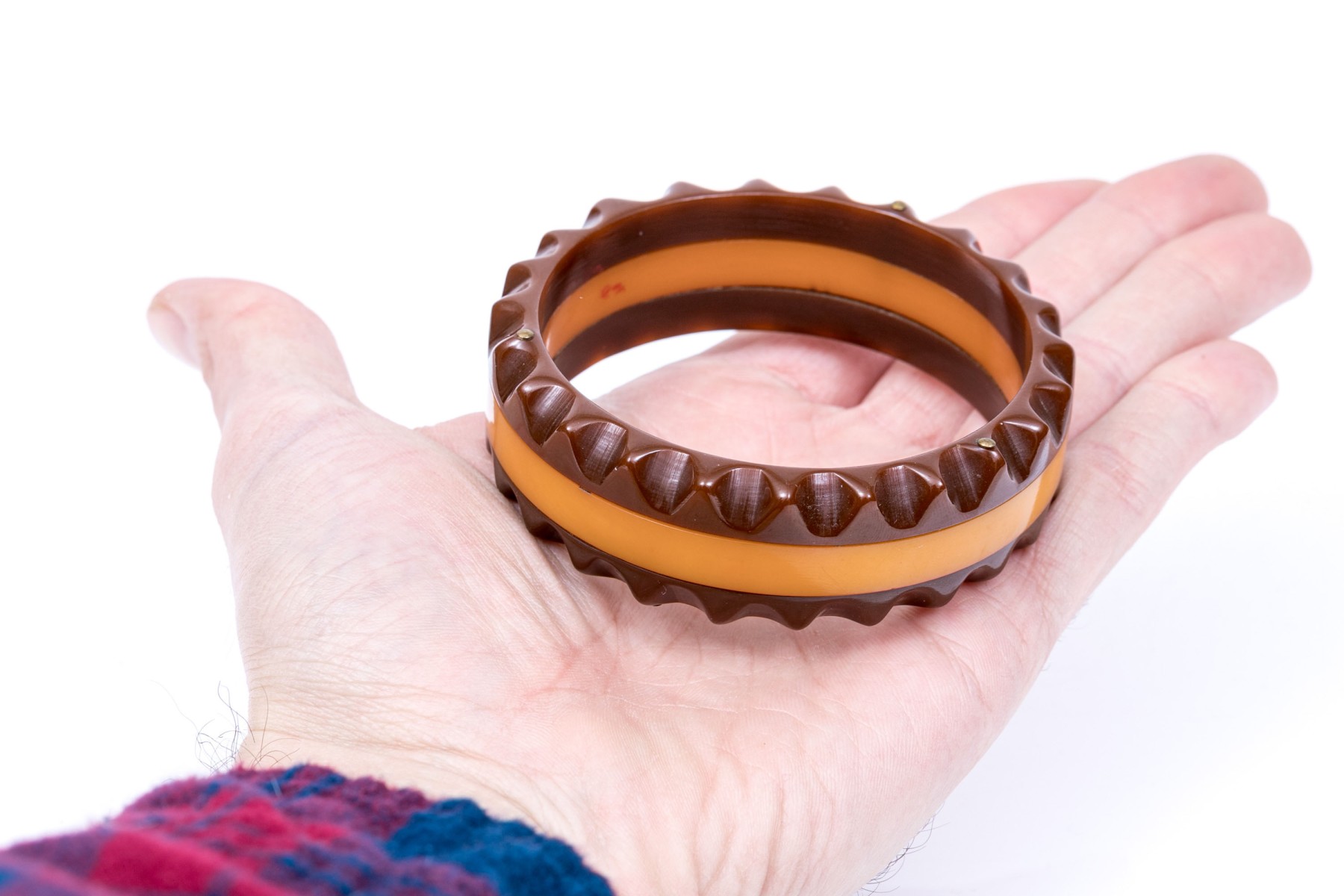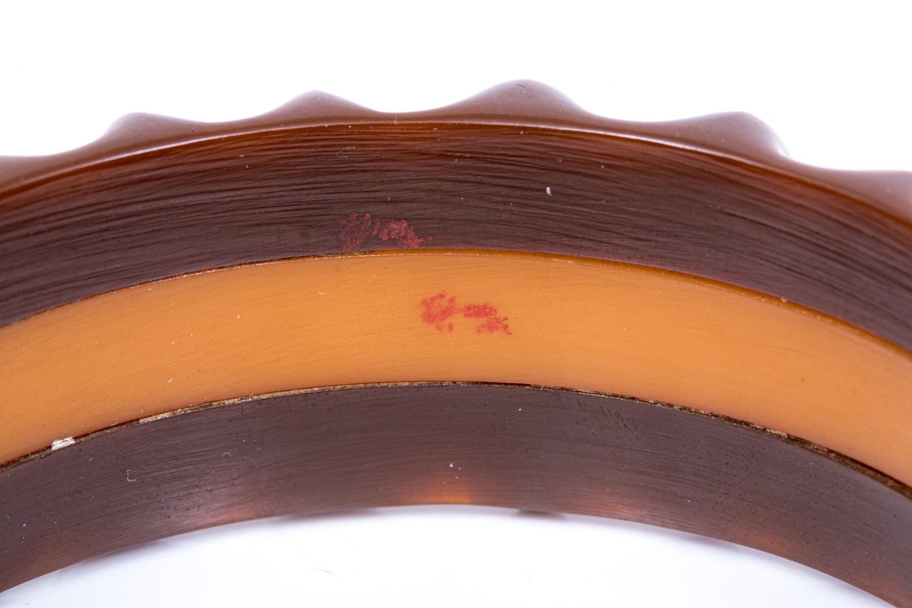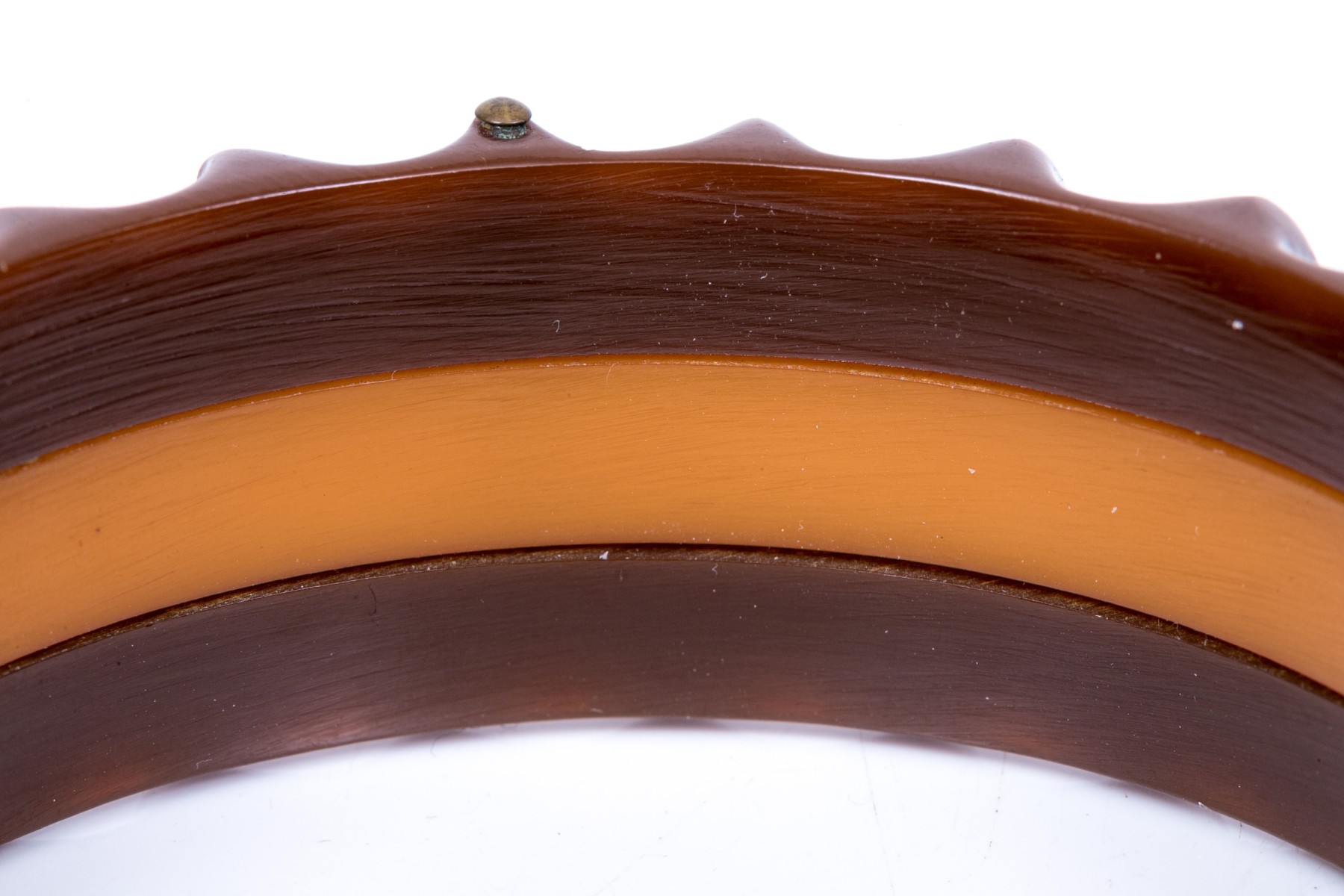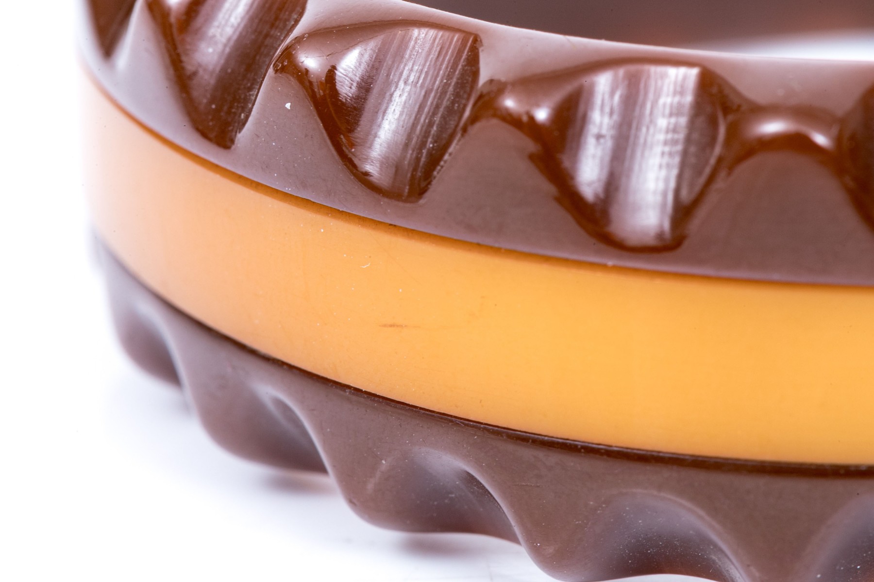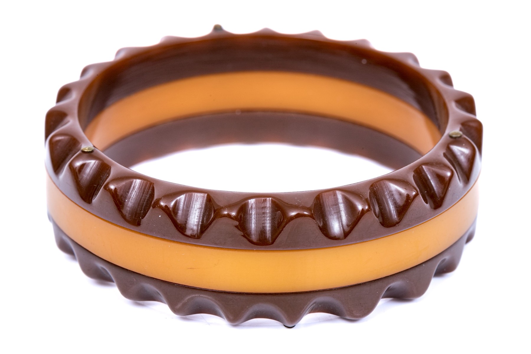 Fabulous vintage brown and yellow striped scalloped edge bakelite slip on bangle