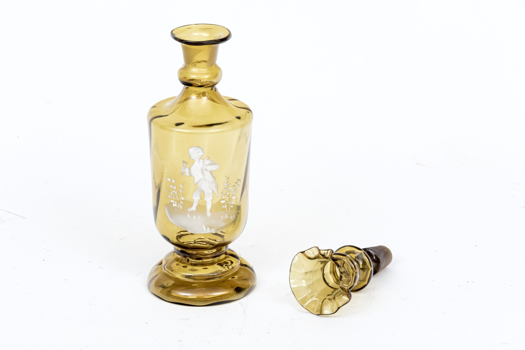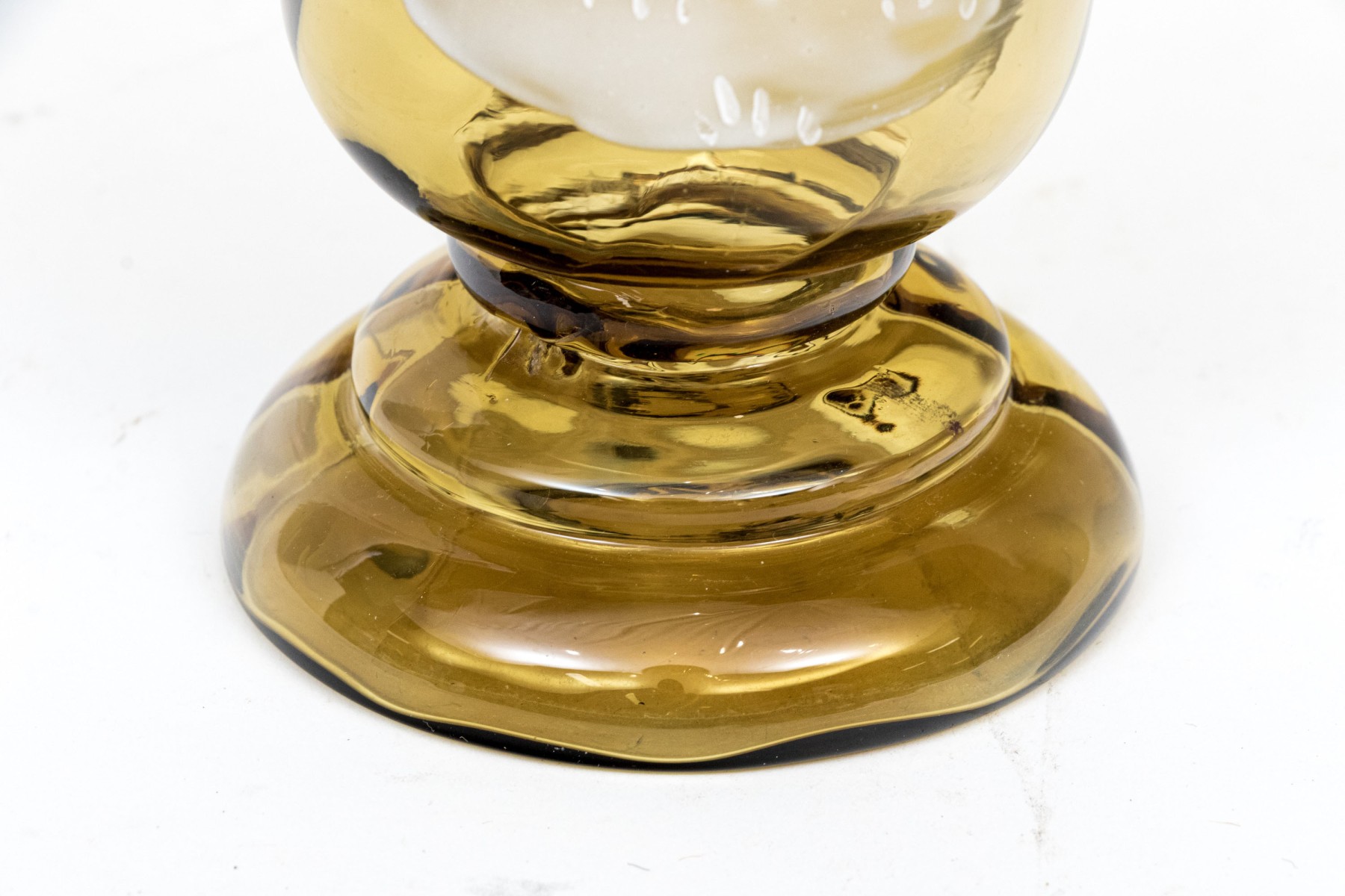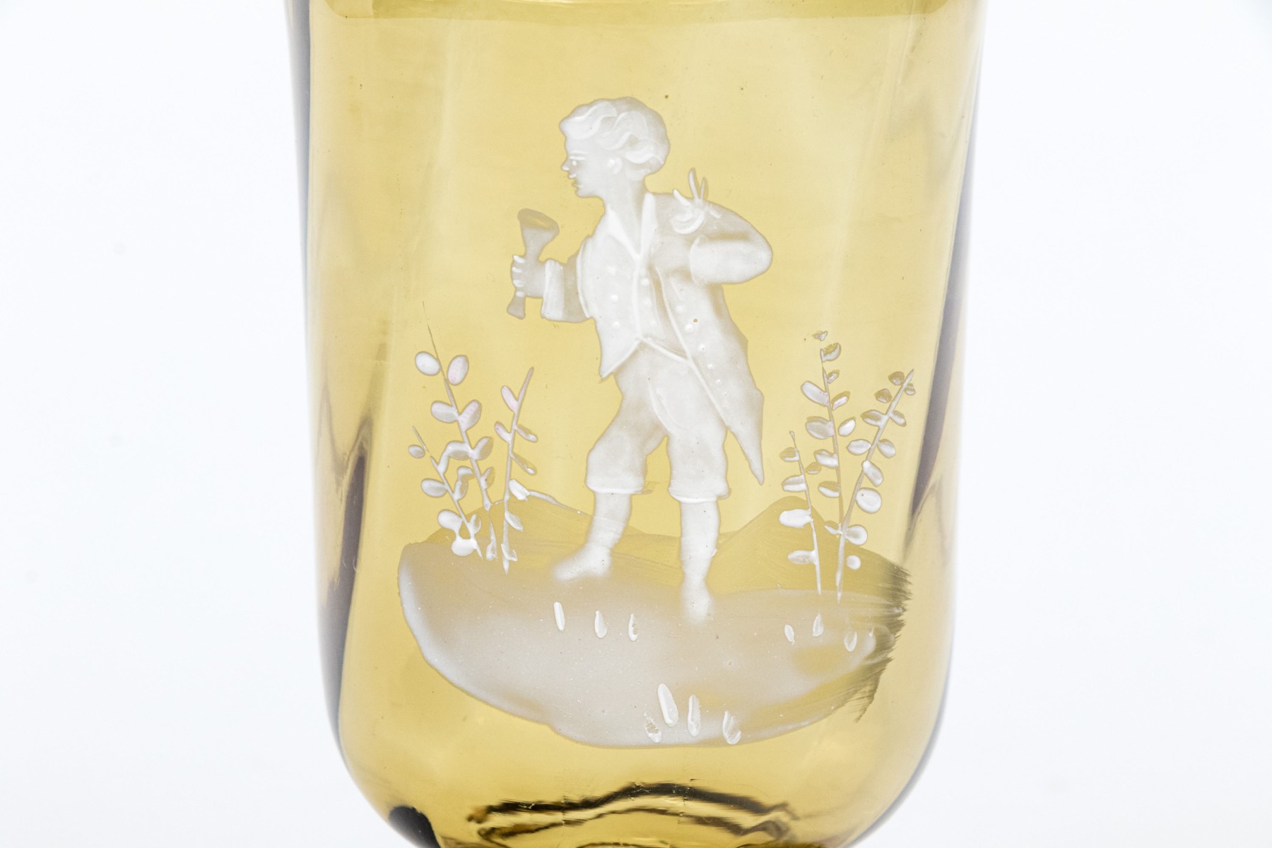 The body of the glass vase with pate sur pate style raised figural decoration depicting a boy in the landscape holding a glass.
