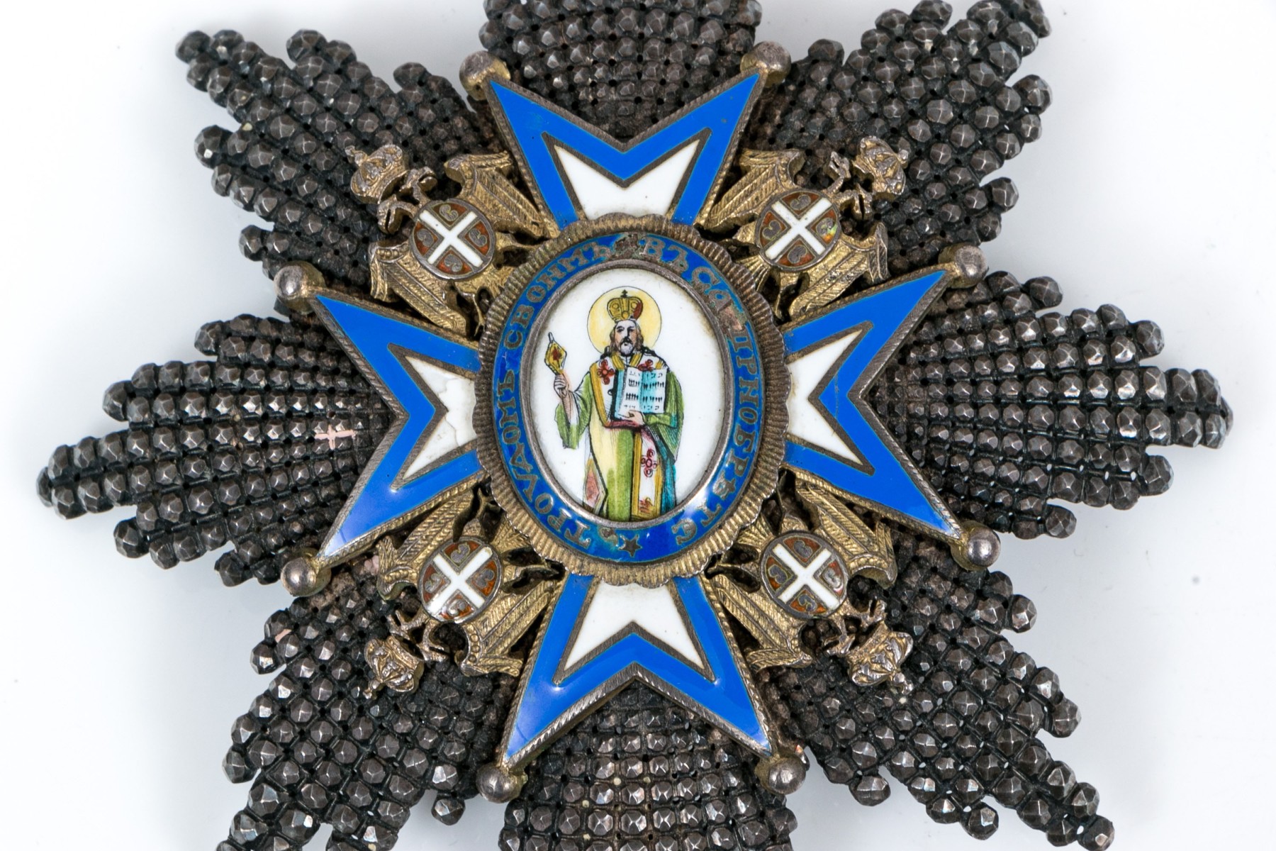 The state order was awarded to nationals and foreigners for meritorious achievements in the field of religion, education, science and the arts as well as for social and relief work. It was abolished in 1945 with the proclamation of the People’s Federal Republic of Yugoslavia and the end of the monarchy, while continuing as a dynastic order, with appointments currently made by Alexander, Crown Prince of Yugoslavia.