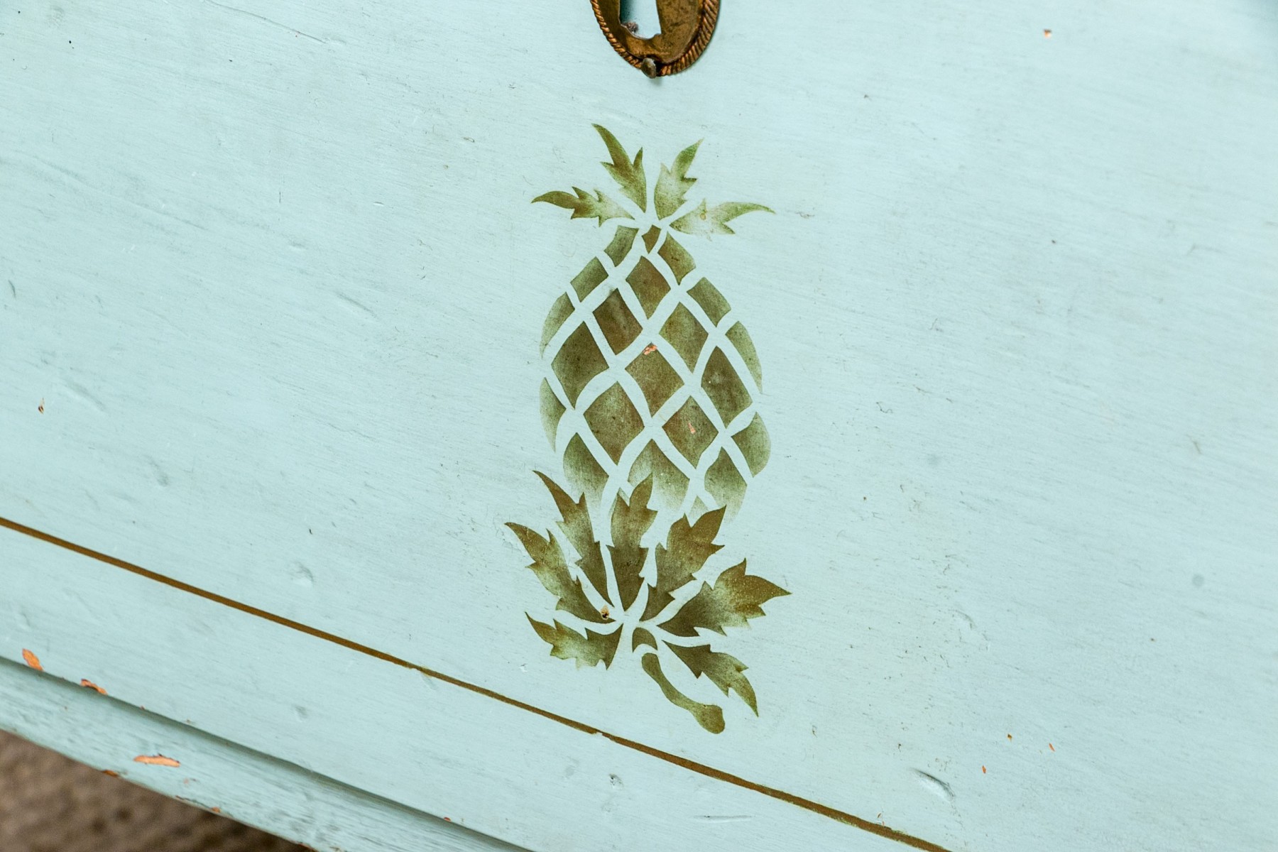 Nicely paint finished in a lovely blue hued with a decorative pineapple.
