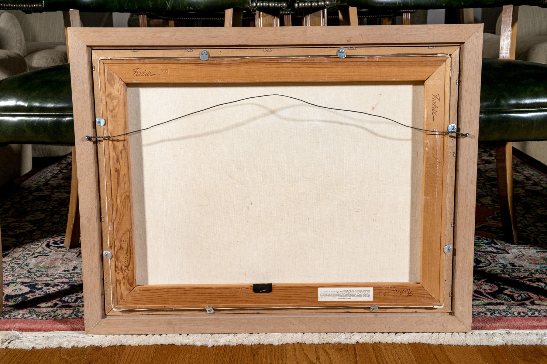 Condition: Frame has some paint splashes to it with other gentle wear. The linen filet with some foxing. See lot images for further visual inspection as they are considered part of the lot condition report.