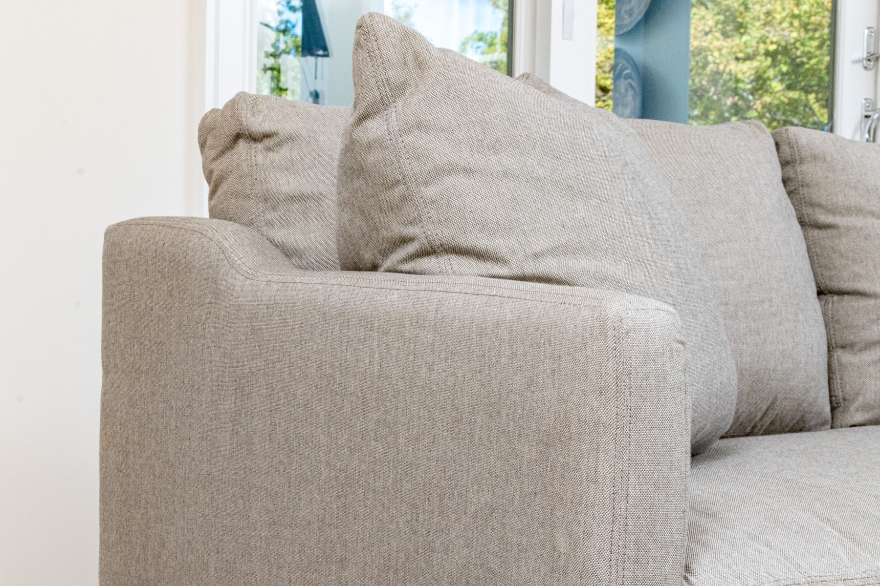 Like new. The pillows and cushions are nice and plump, lightly used.
