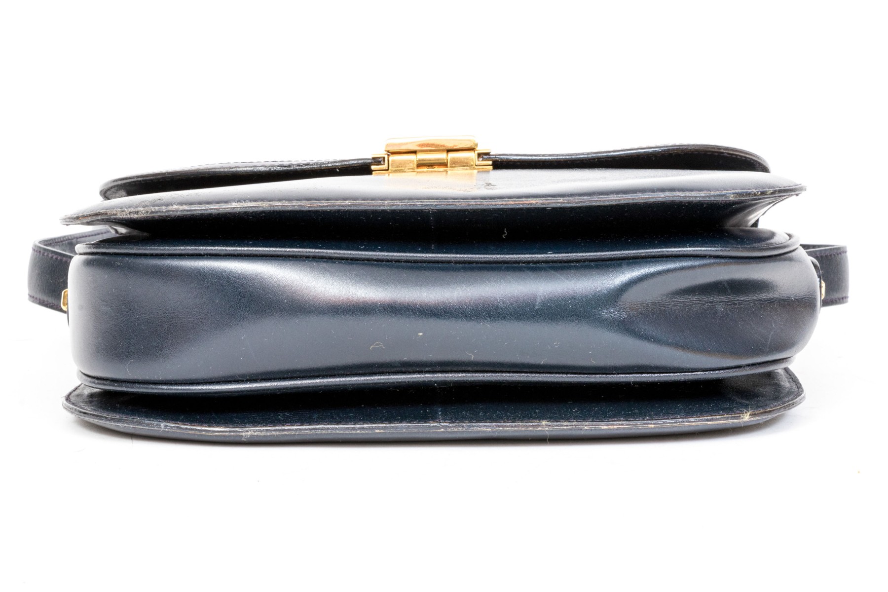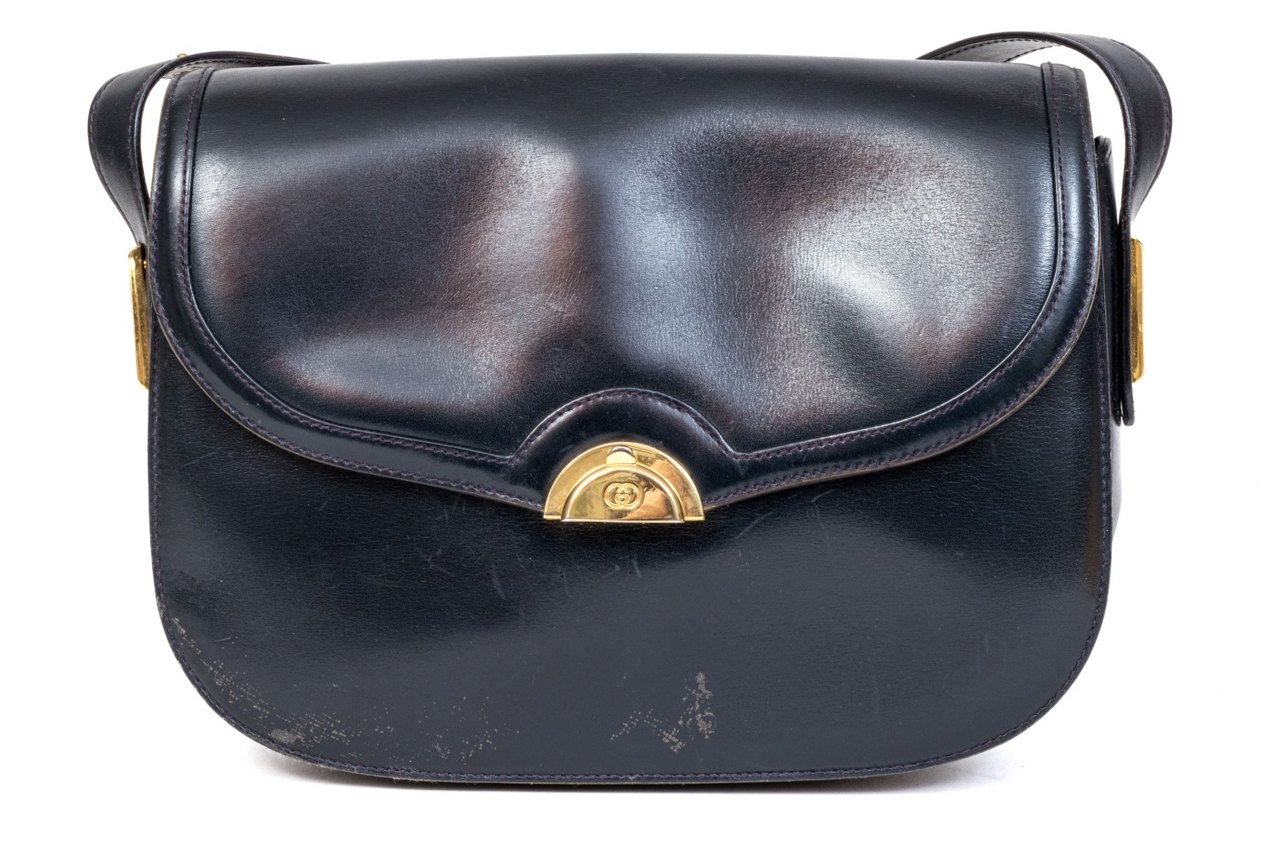 Fantastic dark navy blue Gucci leather shoulder bag. Folding latch closure.