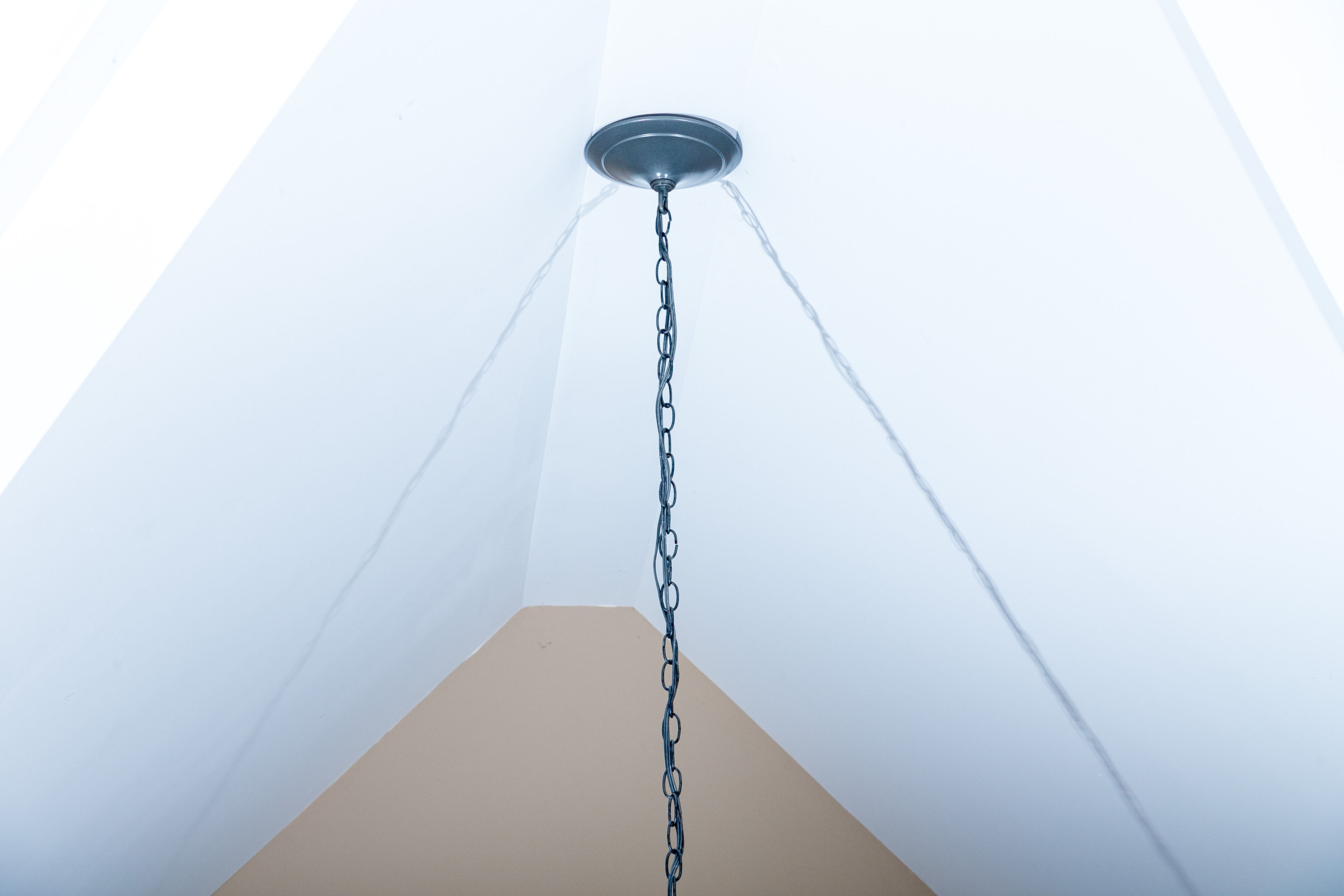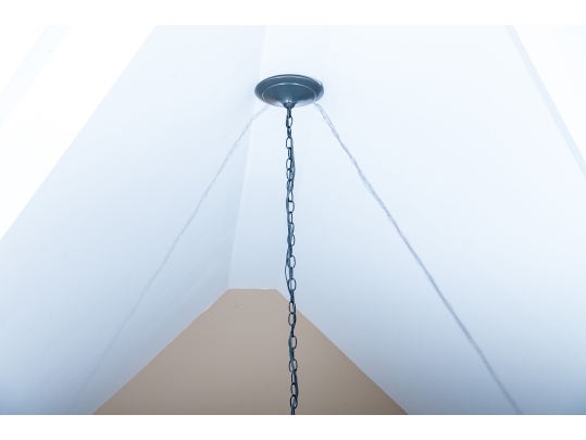Dimensions: 41" W, 33" H to top of ring, 62" of chain with ceiling plate.