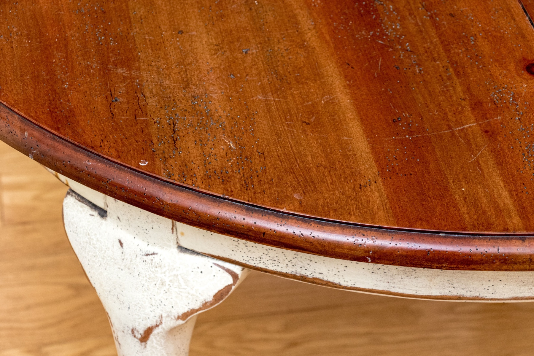 Wear and losses to the finish on the feet with nics and small losses and could be refinished. Overall the table is in good form with minor and gentle wear.