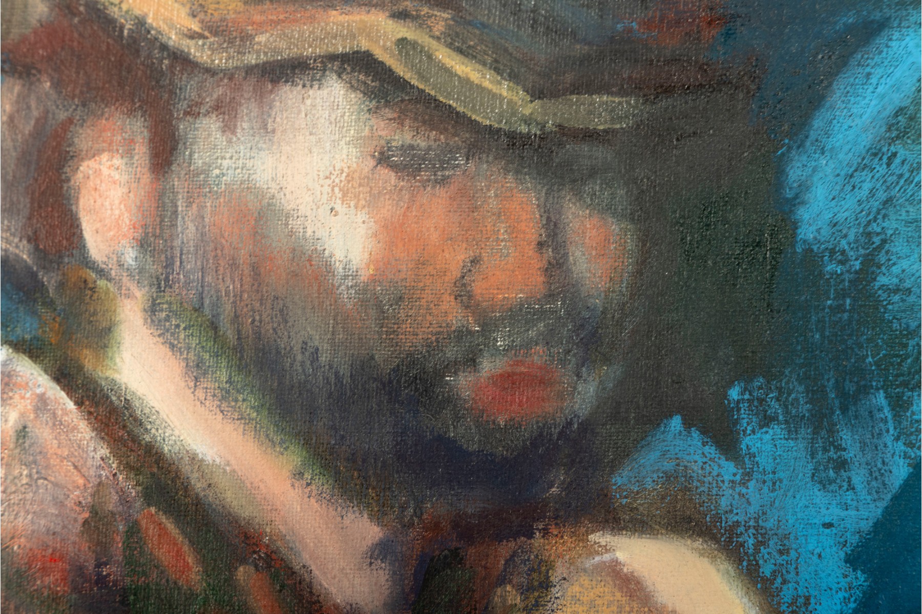 Frame seperation. Frame is not properly secured. Painting is in good condition.