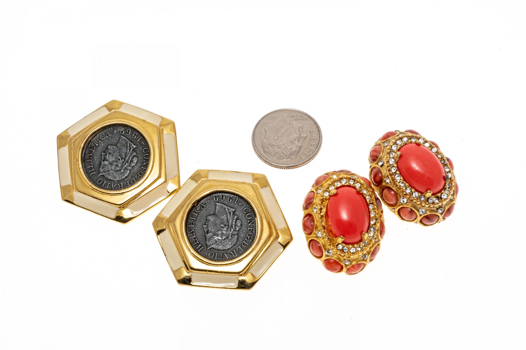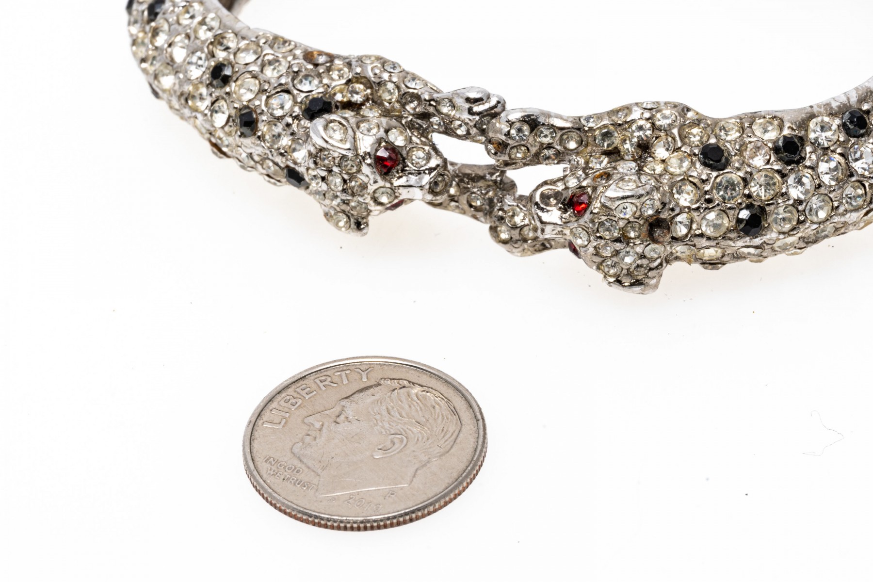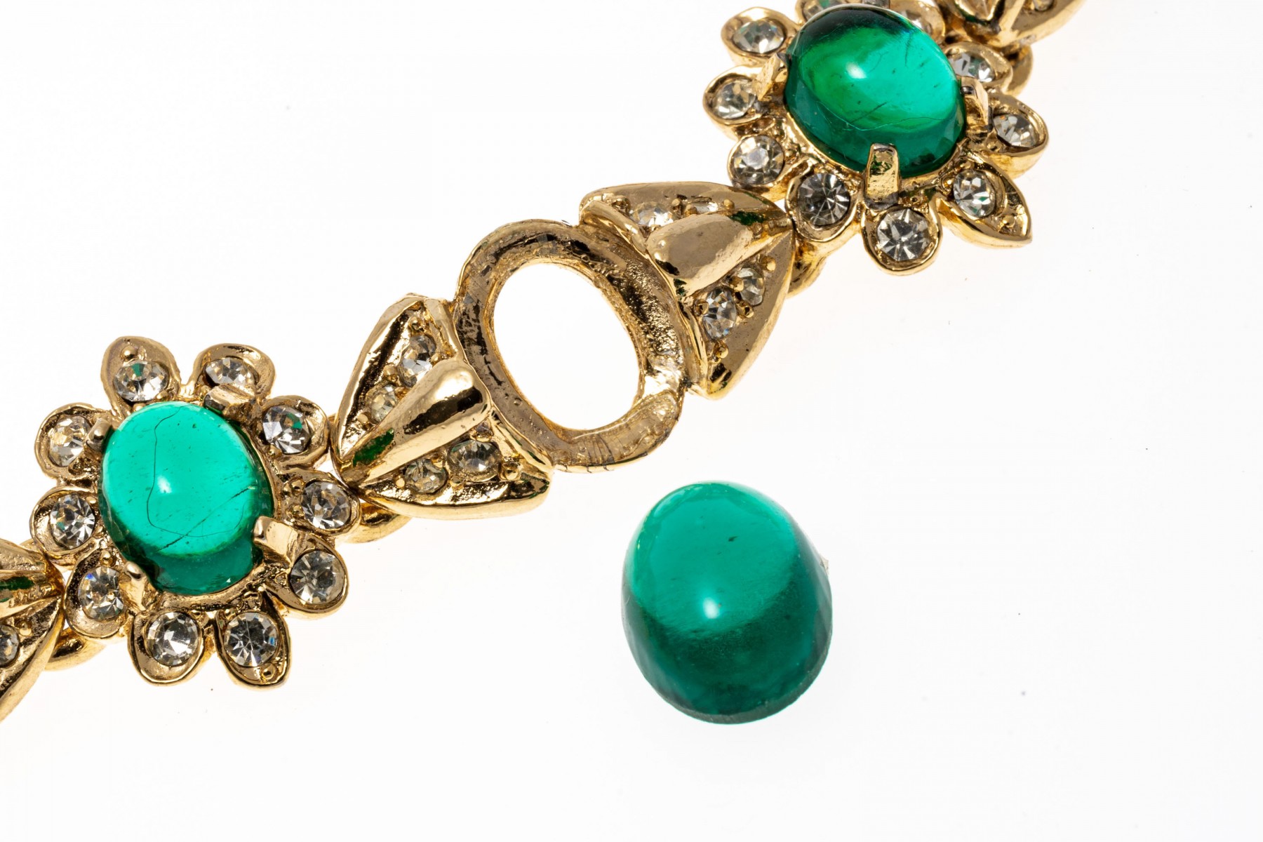 Condition: In used condition with wear. Some of the synthetic stones have fallen out of the settings.