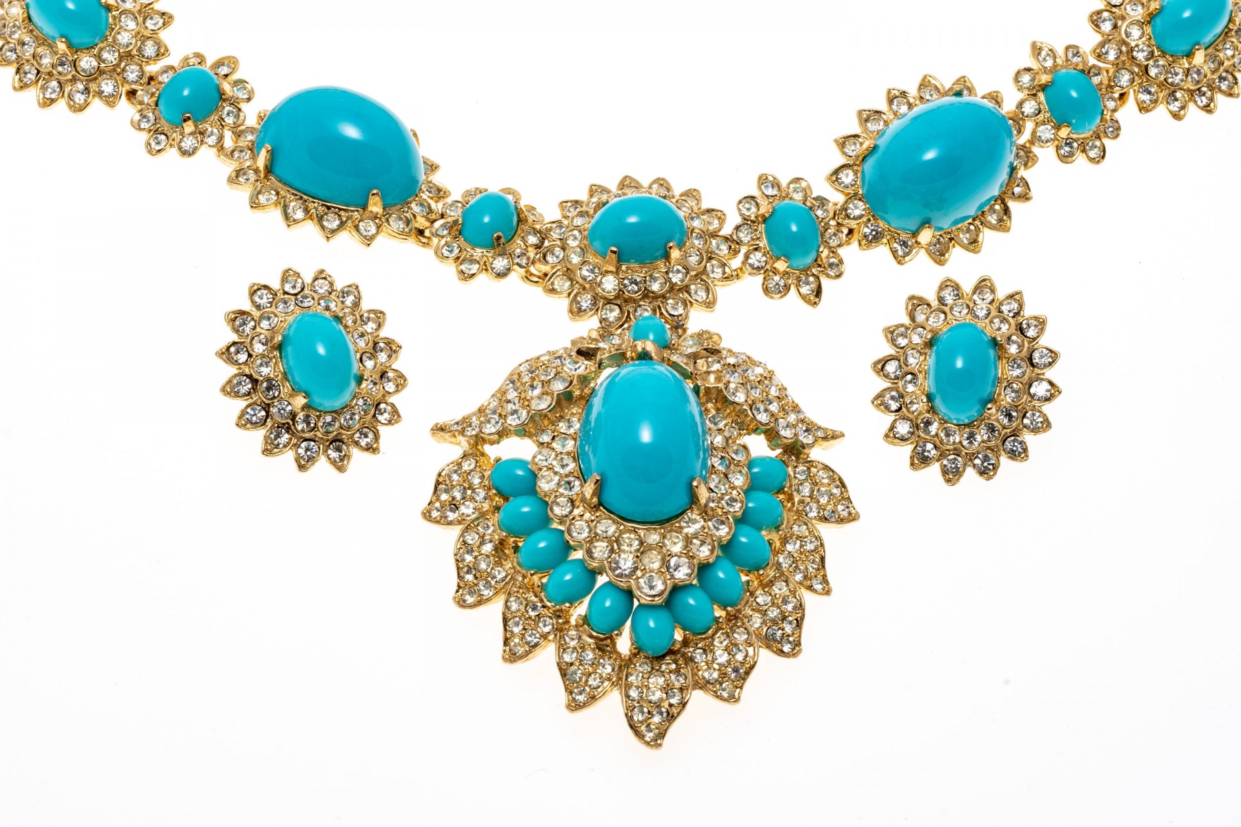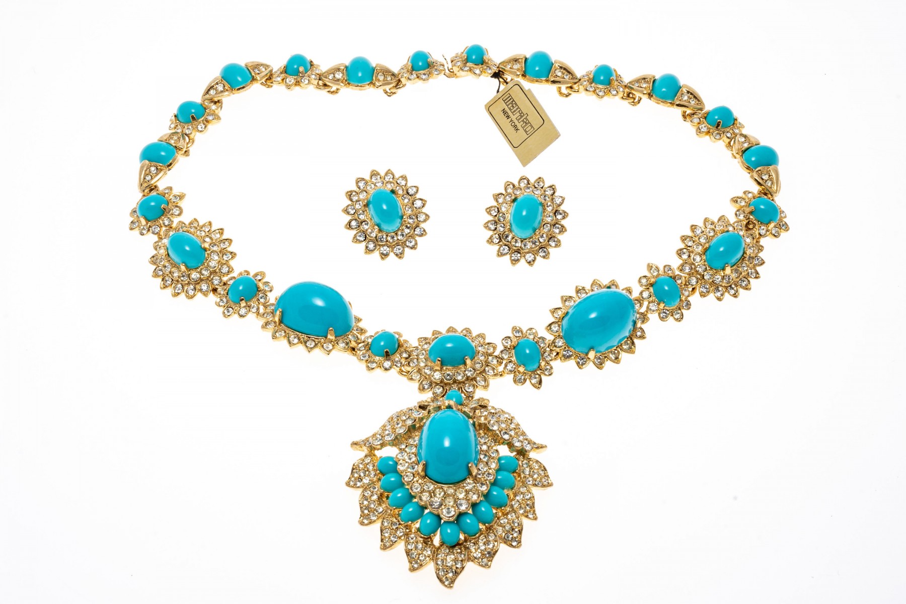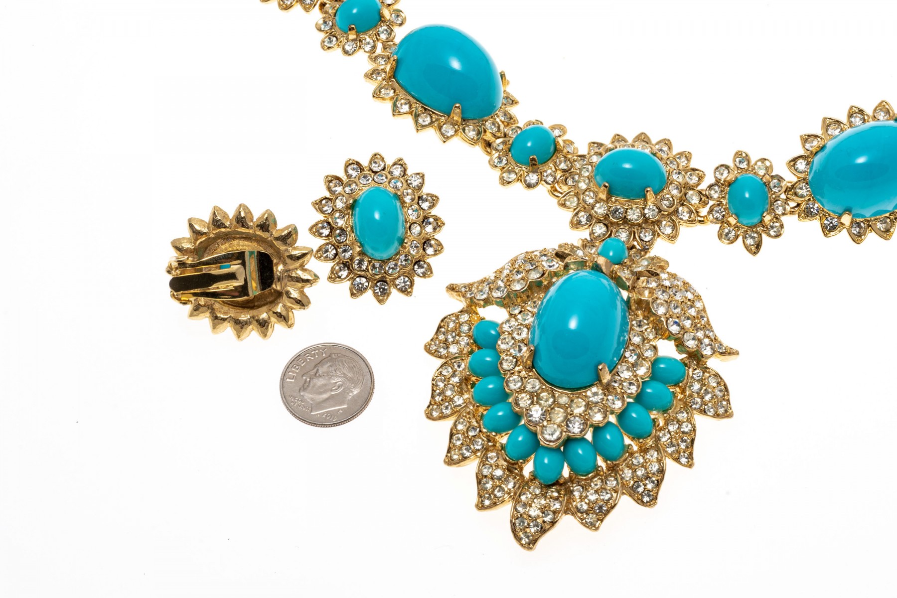 Dimensions: Necklaces range from 16" L to 18" L, Brooch 3" L, 3" x 2" and 2 3/4" 2"-Bracelets, Earrings range from 1" to 1 1/2" L