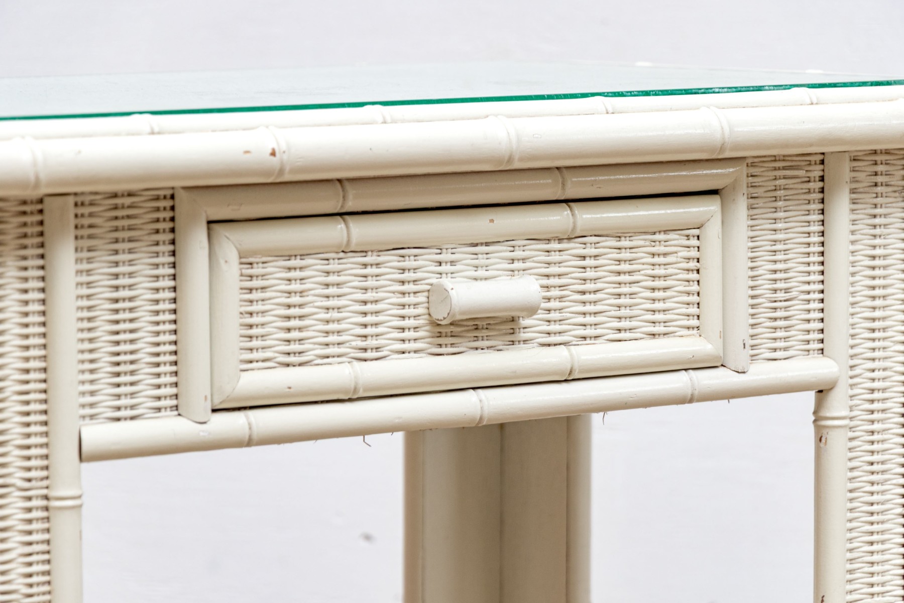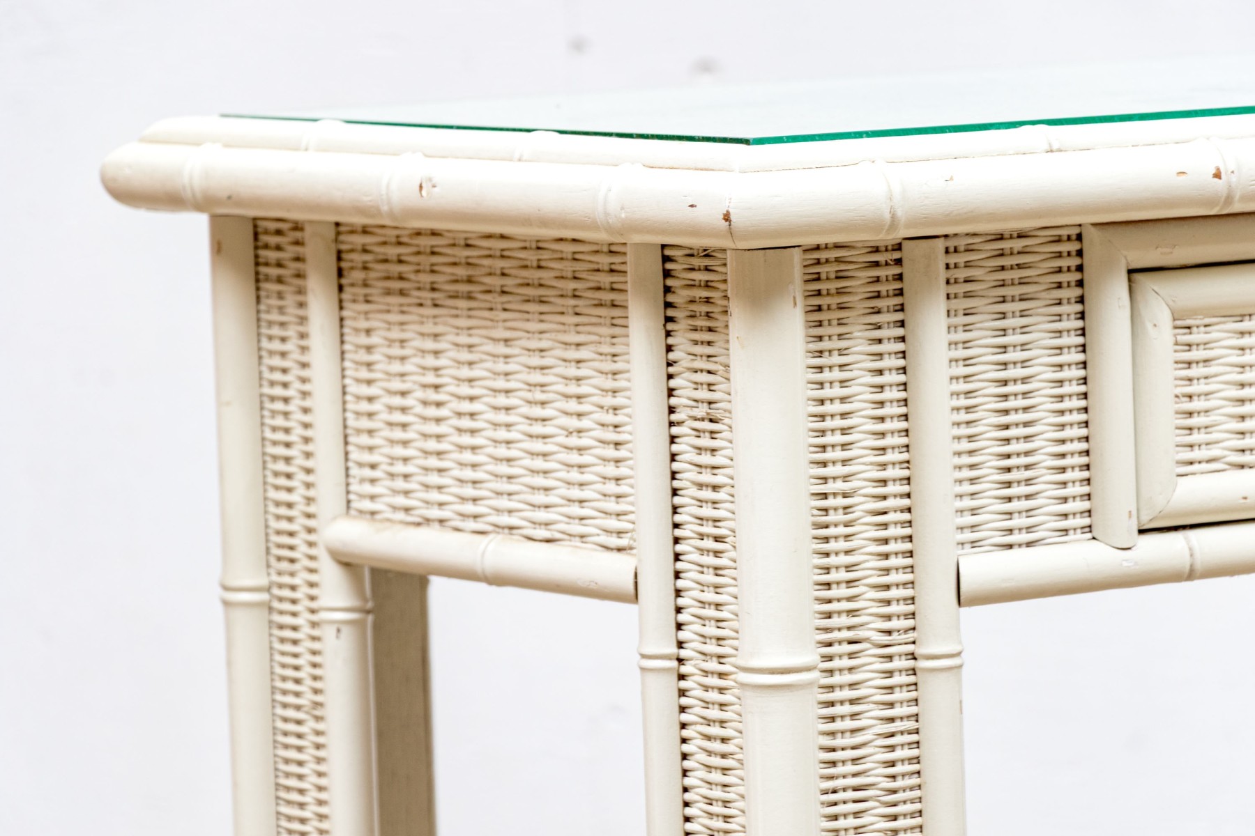 Faux Bamboo And Wicker Painted Console With Glass Top #456968. Black Rock Galleries provides high end estate liquidation services through online estate auctions and a 50,000 sq ft designer showroom. estate liquidator, estate sale, online auction, antiques, fine art, liquidation, clean outs, auction, consignment, interior design, fine jewelry, collectibles, appraisals, estate appraisals, estate services, decor, furniture, furniture consignment, antique center, consignment shop. We offer appraisal services and specialize in fine art, jewelry, antiques and decorative arts. Sell with us. Black Rock Galleries is the tri-state's largest estate liquidator serving New England and the greater New York City area. We are the trusted source for expert appraisals, auction services, estate sales, and consignments. Black Rock Galleries is the east coast's largest and most trusted estate liquidator, with locations in Connecticut, greater Boston, MA and Raleigh, NC, Fairfield, Southport, Apex, TX. We are the best source for expert appraisals, auction services, estate sales and consignments. We have served thousands of families and estates with compassion, professionalism and expertise. BRG works with attorneys, executors, realtors and families to bring the greatest return on personal and estate property in the current market. Our unique combination of services make us the easy choice to get the job done in a timely and stress-free manner. We are with you from the initial consultation to the final clean out. Our house-built online auction software platform offers clients a dynamic approach to liquidating their personal property. This venue is most successful in bringing the best return with the least amount of disruption for our clients. See our services page for a complete description of this offering. Faux Bamboo And Wicker Painted Console With Glass Top #456968