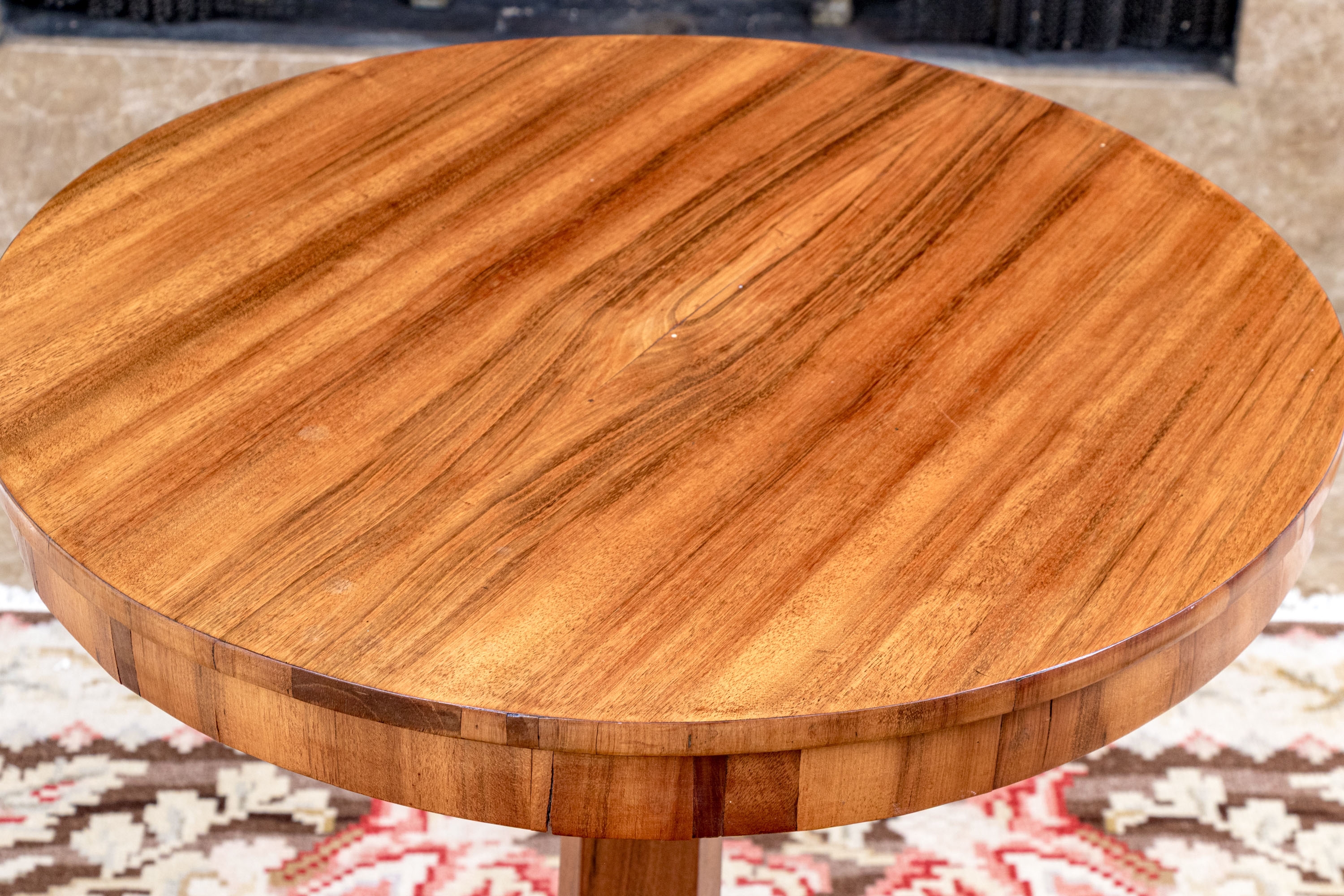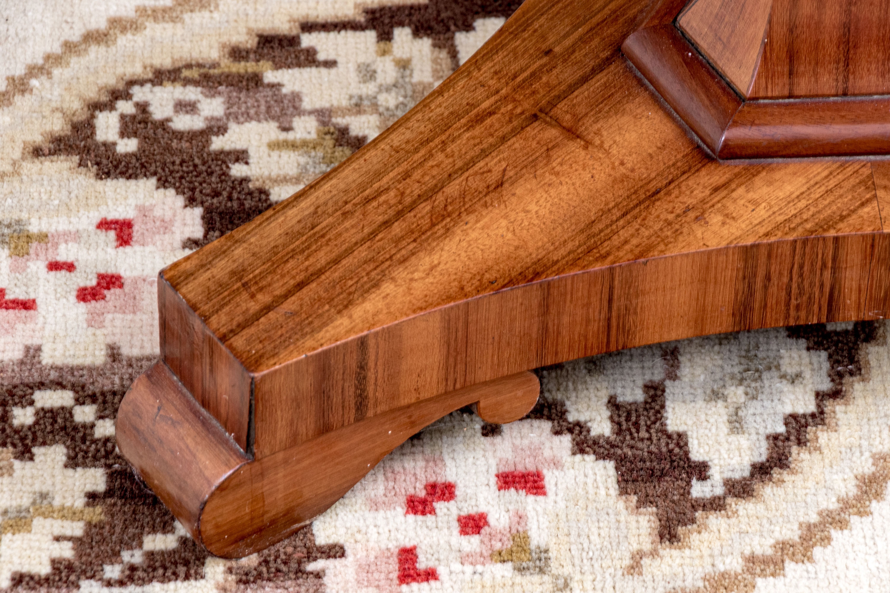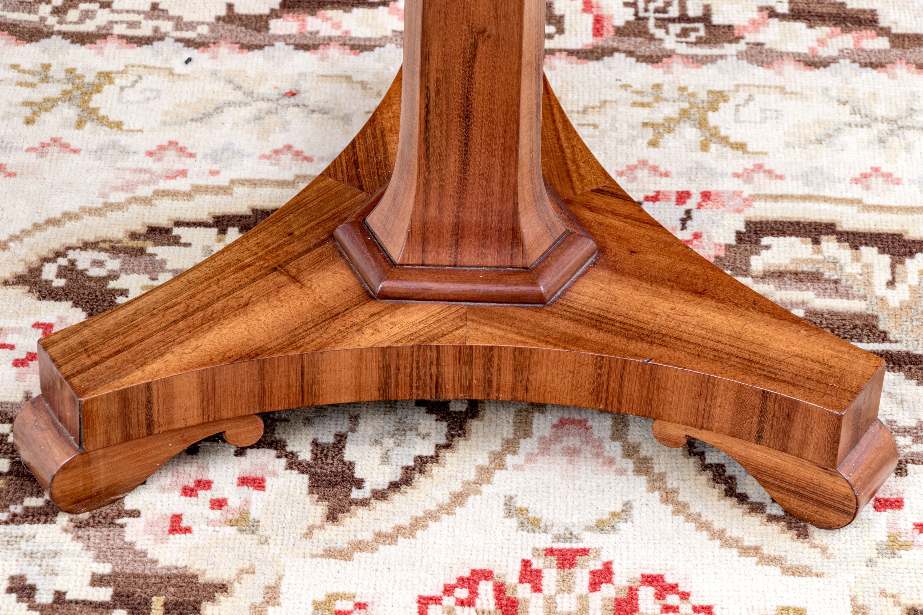 An Antique Mahogany Pedestal Side Table finely graining and color. The Table on three feet with trefoil form base with cylindrical columnar support and circular table top.