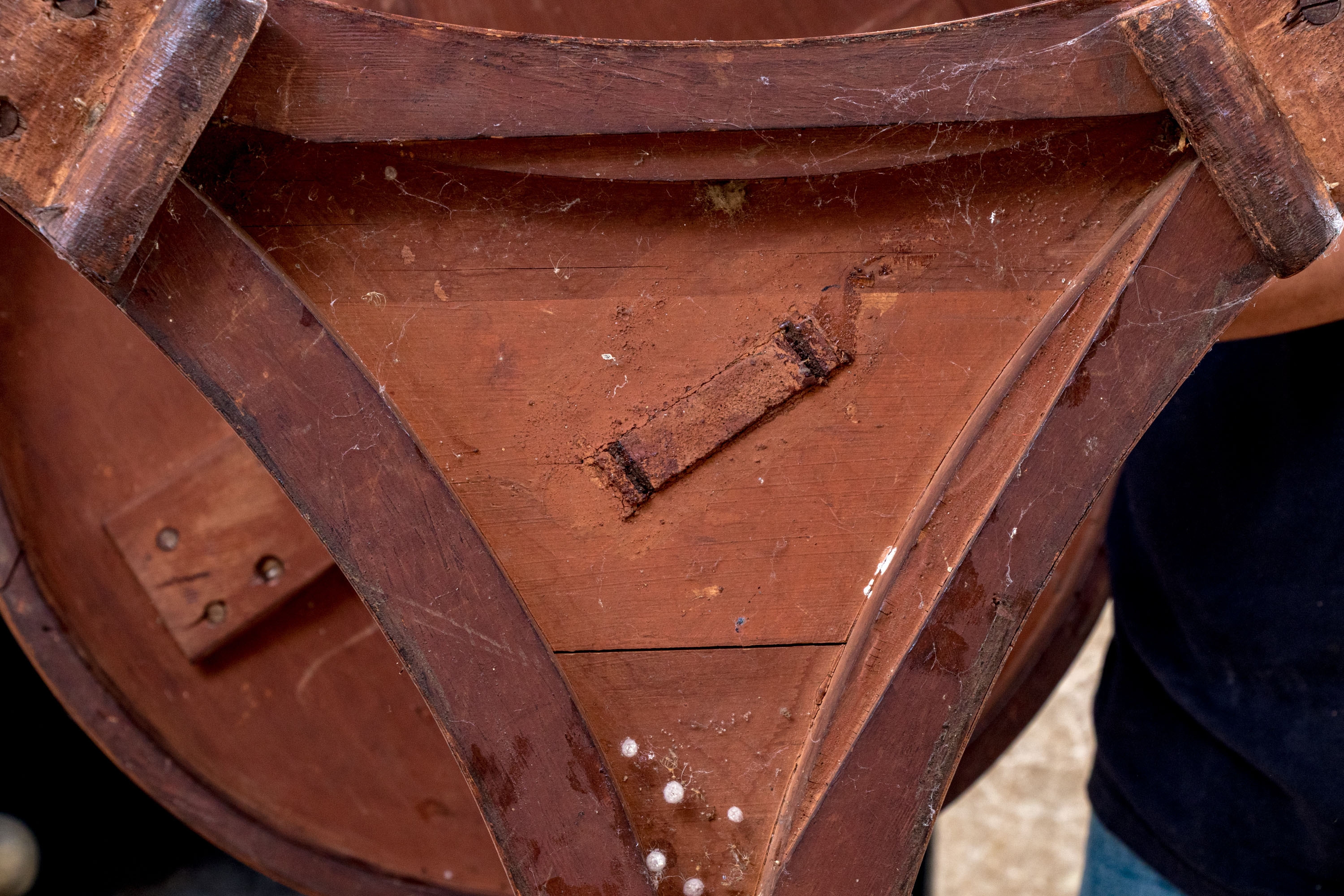 Condition: Splits and lifting to the veneers around the trim edges. Slightly wobbly.