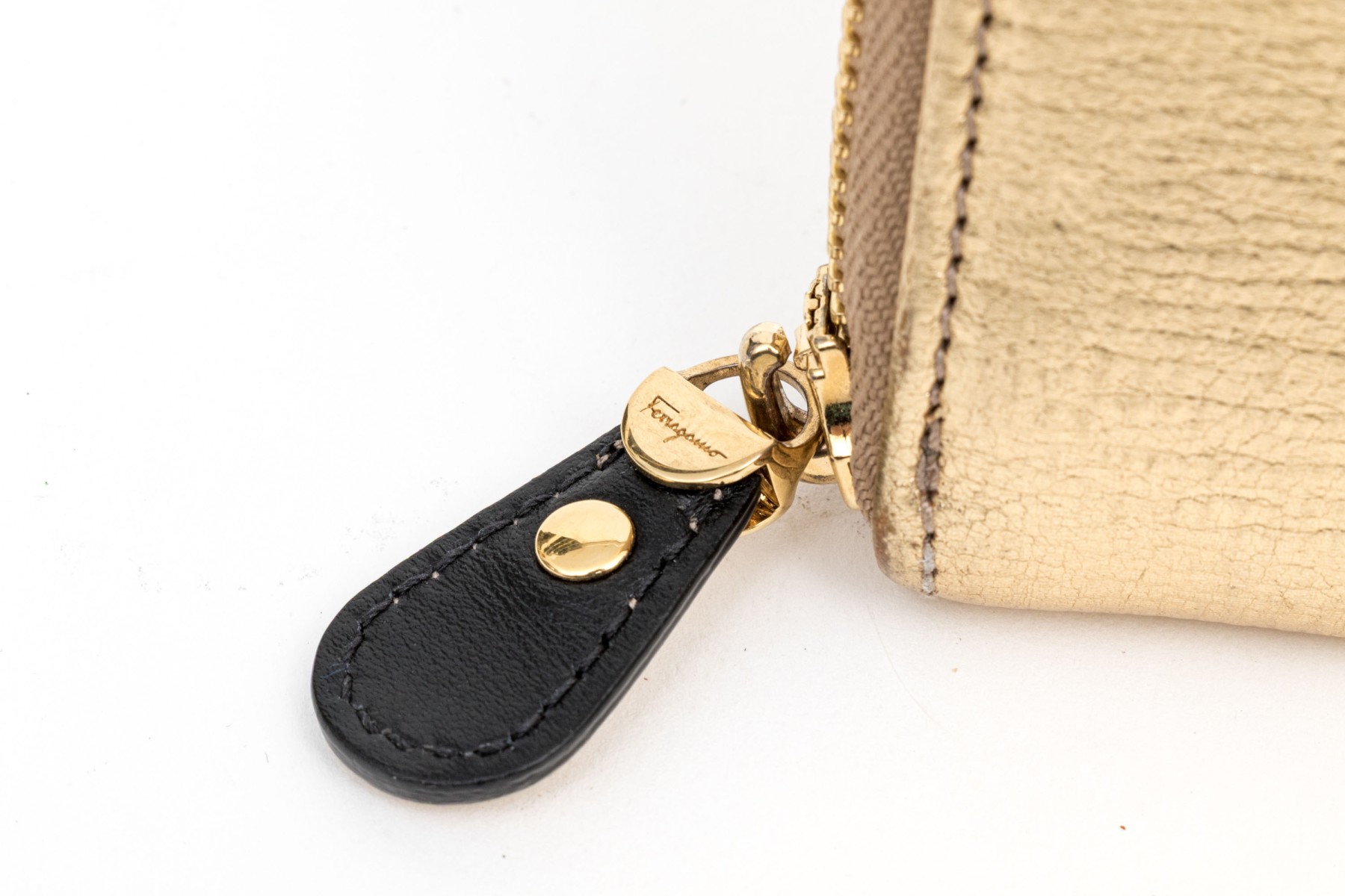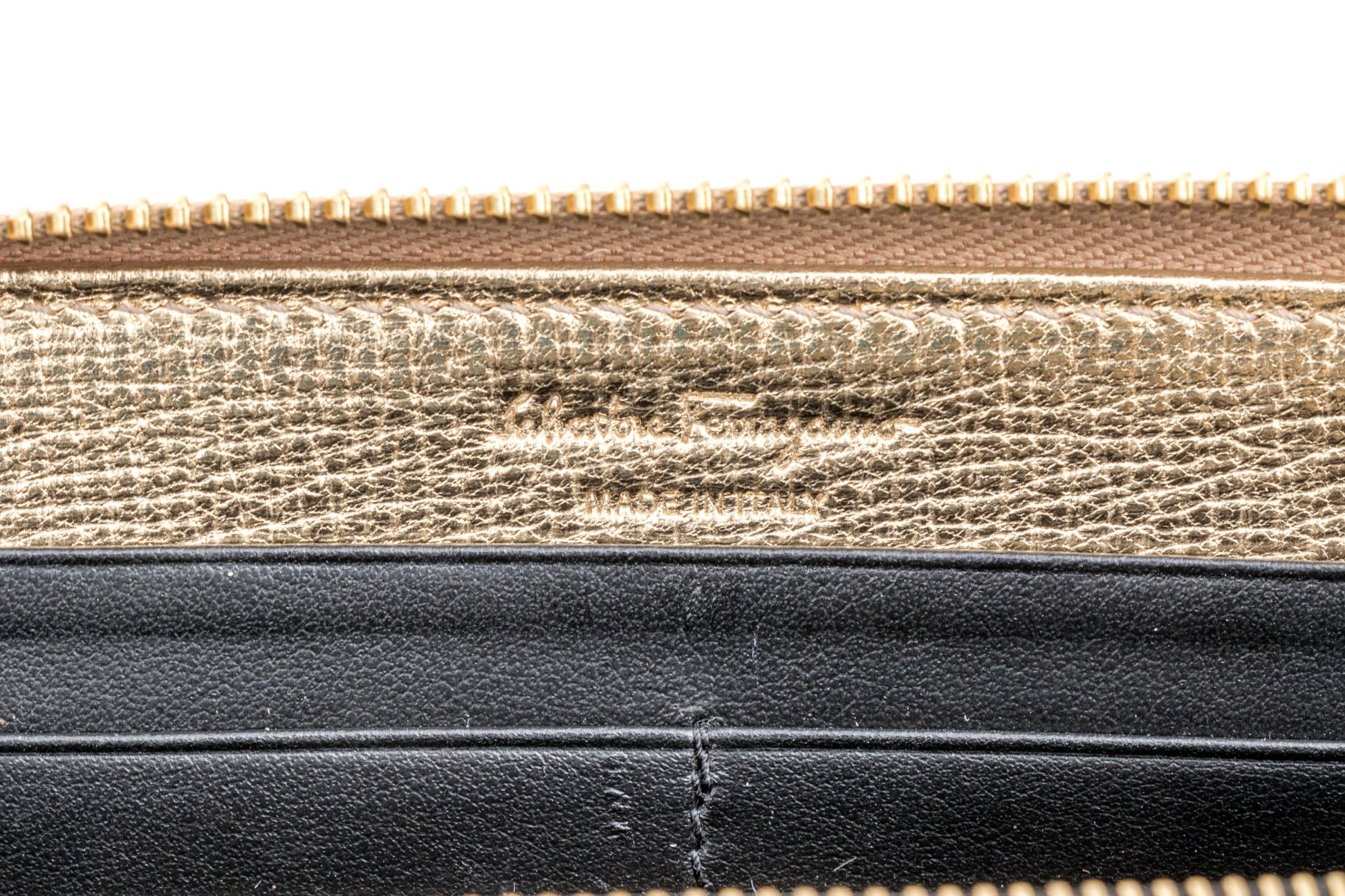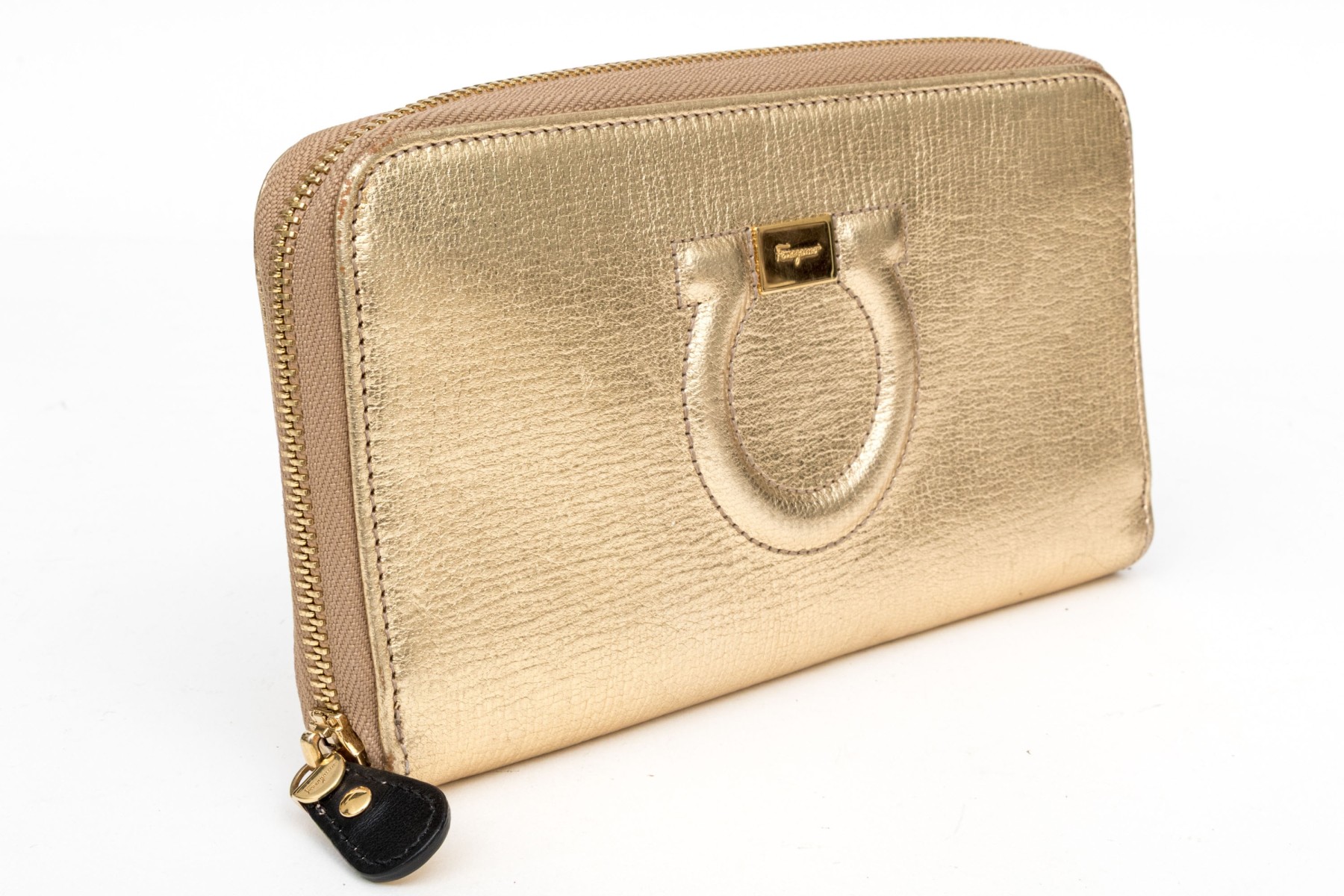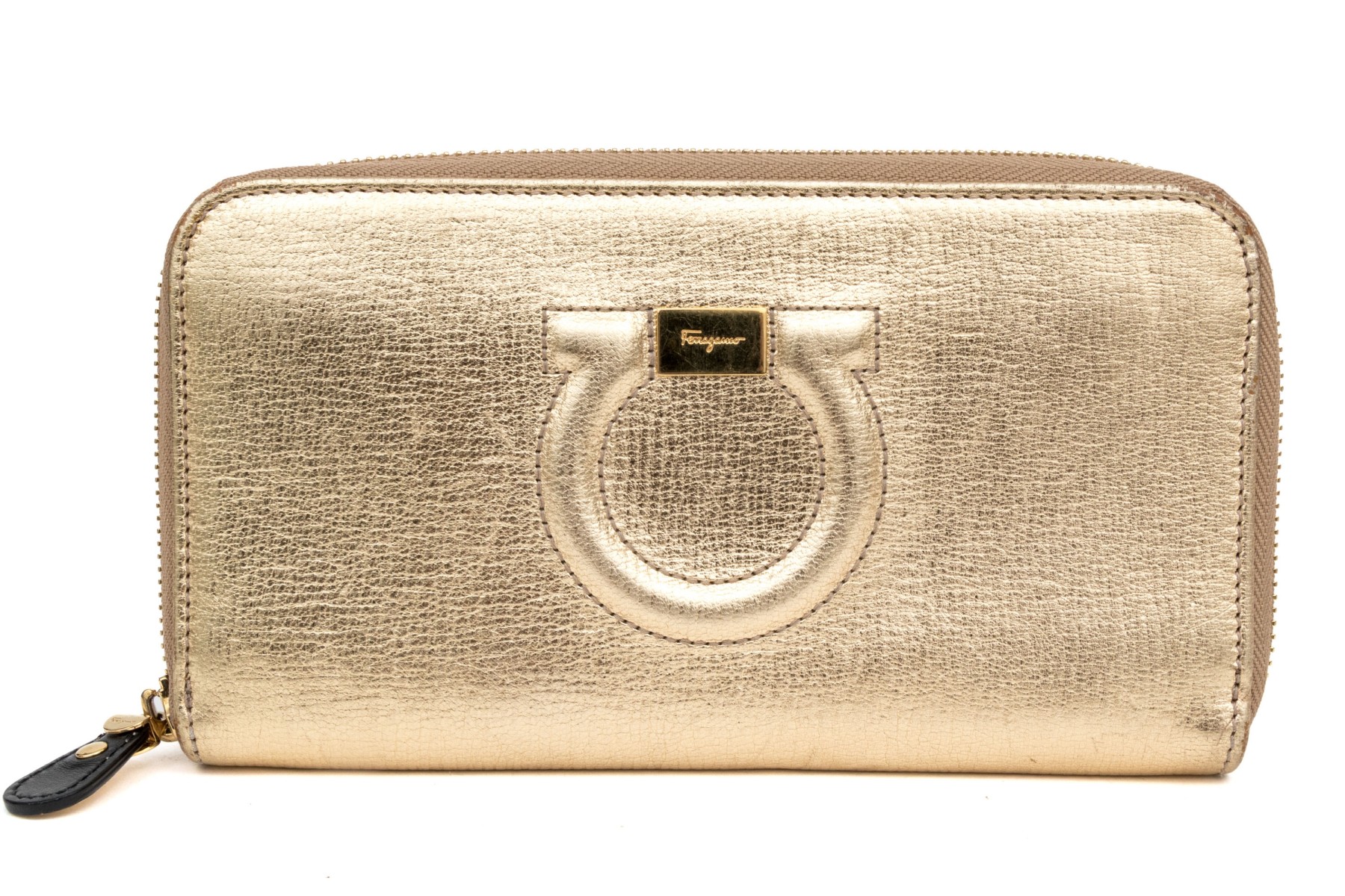 Ferragamo striking gold metallic leather zip wallet