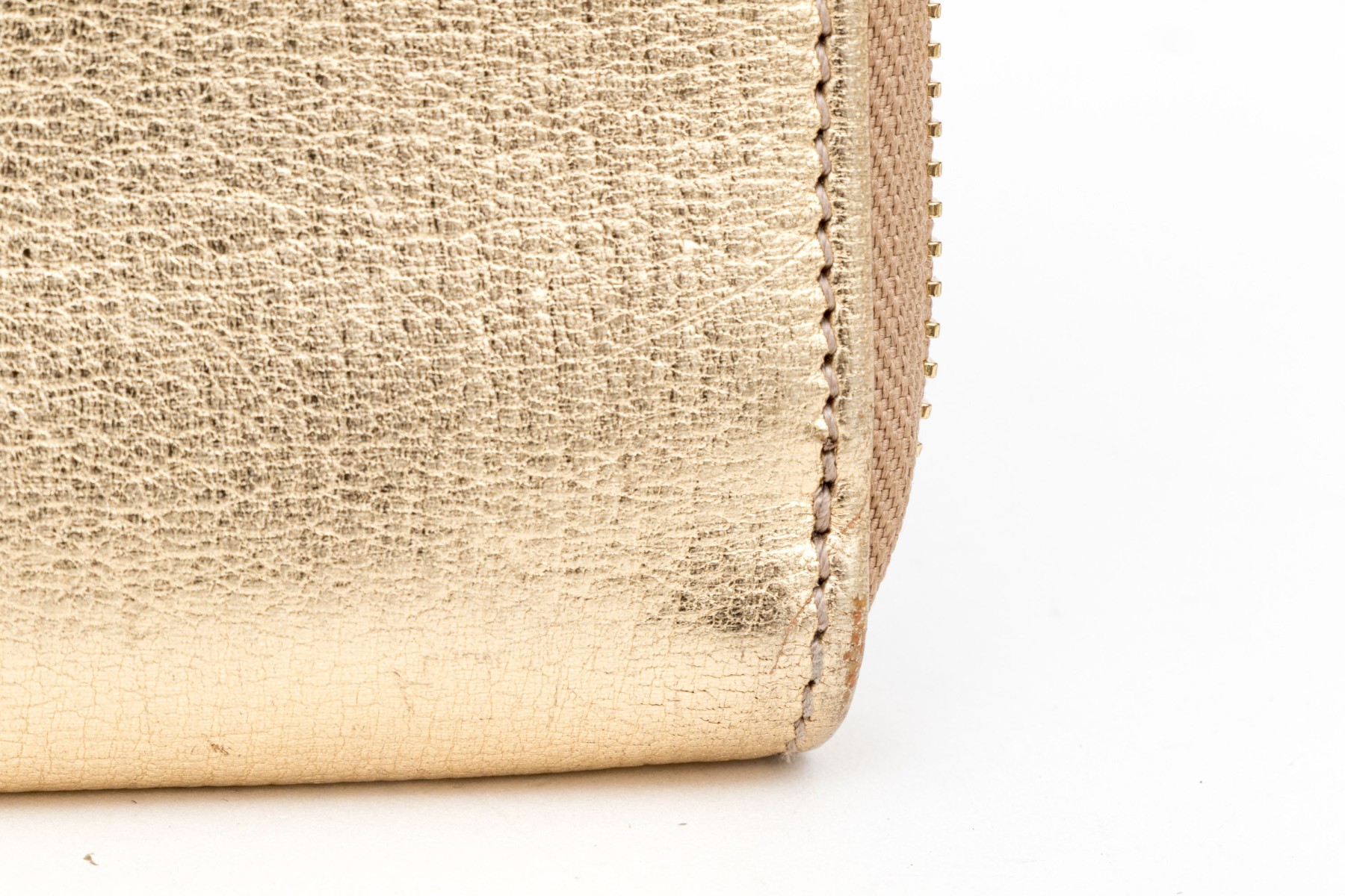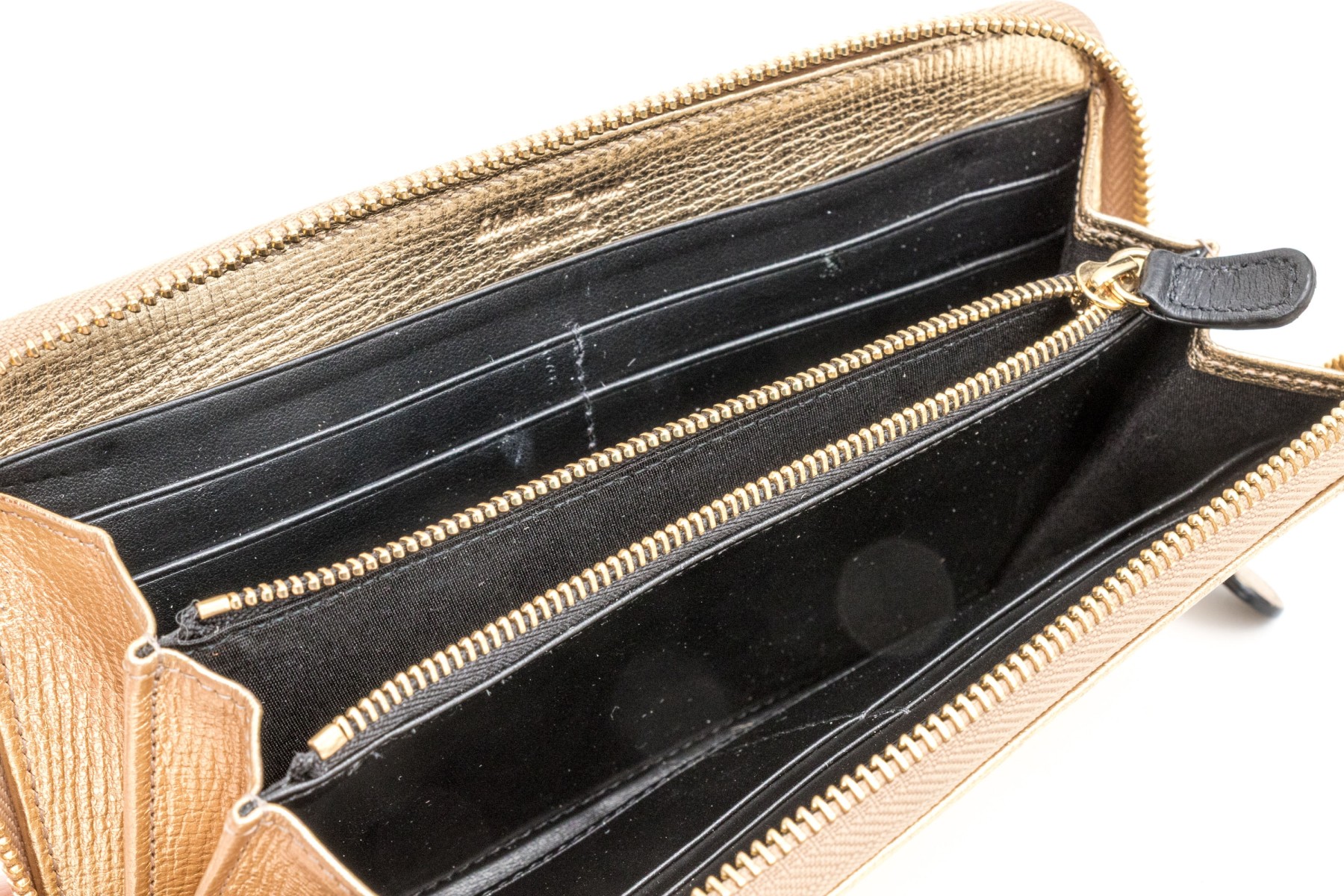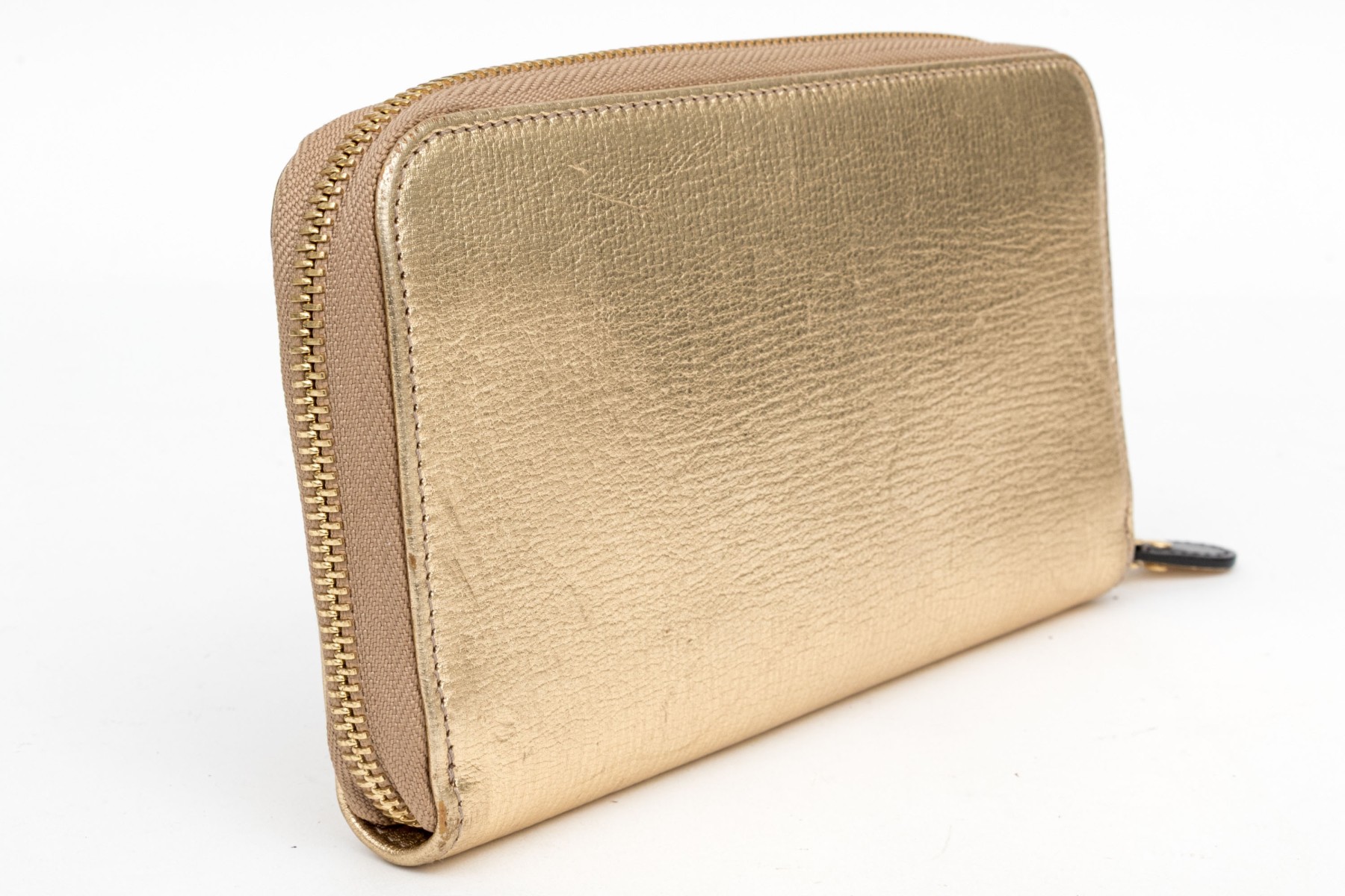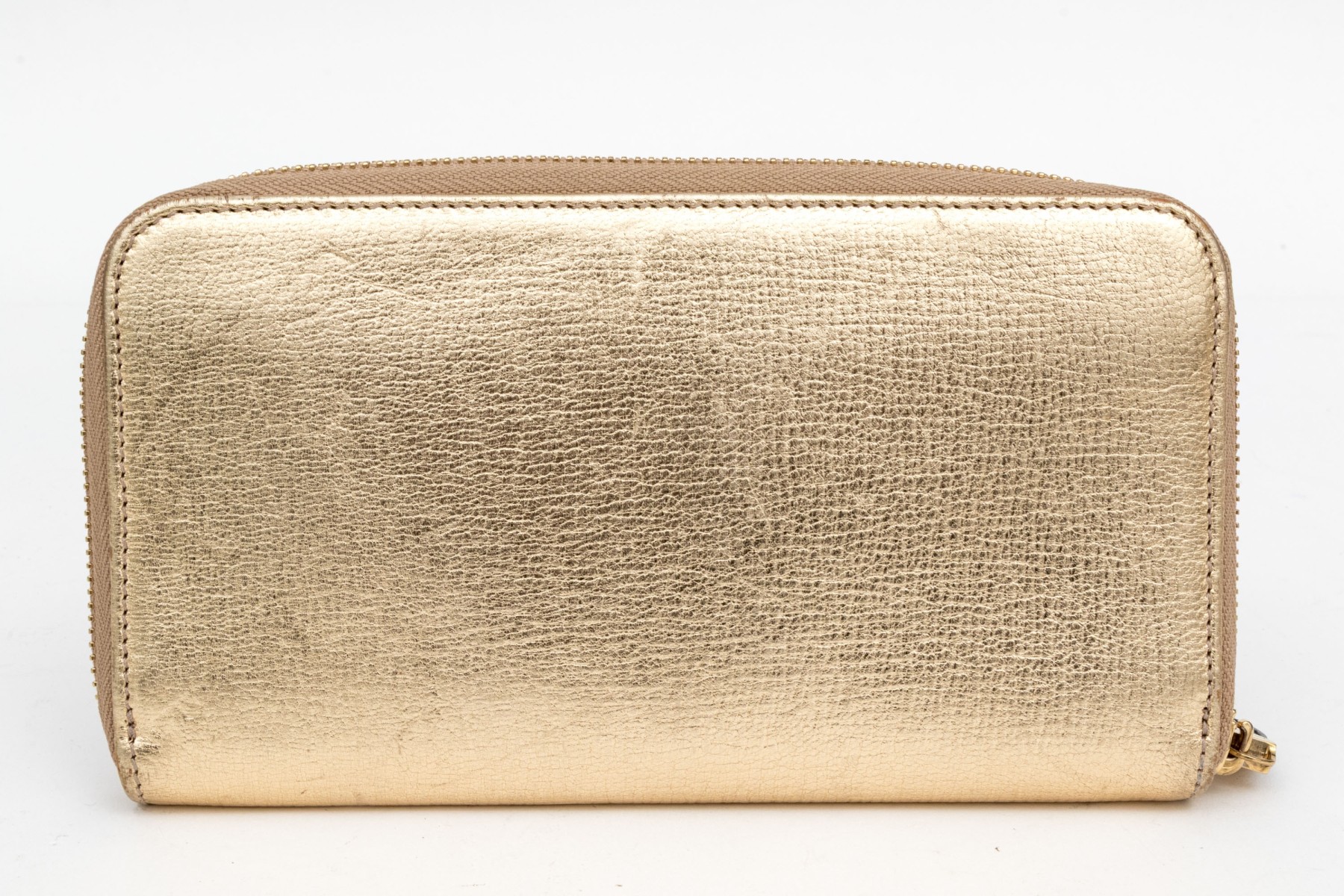 Ferragamo striking gold metallic leather zip wallet