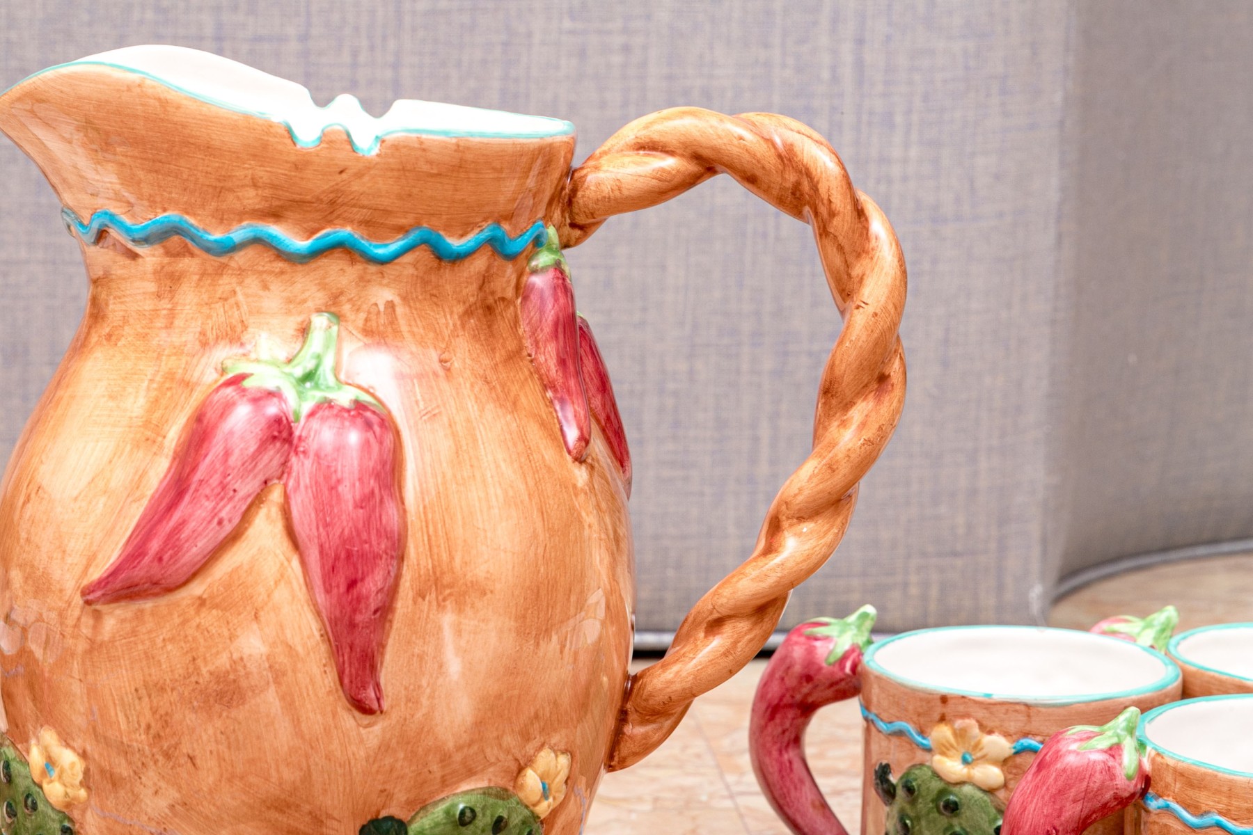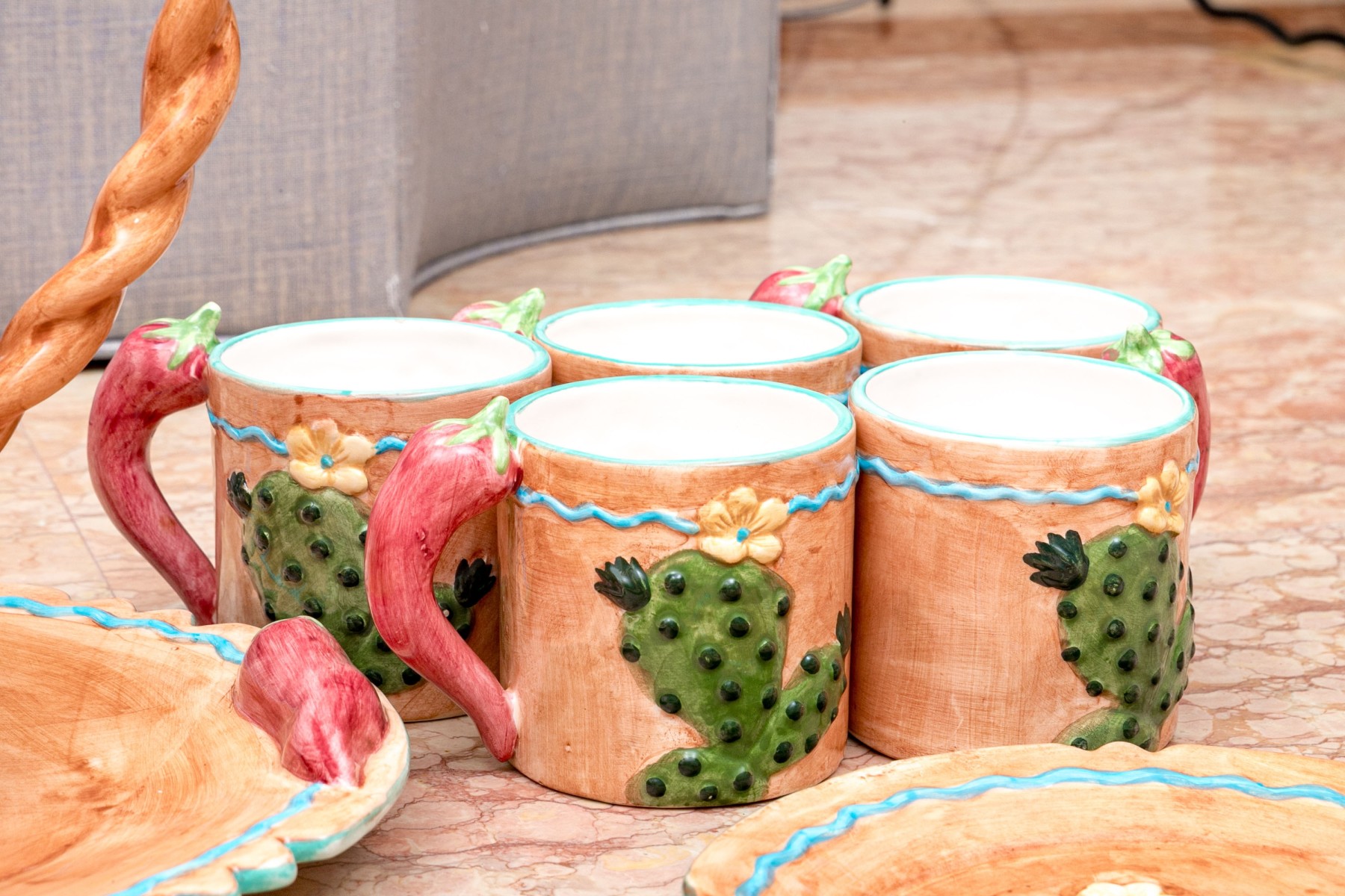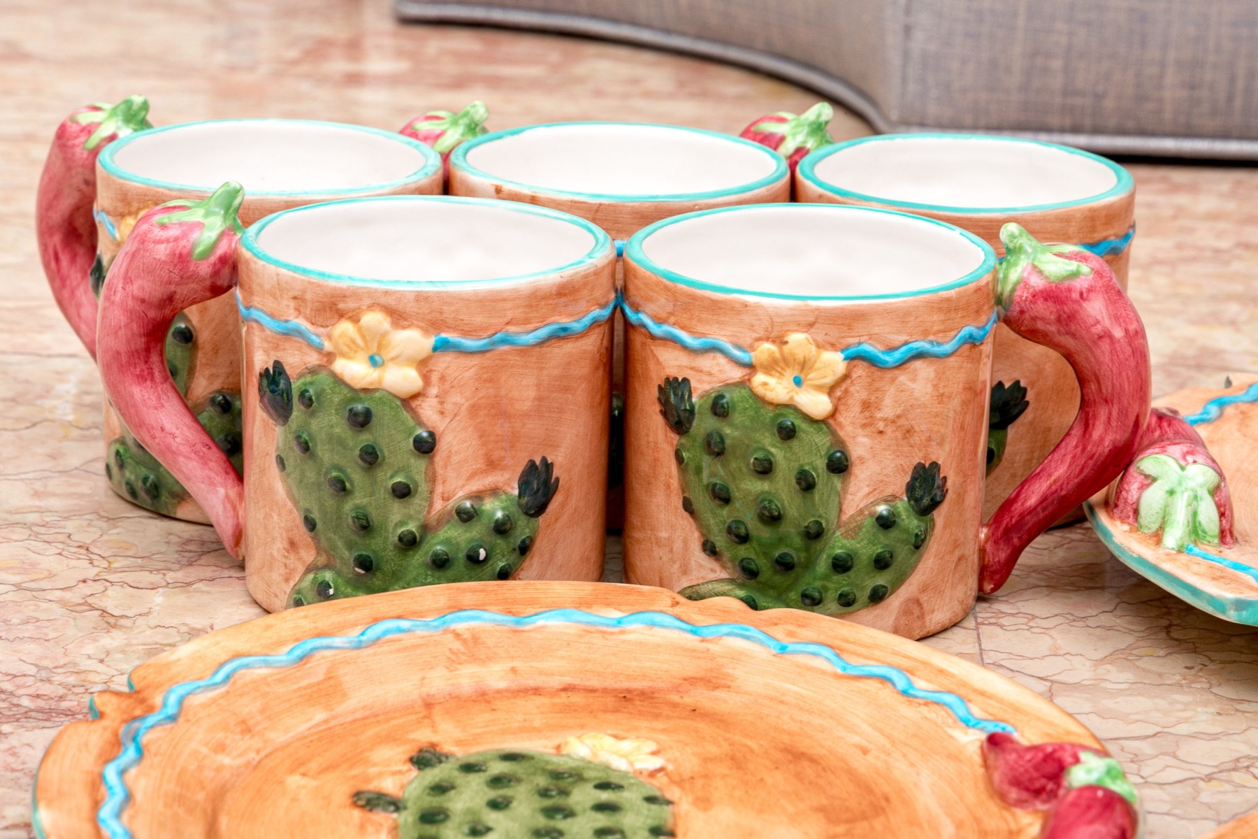 - Ten mugs with chili form handles