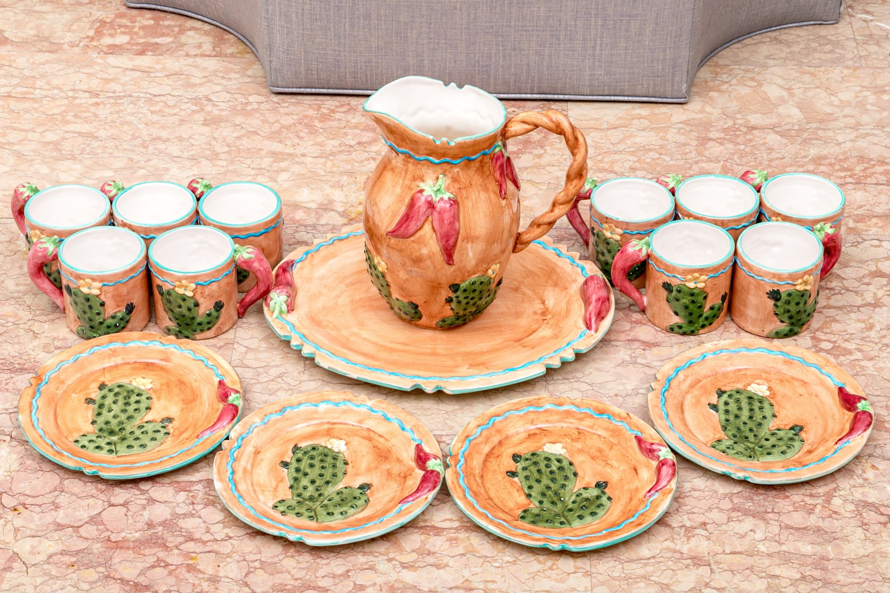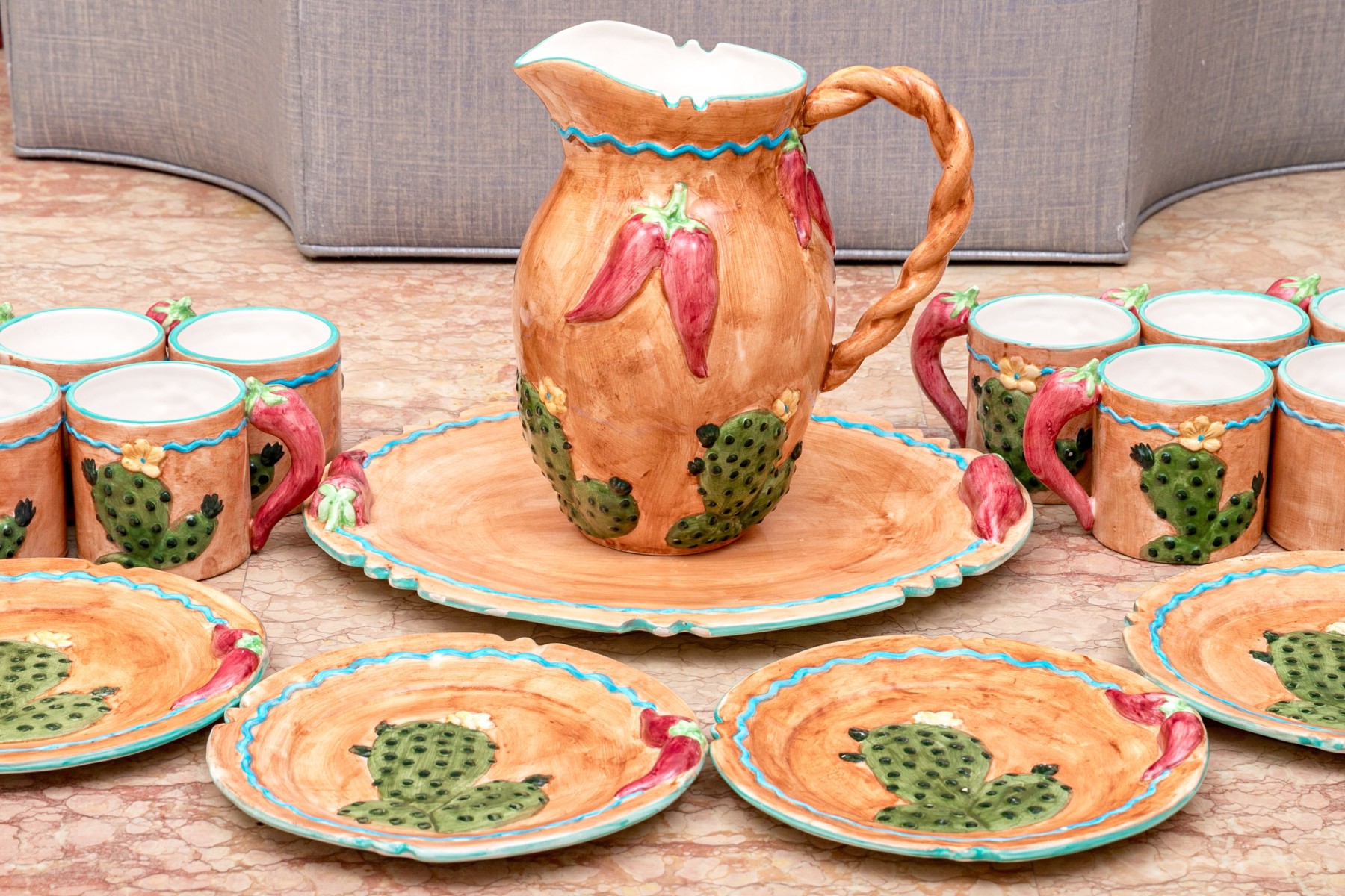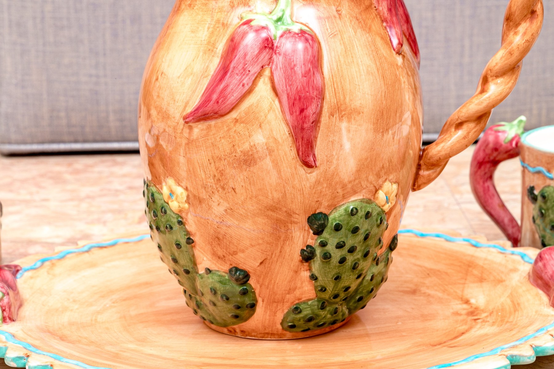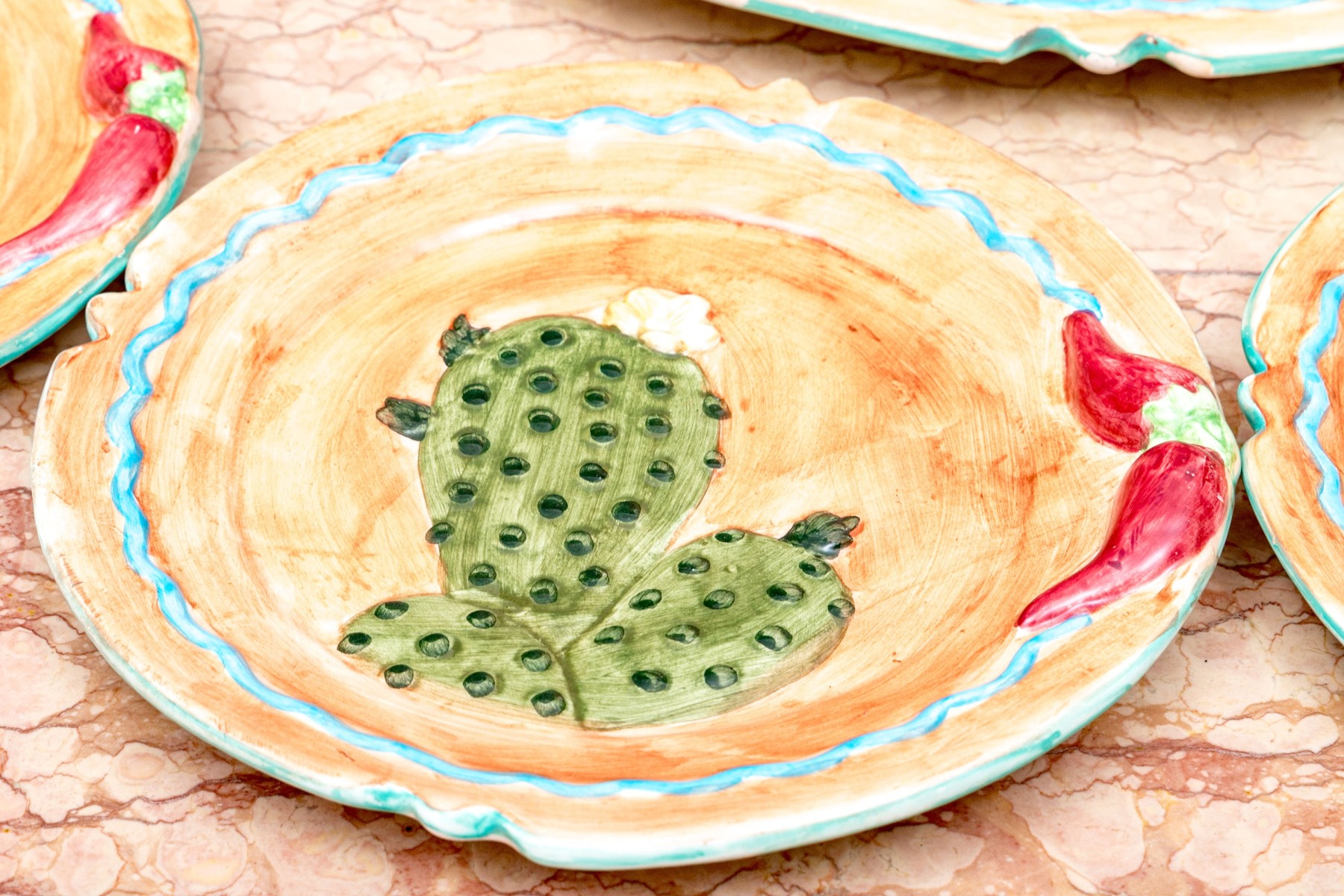 - Four 8 3/4" dia. plates with cactus and chili motifs