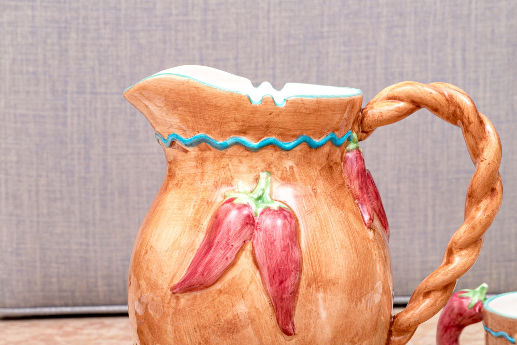 - One large water pitcher with faux braided handle