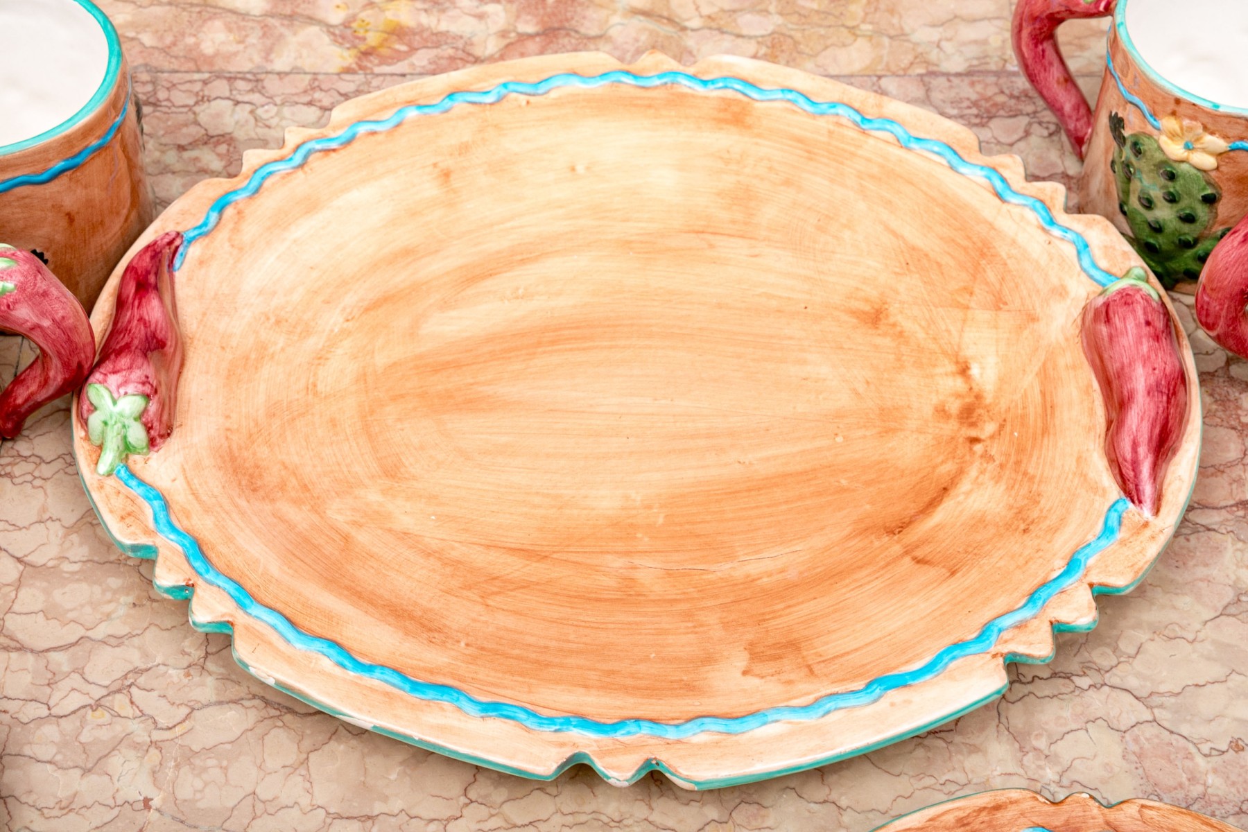 - One oval serving platter with two chili form handles