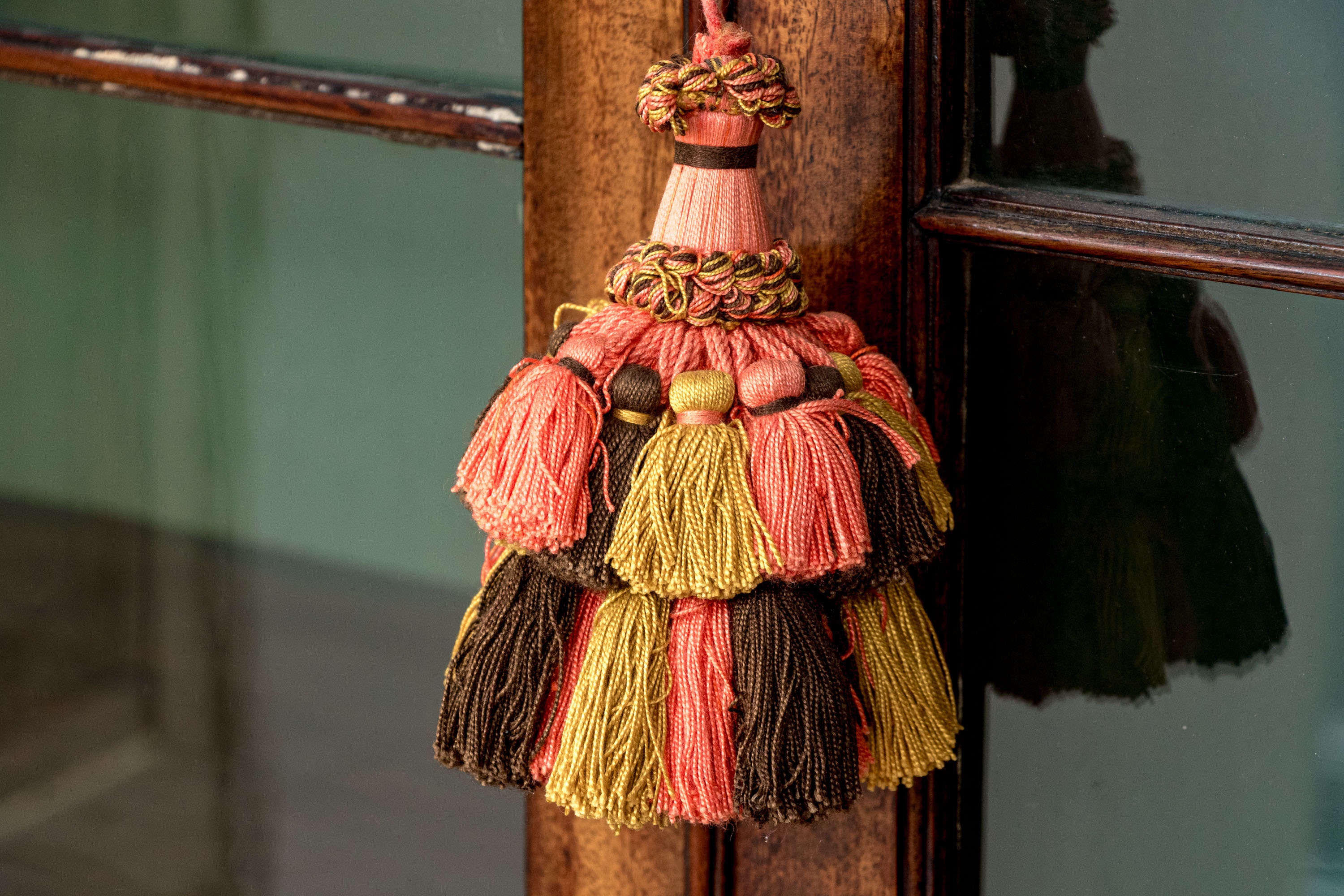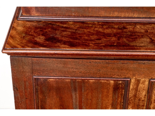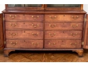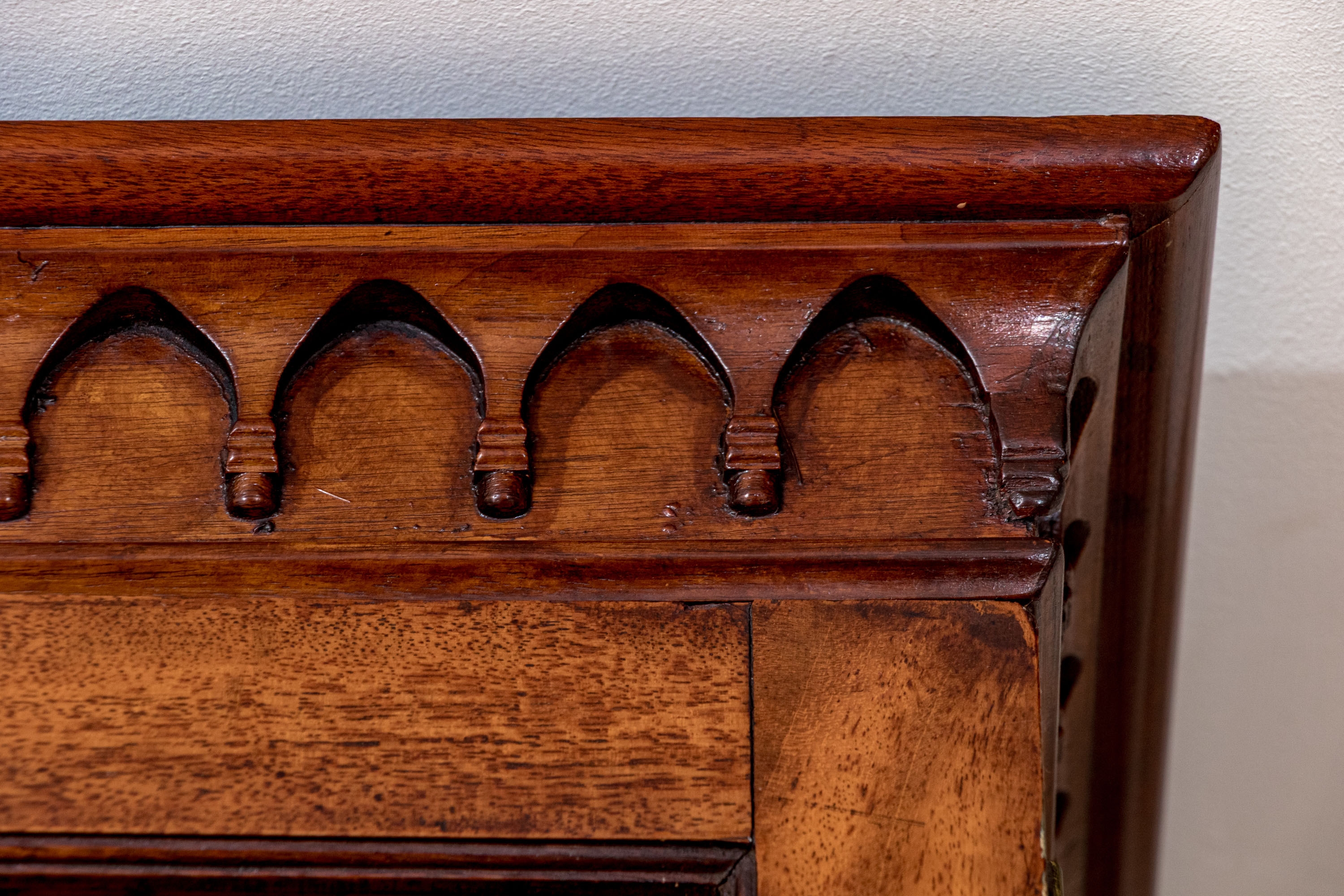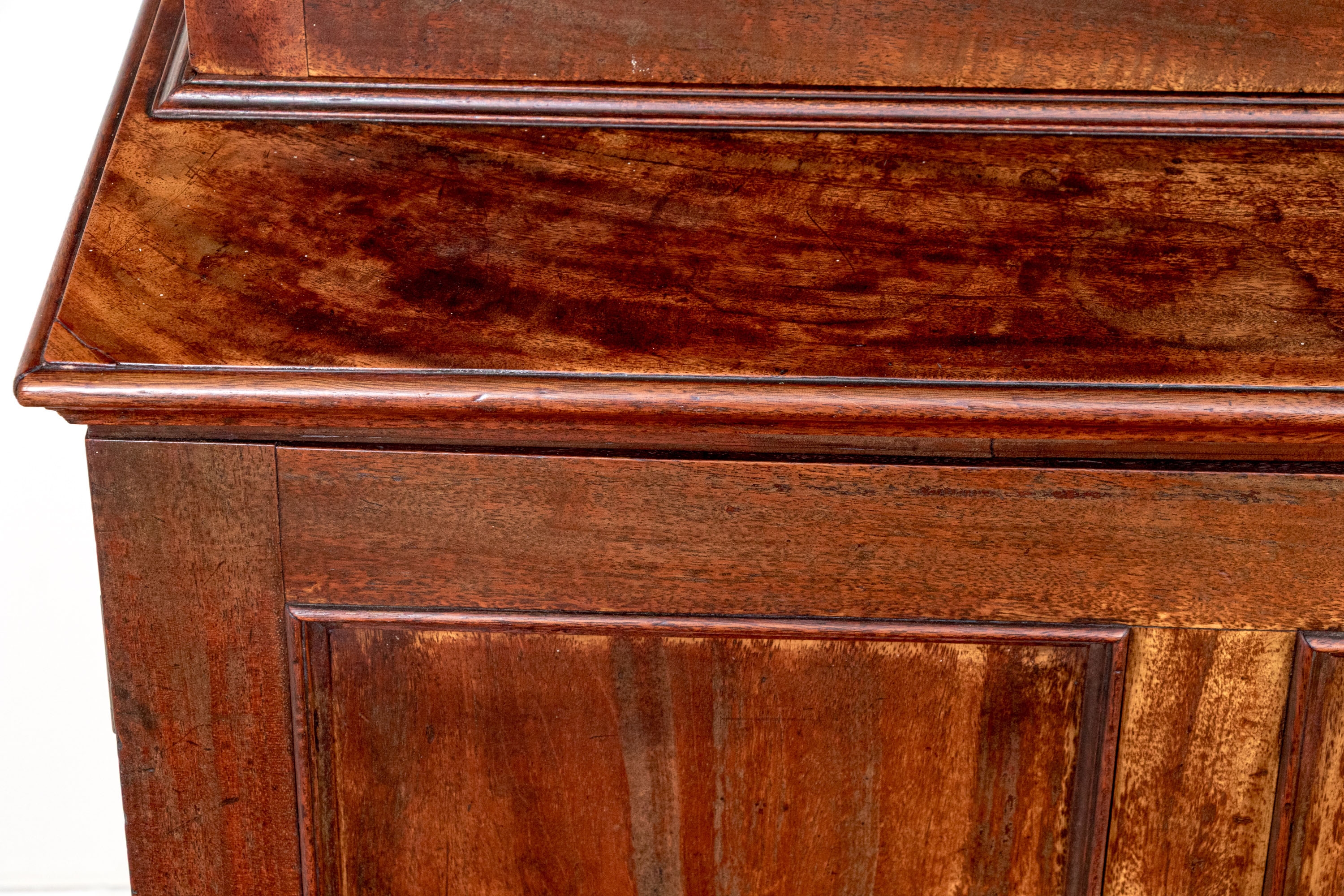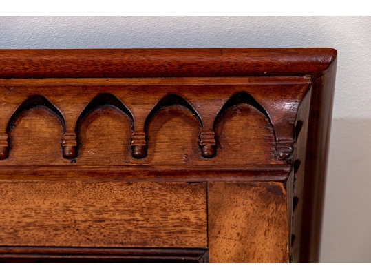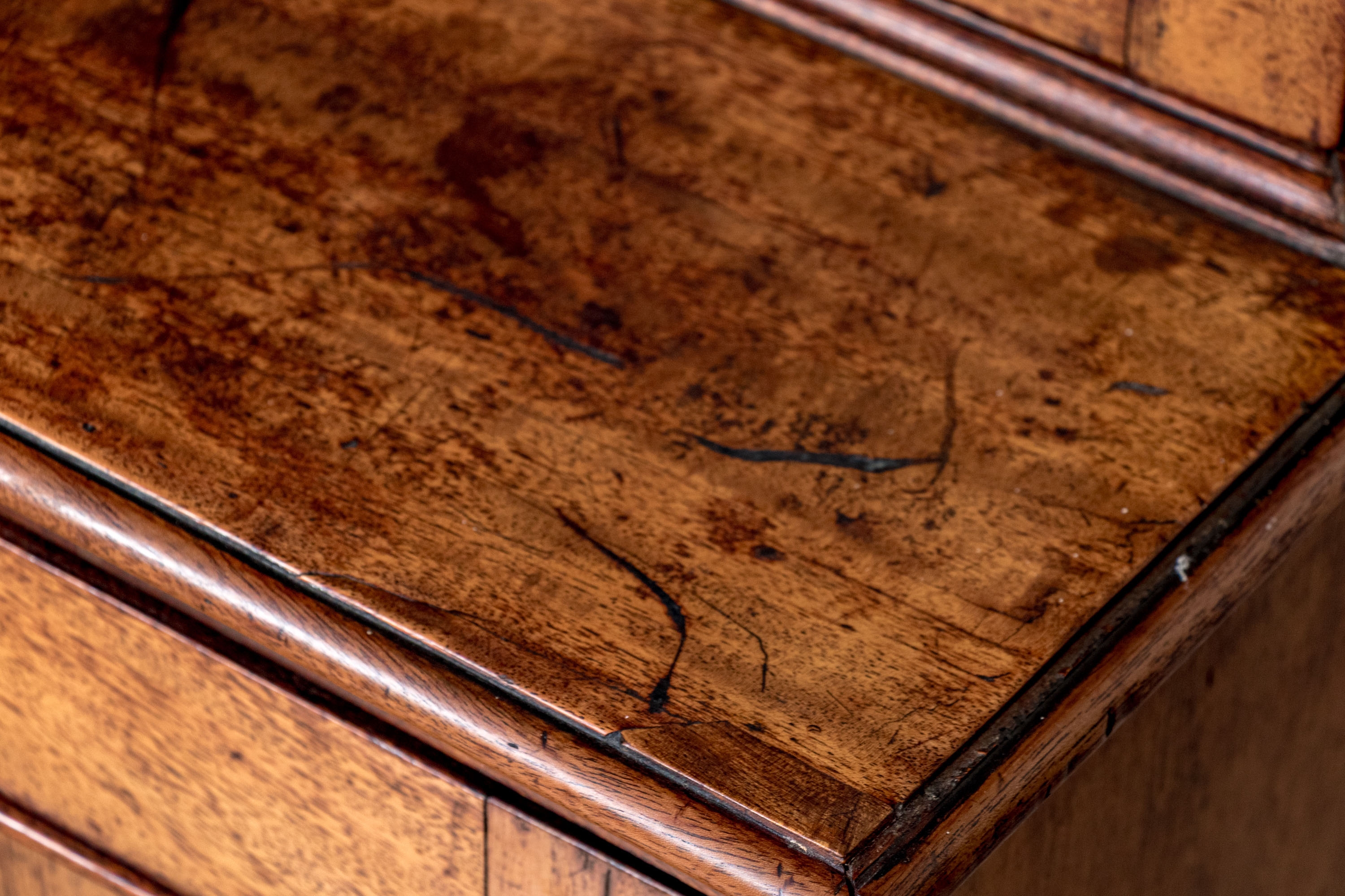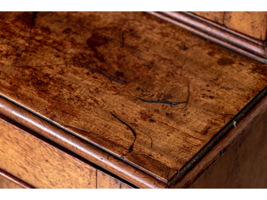 Raised on a four carved low feet with the lower case having two hinged doors with brass key escutcheons. The upper case with glass paneled doors with wonderful fluted and ogee crown. Key with tassels.