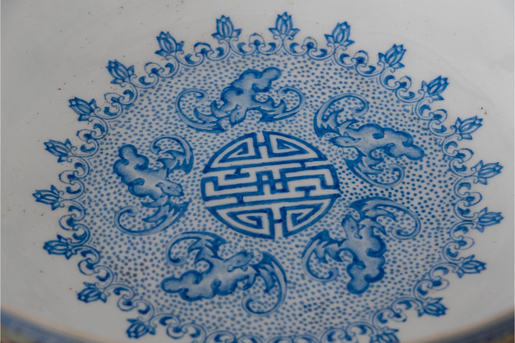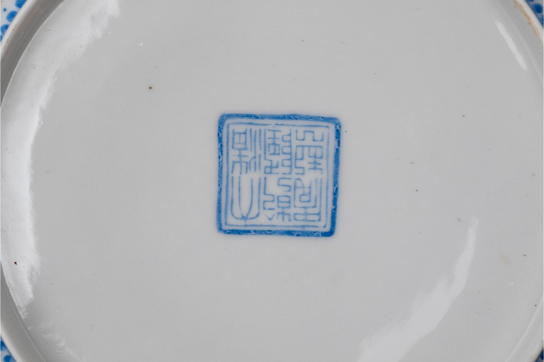 An apocryphal six character Qianlong (1735-1796) reign mark within a blue square can be found underfoot, but not of the period.
